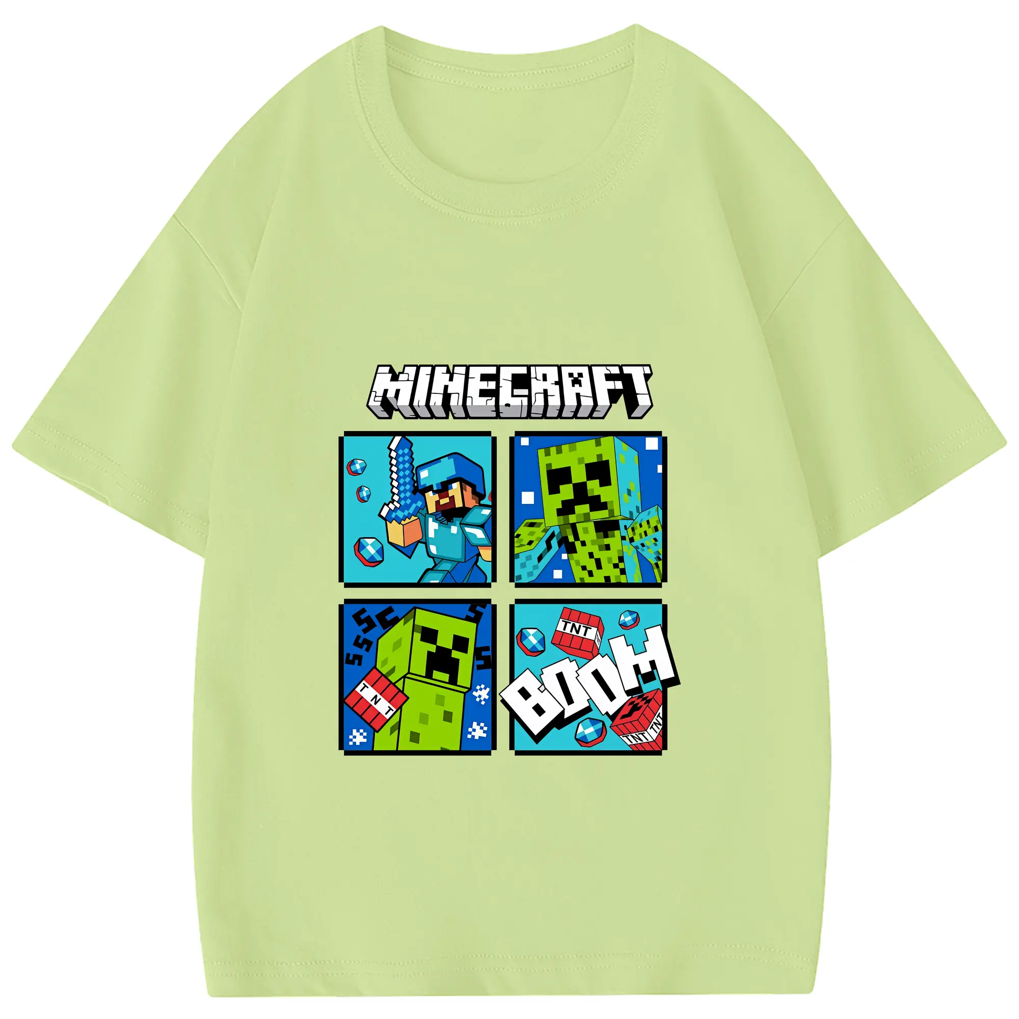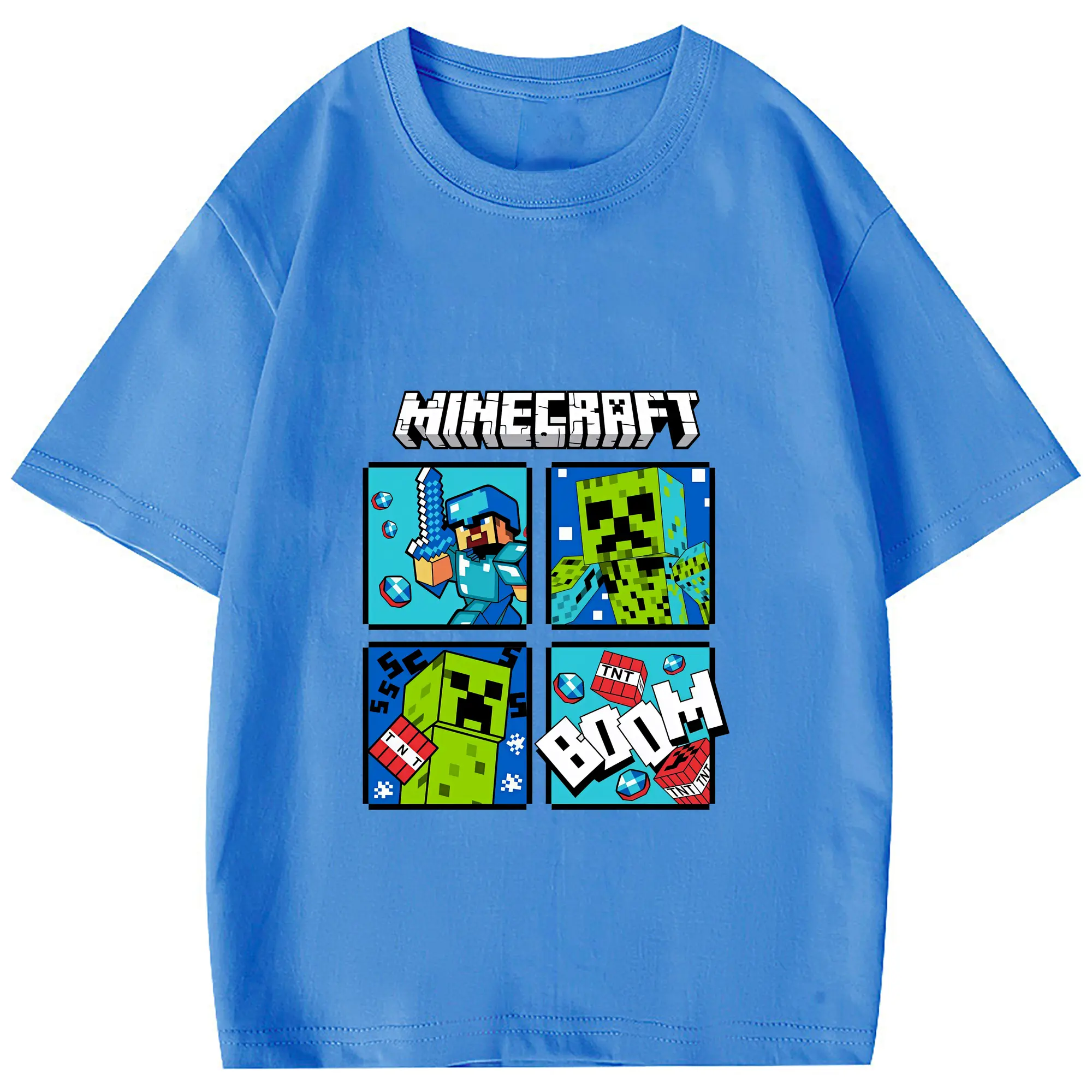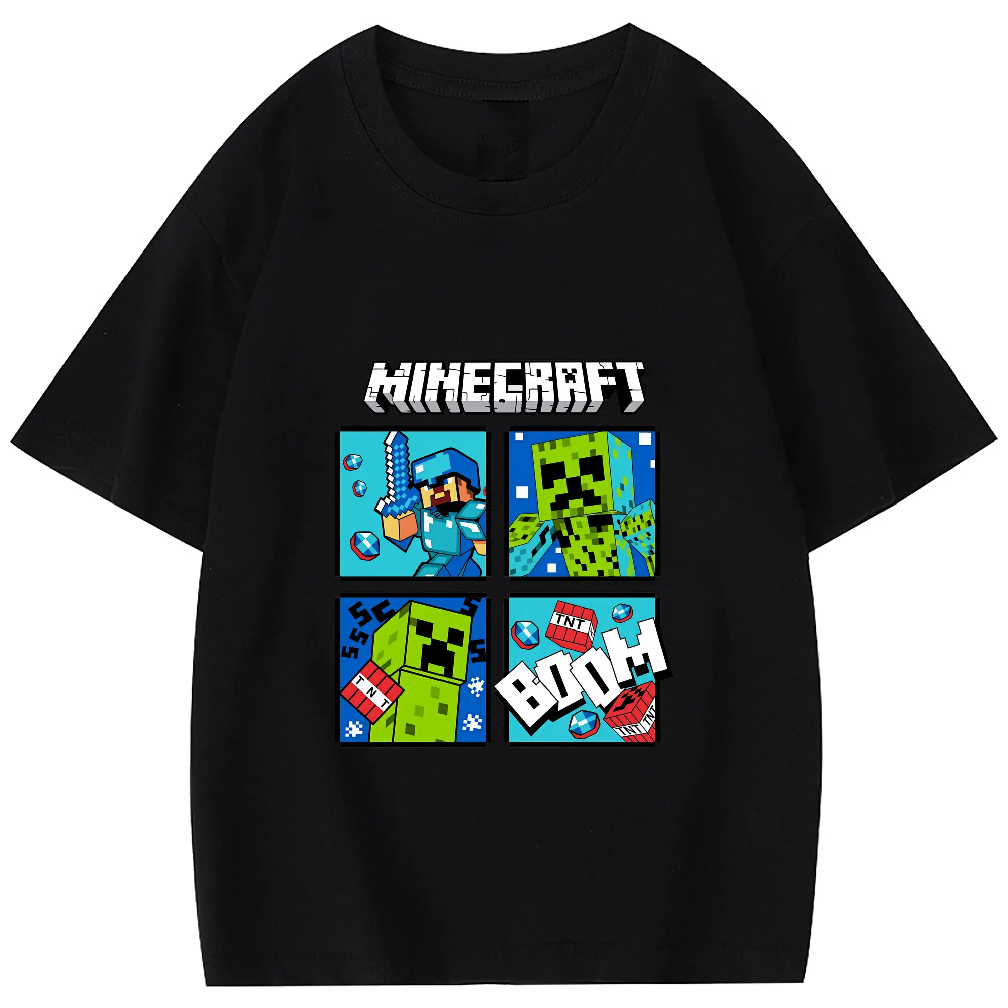 マイクラ グッズ マイクラ - 綿100% 半袖Tシャツ ・ フロントプリント ・ 快適 通気性 ・ 日常使い 散歩 スポーツ用