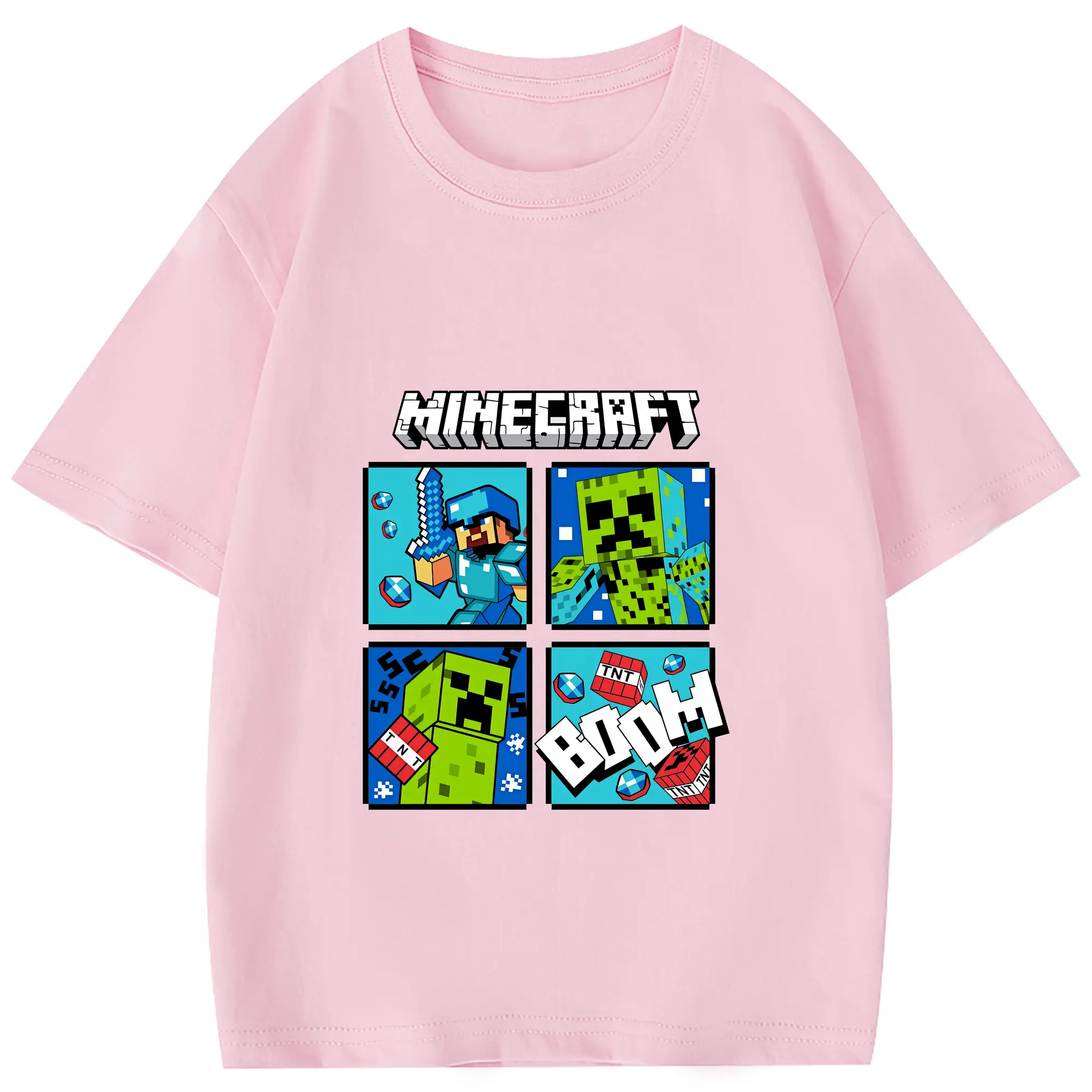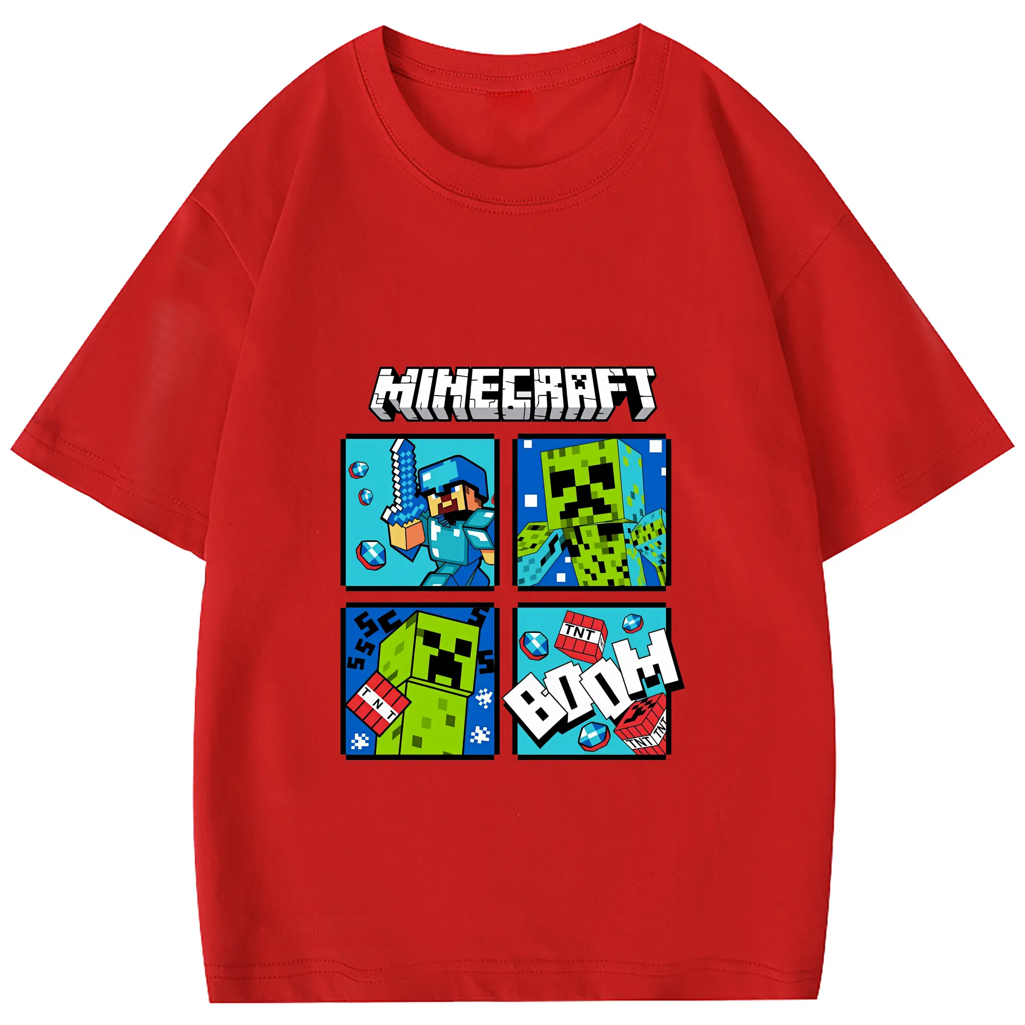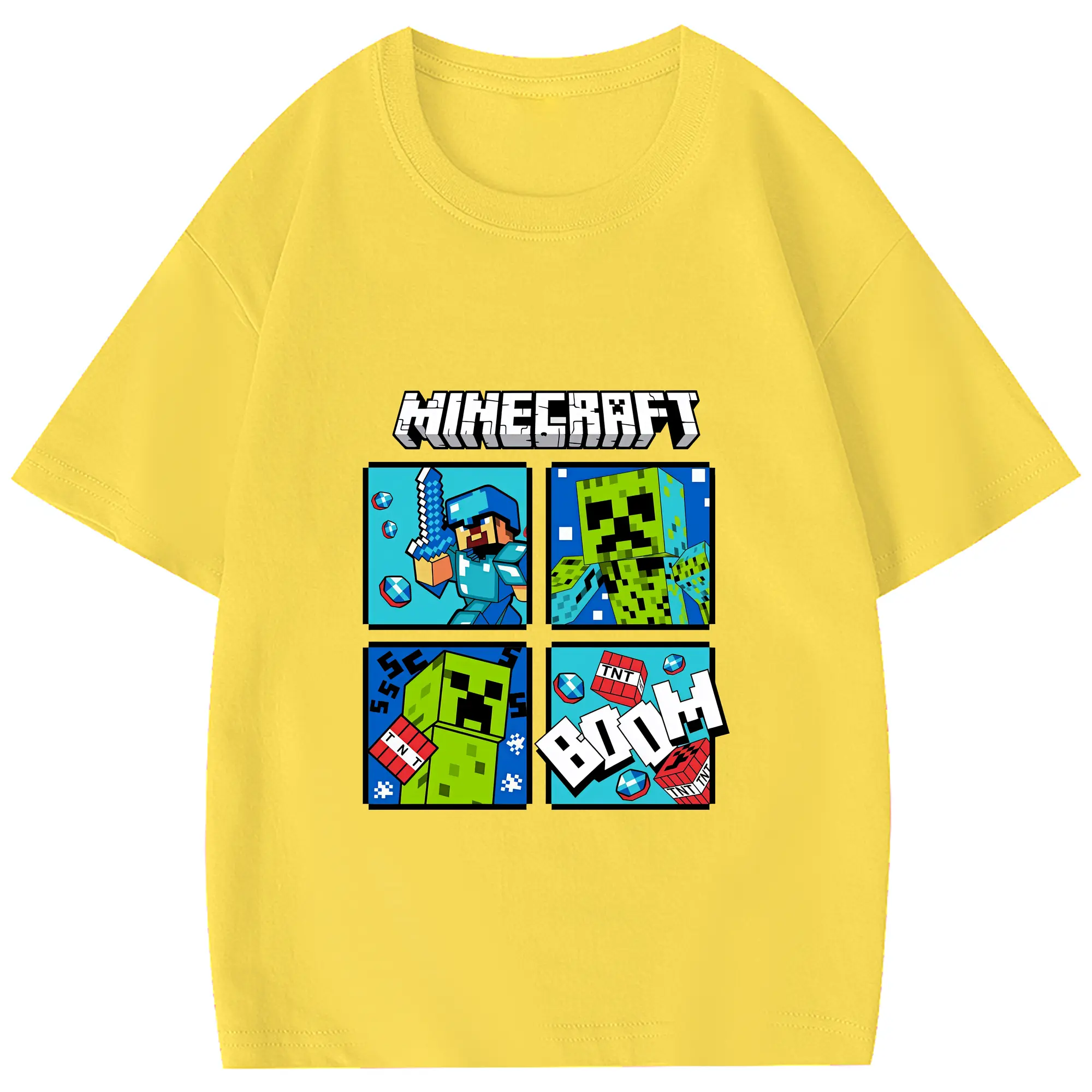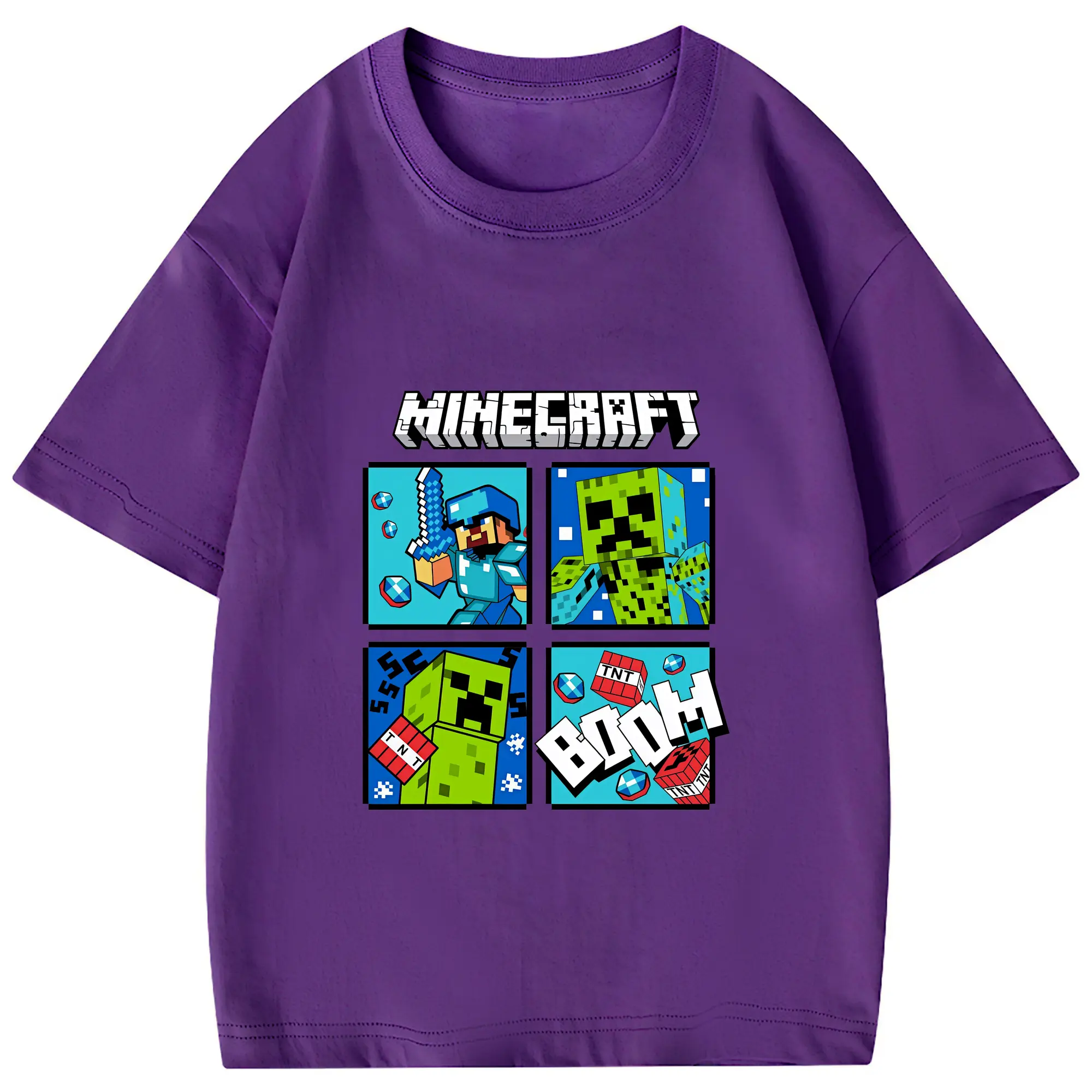 マイクラ グッズ マイクラ - 綿100% 半袖Tシャツ ・ フロントプリント ・ 快適 通気性 ・ 日常使い 散歩 スポーツ用
