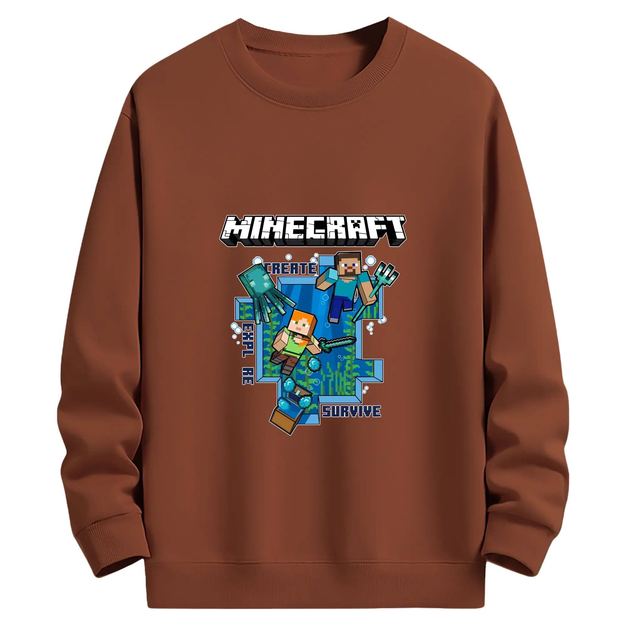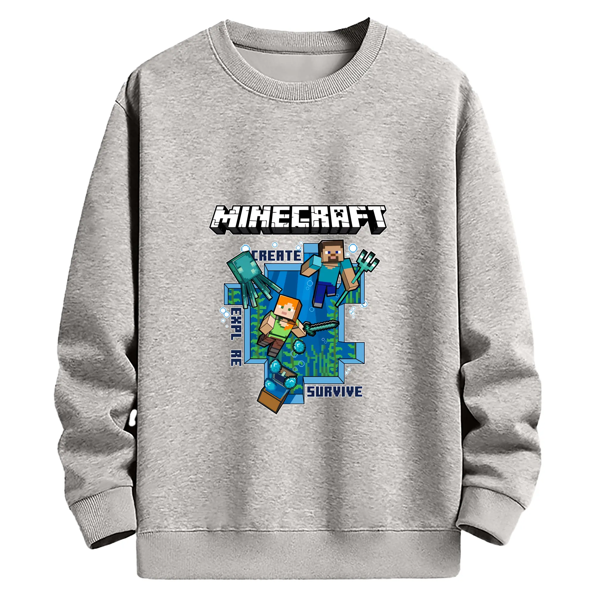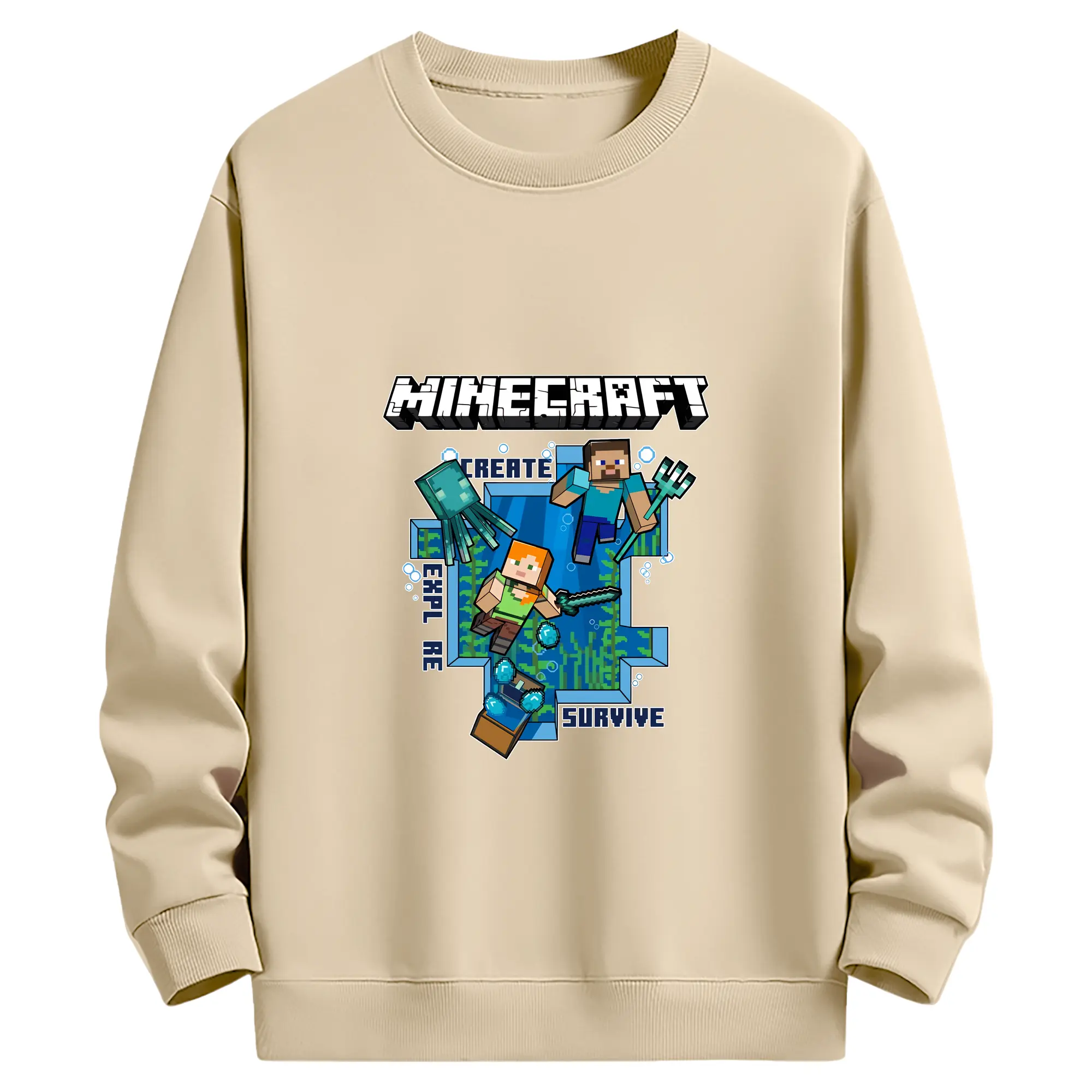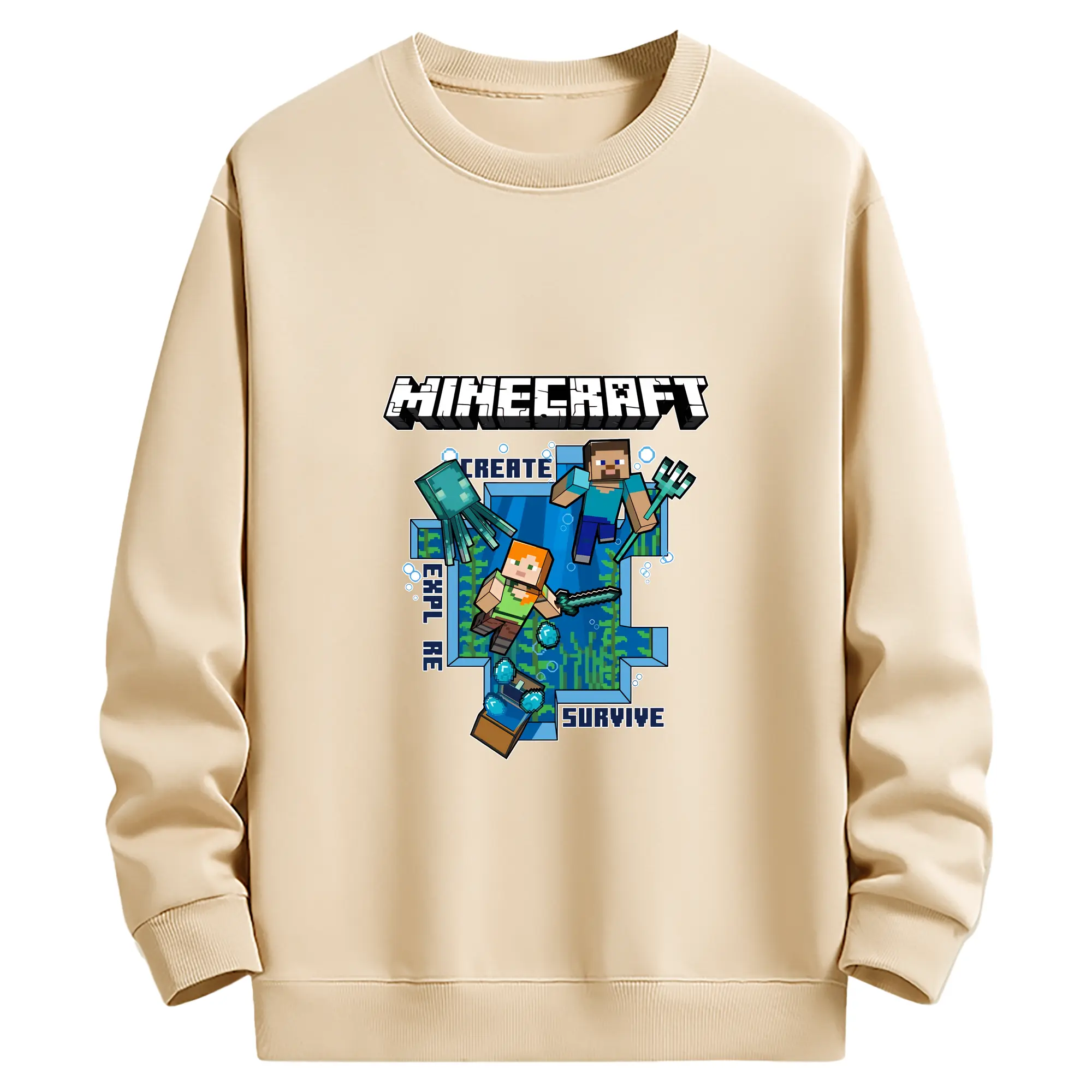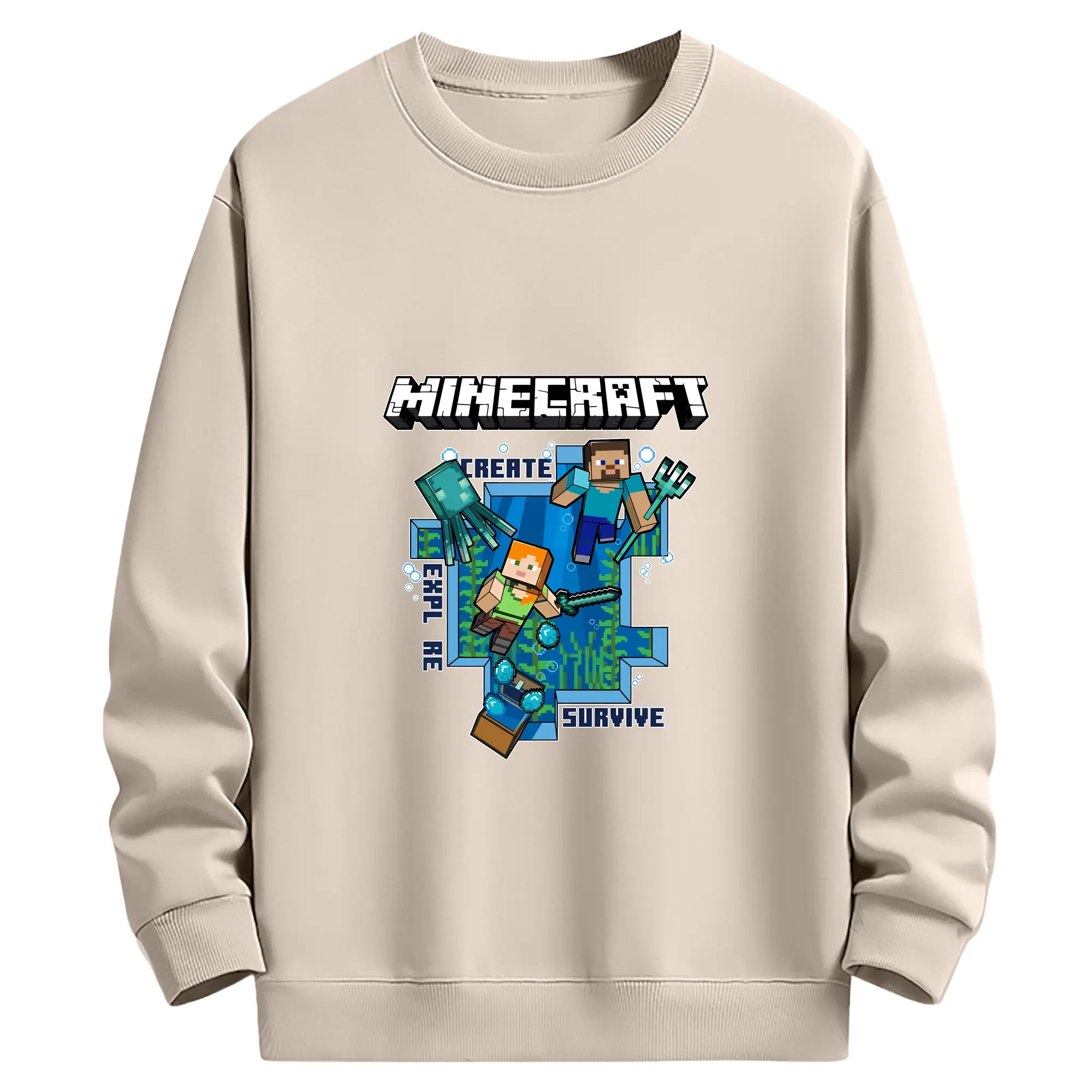 マイクラ グッズ マイクラ - 薄手 クルーネック スウェット 裏毛260g · ポリエステル 春秋向け カジュアル 男女兼用 · トレーナー デイリー スポーツ 散歩に最適