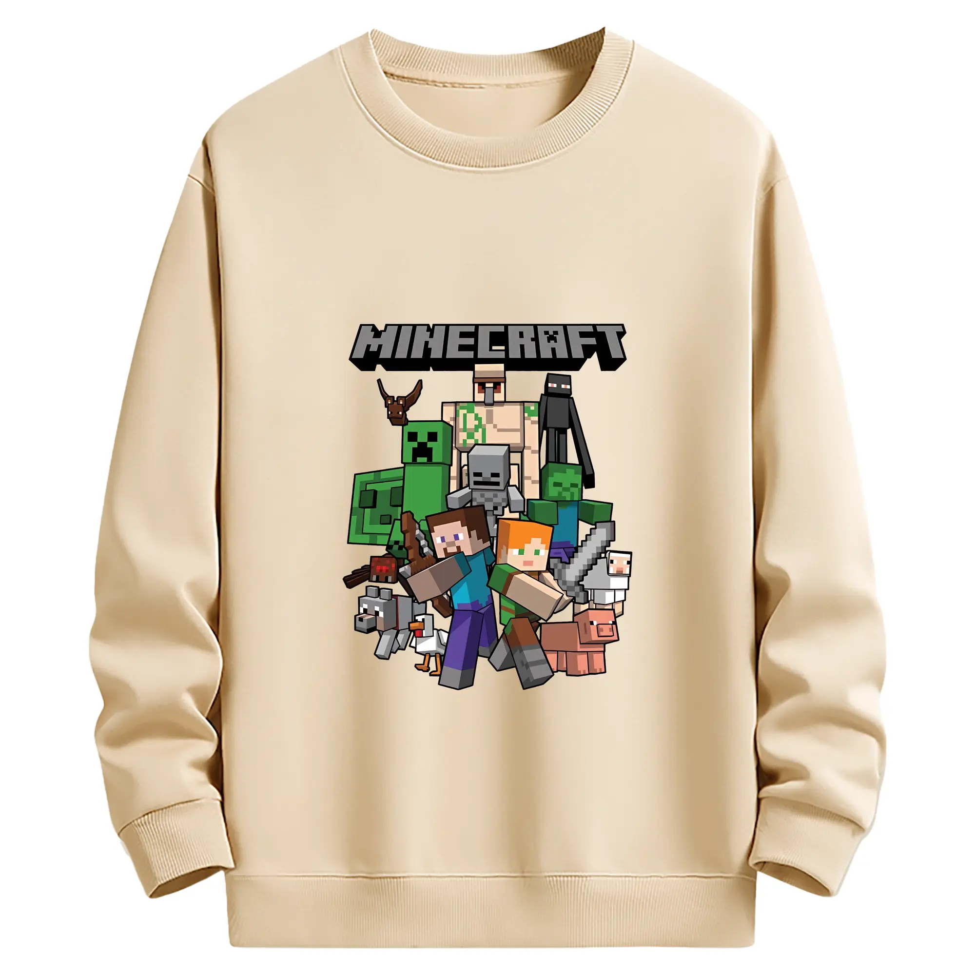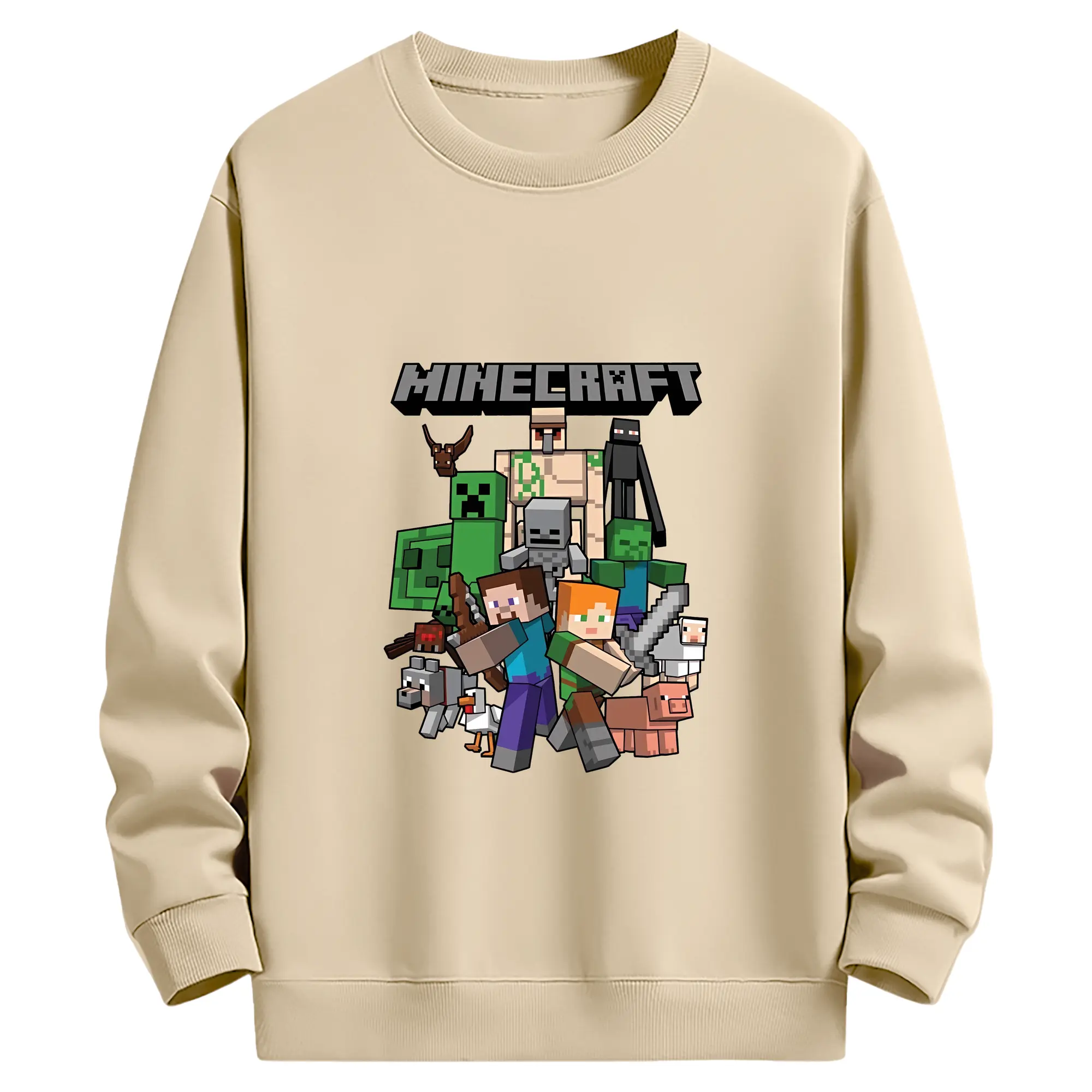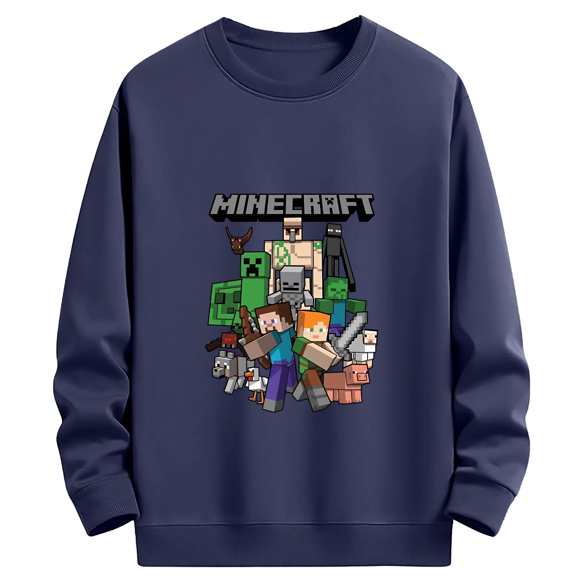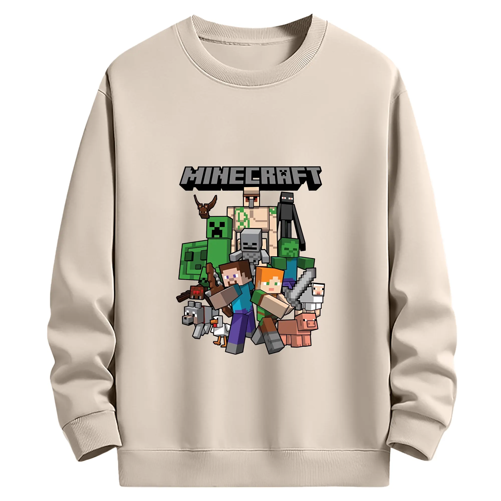 マイクラ グッズ マイクラ - 薄手 クルーネック スウェット 裏毛260g · ポリエステル 春秋向け カジュアル 男女兼用 · トレーナー デイリー スポーツ 散歩に最適