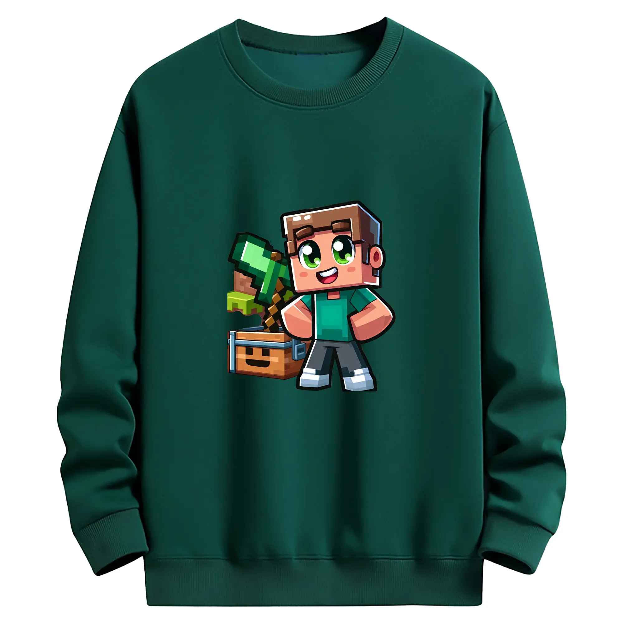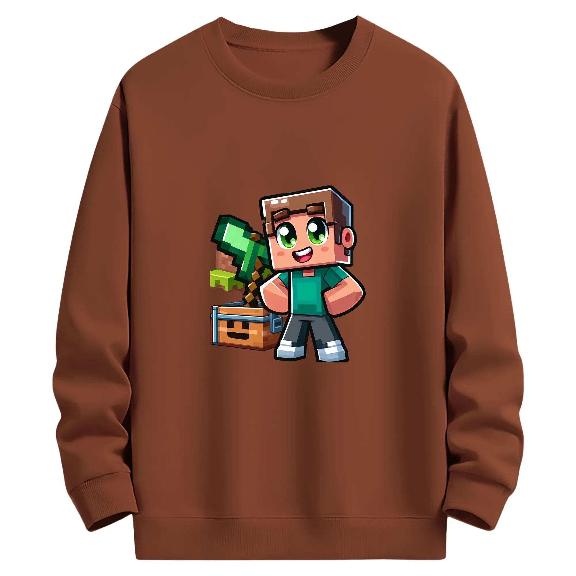マイクラ グッズ マイクラ - キッズ クルーネックスウェットシャツ ・ フロントプリント ・ 綿80% ポリエステル20% ・ 快適 通学 スポーツ 日常使い お散歩用