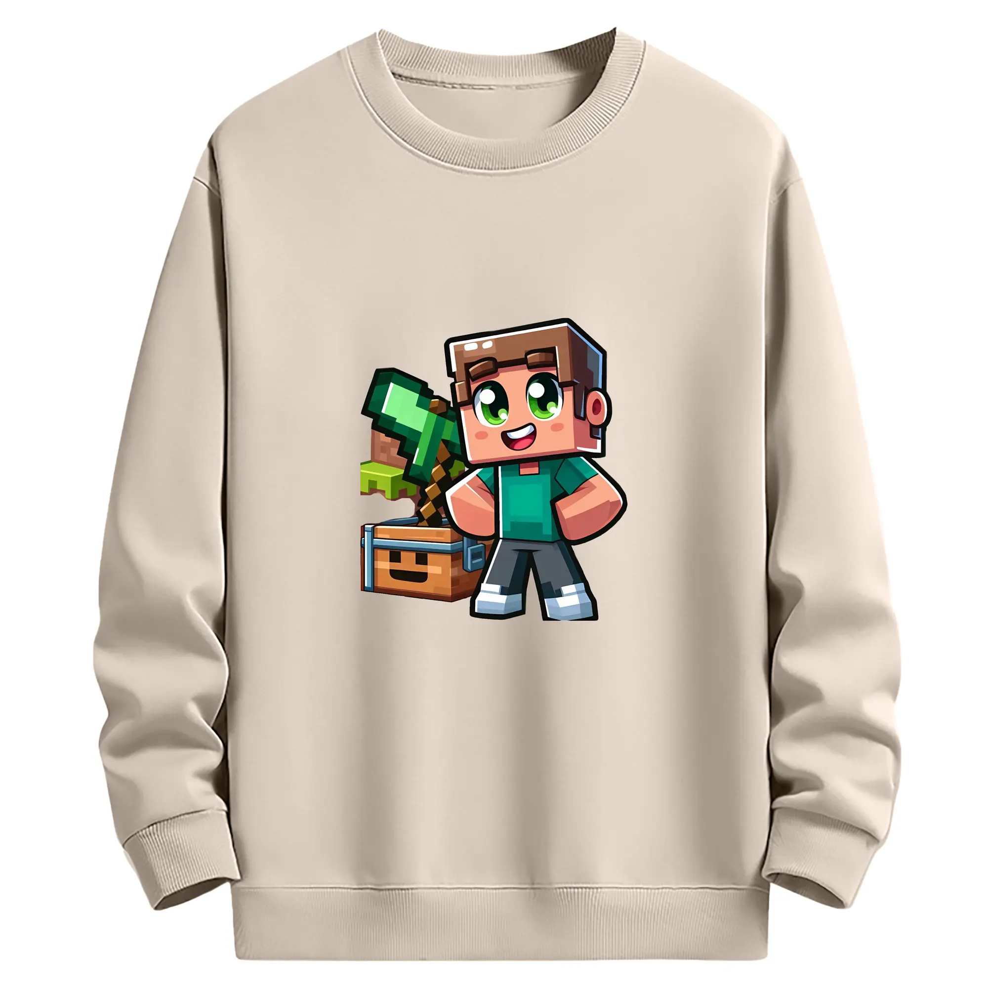 マイクラ グッズ マイクラ - 薄手 クルーネック スウェット 裏毛260g · ポリエステル 春秋向け カジュアル 男女兼用 · トレーナー デイリー スポーツ 散歩に最適