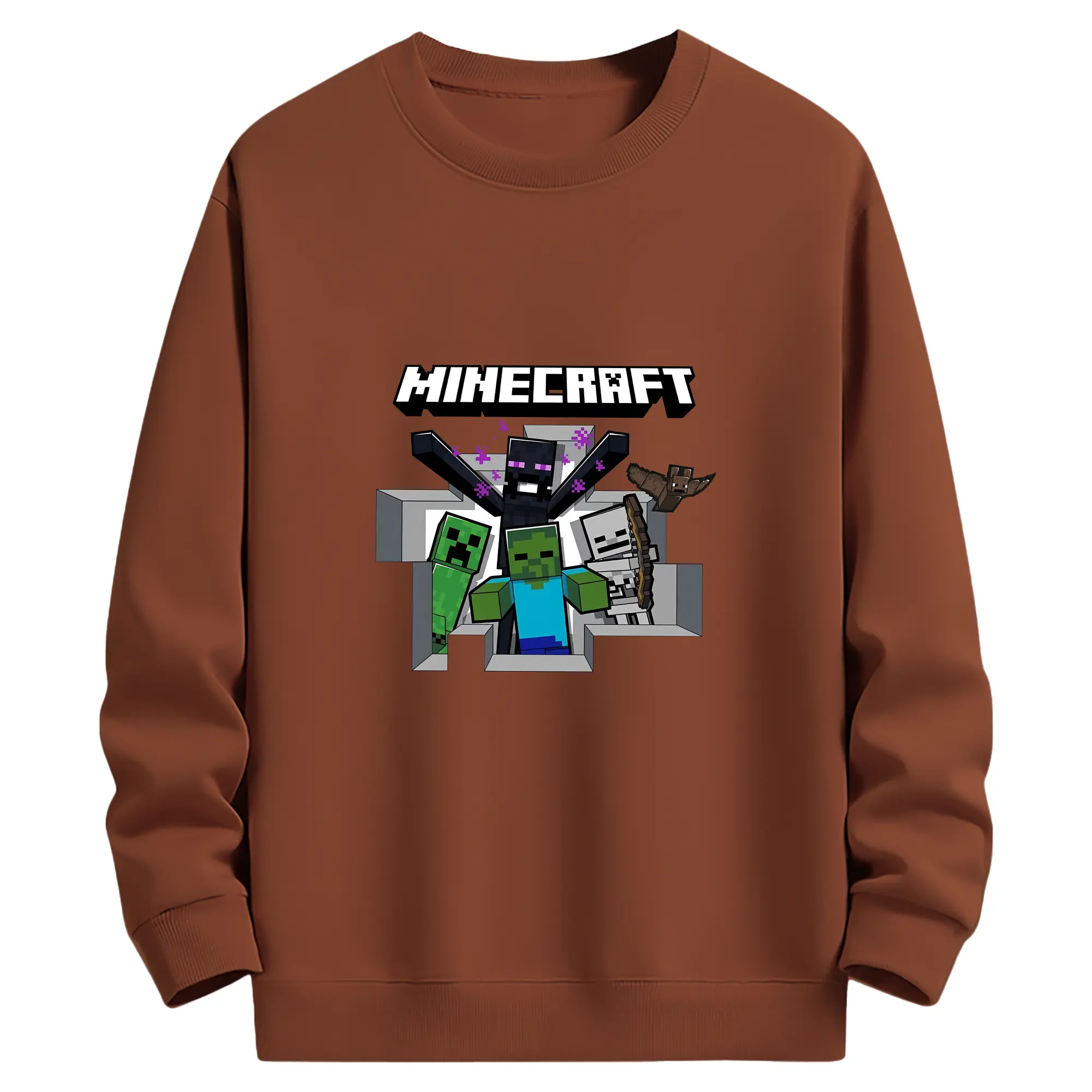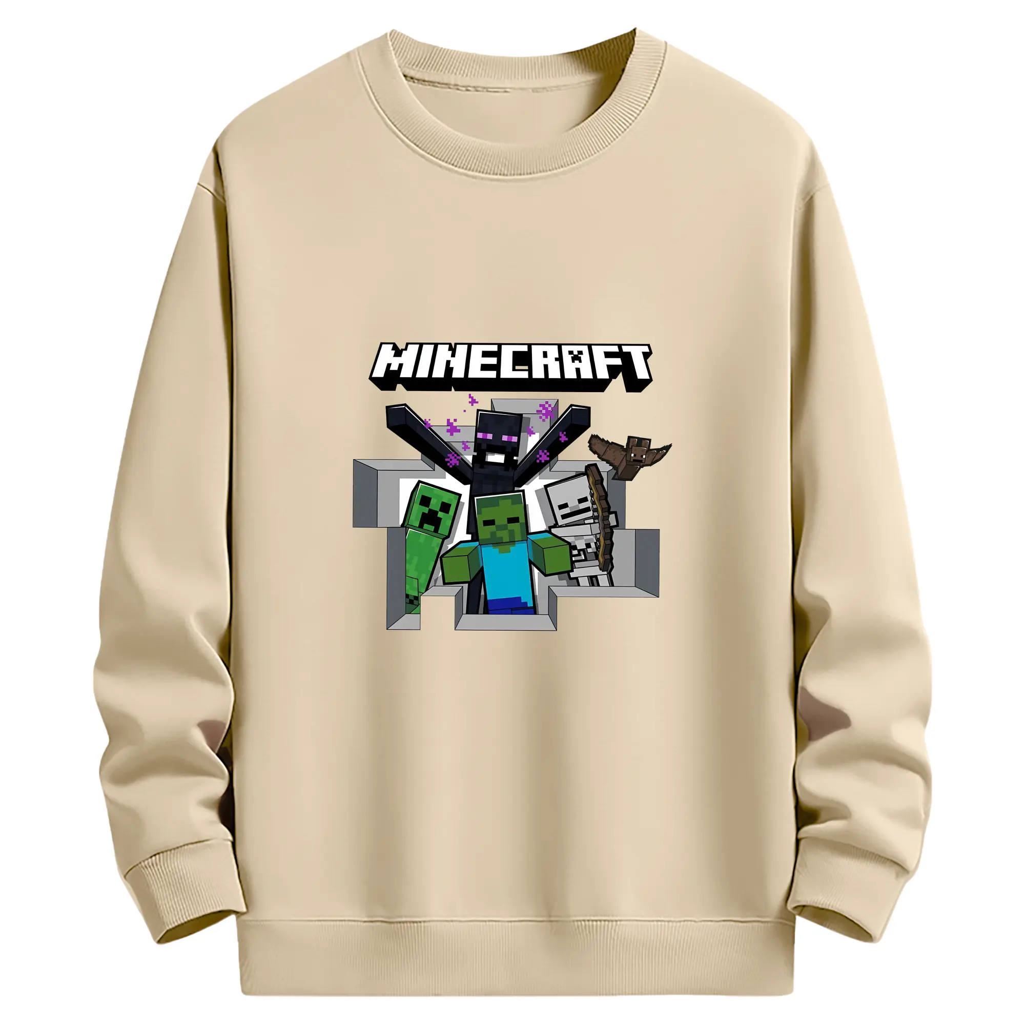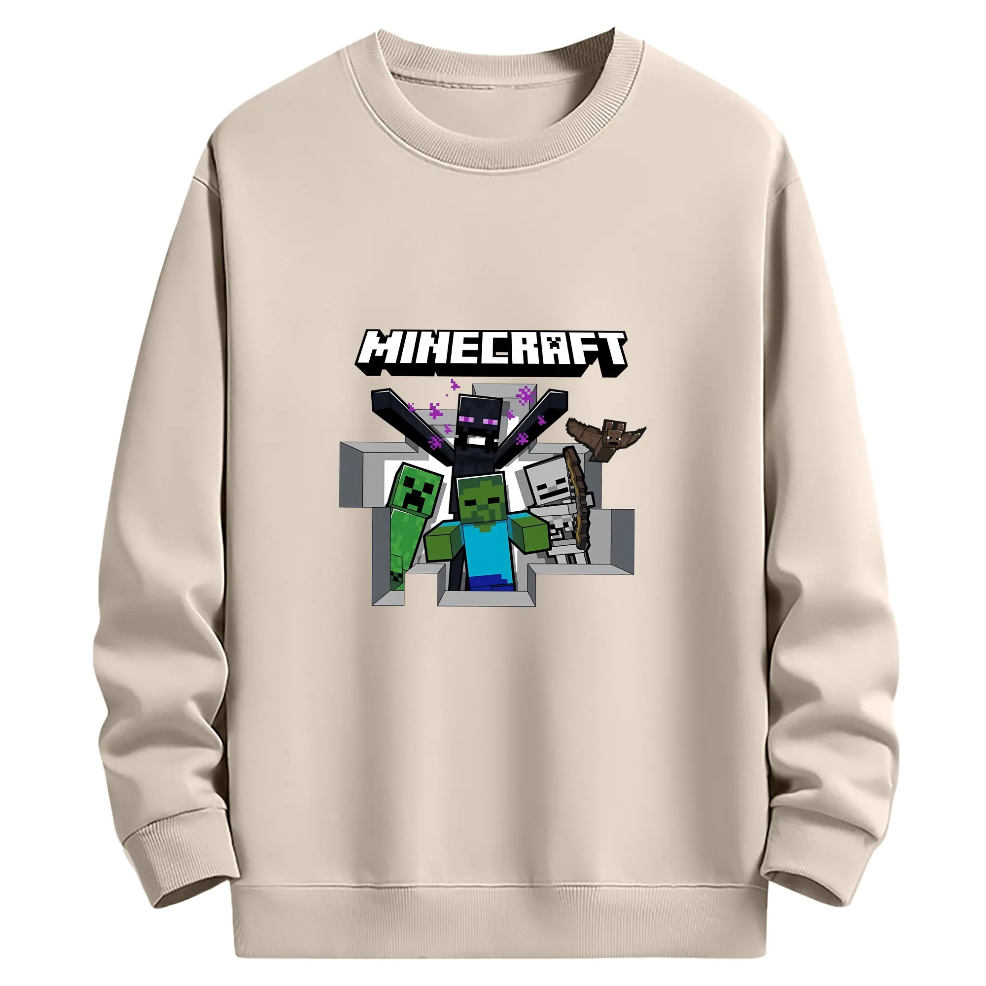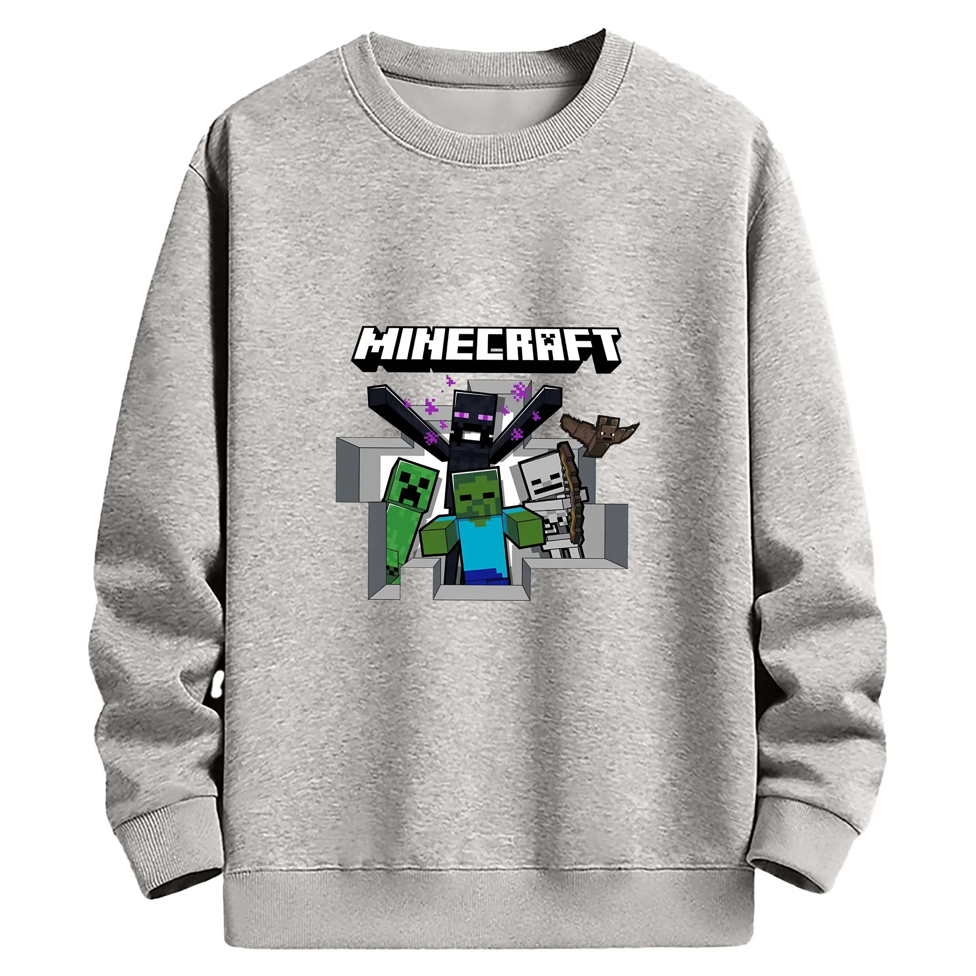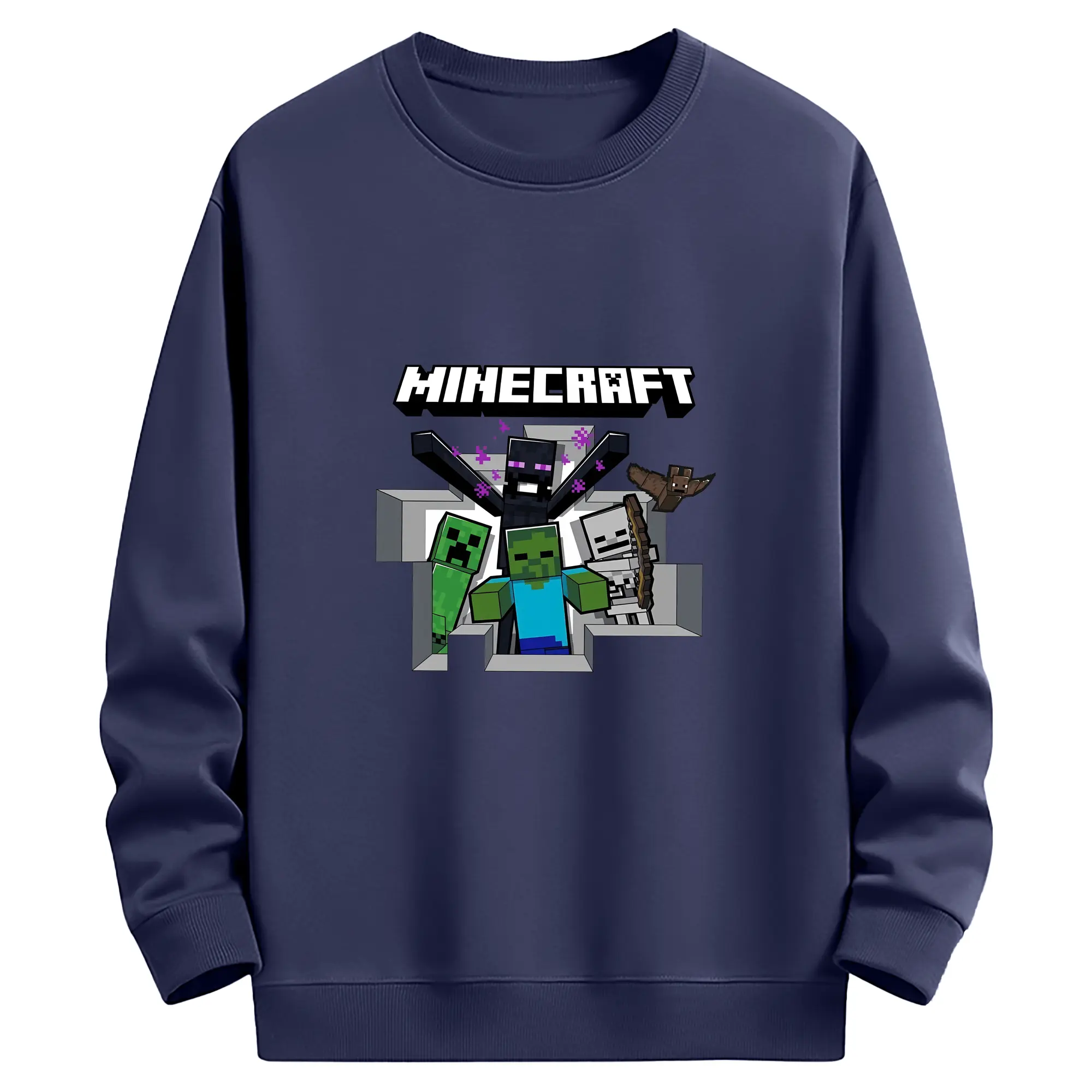 マイクラ グッズ マイクラ - 薄手 クルーネック スウェット 裏毛260g · ポリエステル 春秋向け カジュアル 男女兼用 · トレーナー デイリー スポーツ 散歩に最適