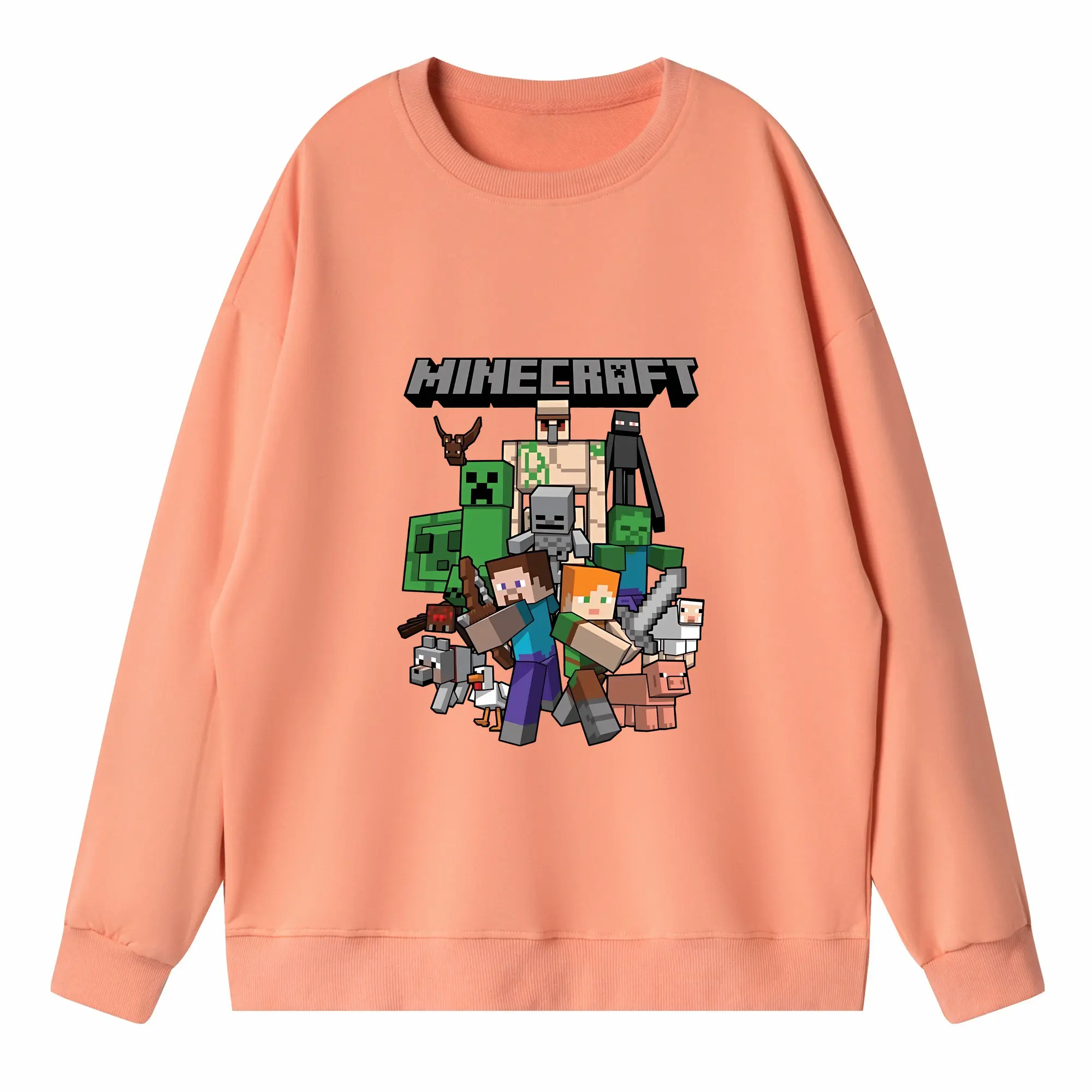 マイクラ グッズ マイクラ - キッズ クルーネックスウェットシャツ ・ フロントプリント ・ 綿80% ポリエステル20% ・ 快適 通学 スポーツ 日常使い お散歩用