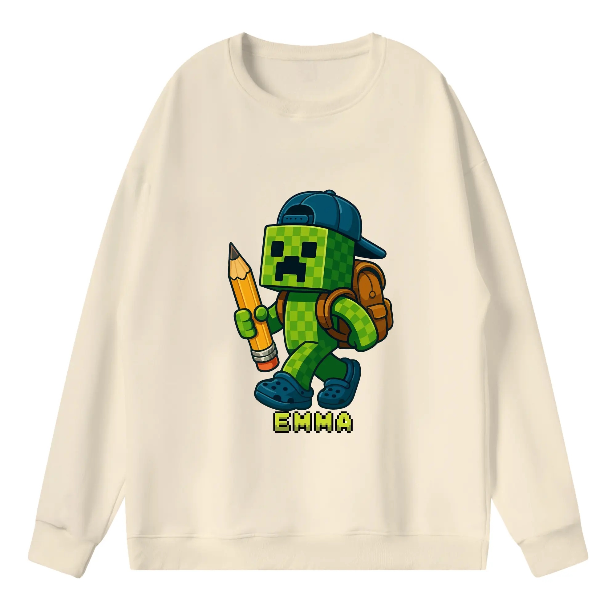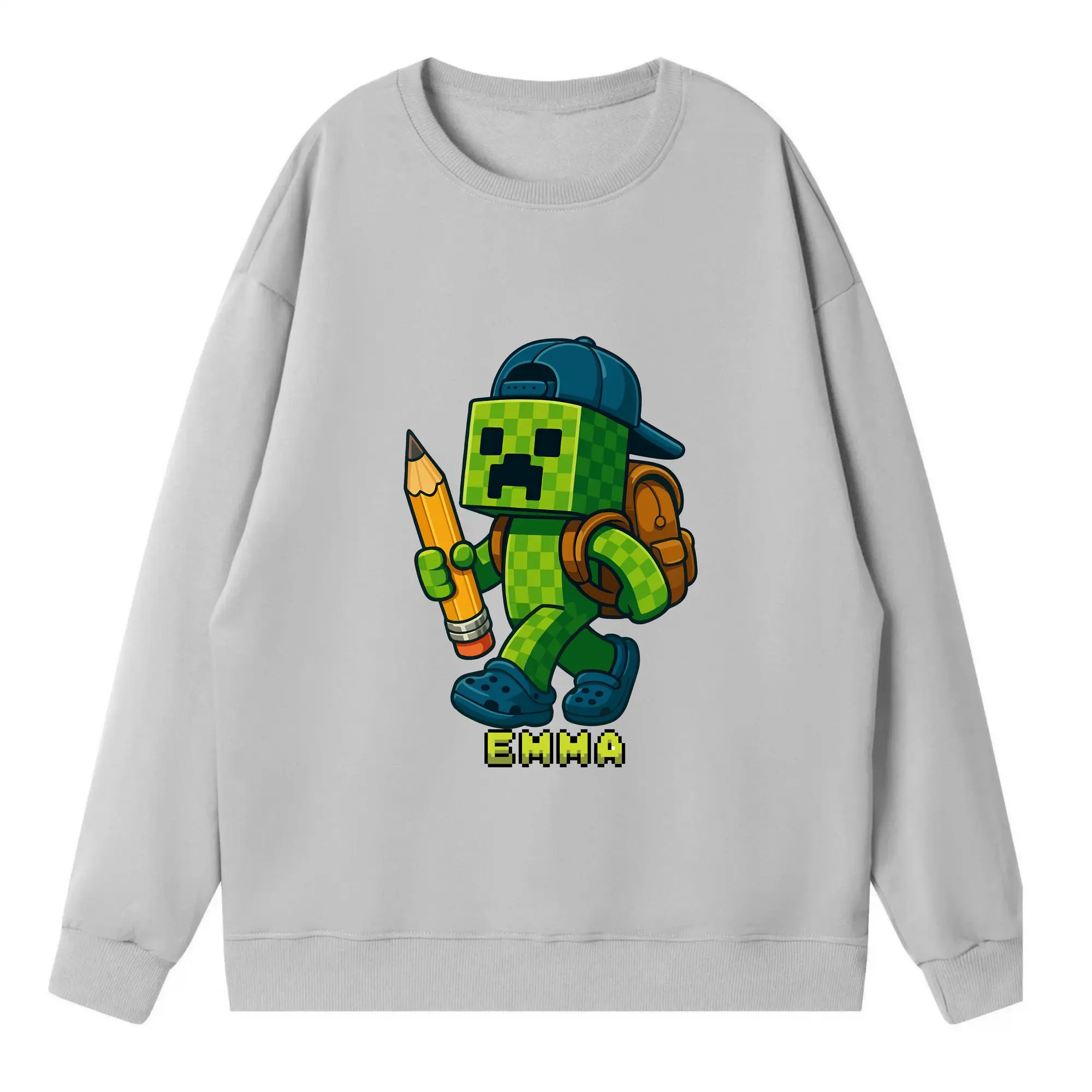 マイクラ グッズ マイクラ - キッズ クルーネックスウェットシャツ ・ フロントプリント ・ 綿80% ポリエステル20% ・ 快適 通学 スポーツ 日常使い お散歩用