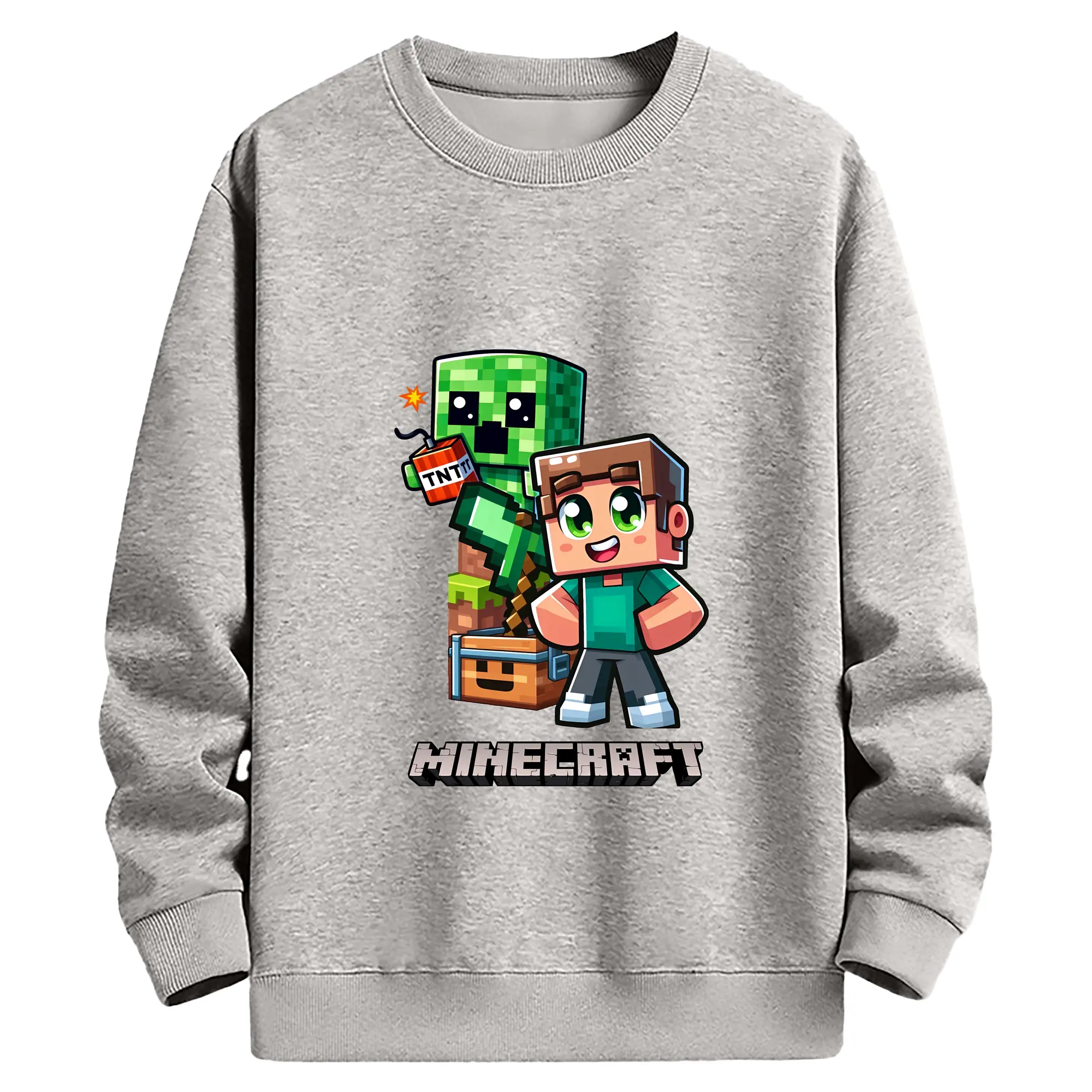 マイクラ グッズ マイクラ - 薄手 クルーネック スウェット 裏毛260g · ポリエステル 春秋向け カジュアル 男女兼用 · トレーナー デイリー スポーツ 散歩に最適