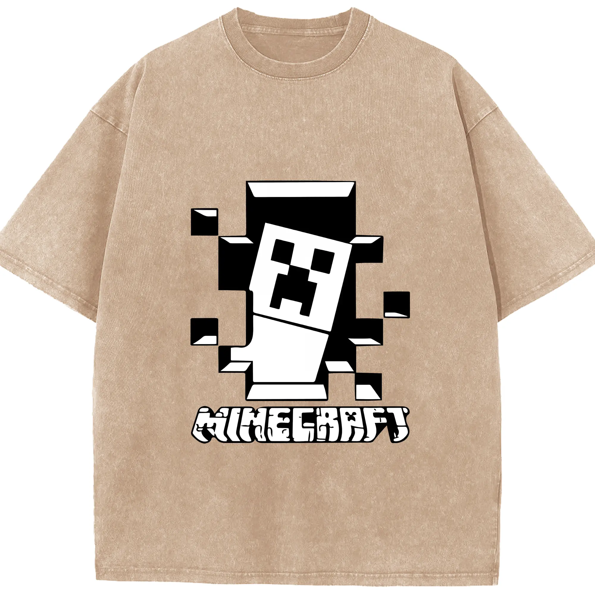 マイクラ グッズ マイクラ - 綿100% ヴィンテージ風 半袖Tシャツ ・ 背面プリント ・ 柔らか肌触り ・ 通気性 快適 ・ スポーツ カジュアル 外出用