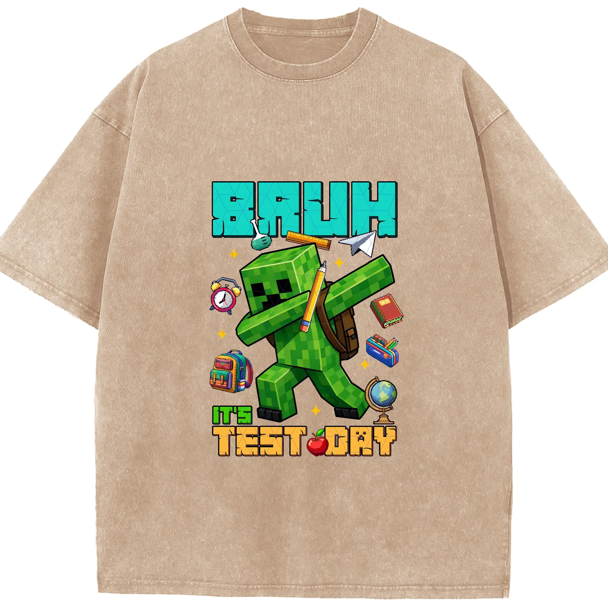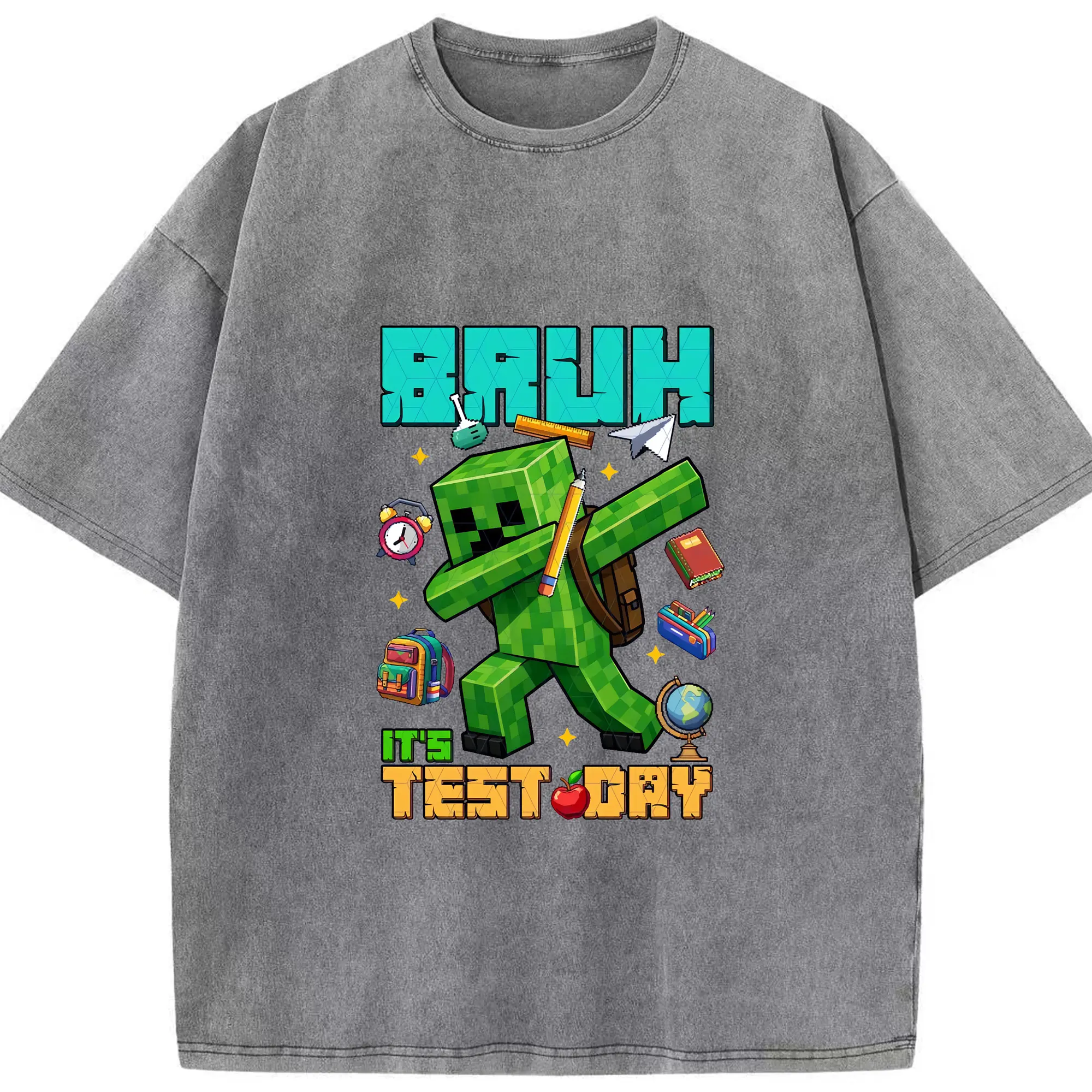 マイクラ グッズ マイクラ - 綿100% ヴィンテージ風 半袖Tシャツ ・ 背面プリント ・ 柔らか肌触り ・ 通気性 快適 ・ スポーツ カジュアル 外出用