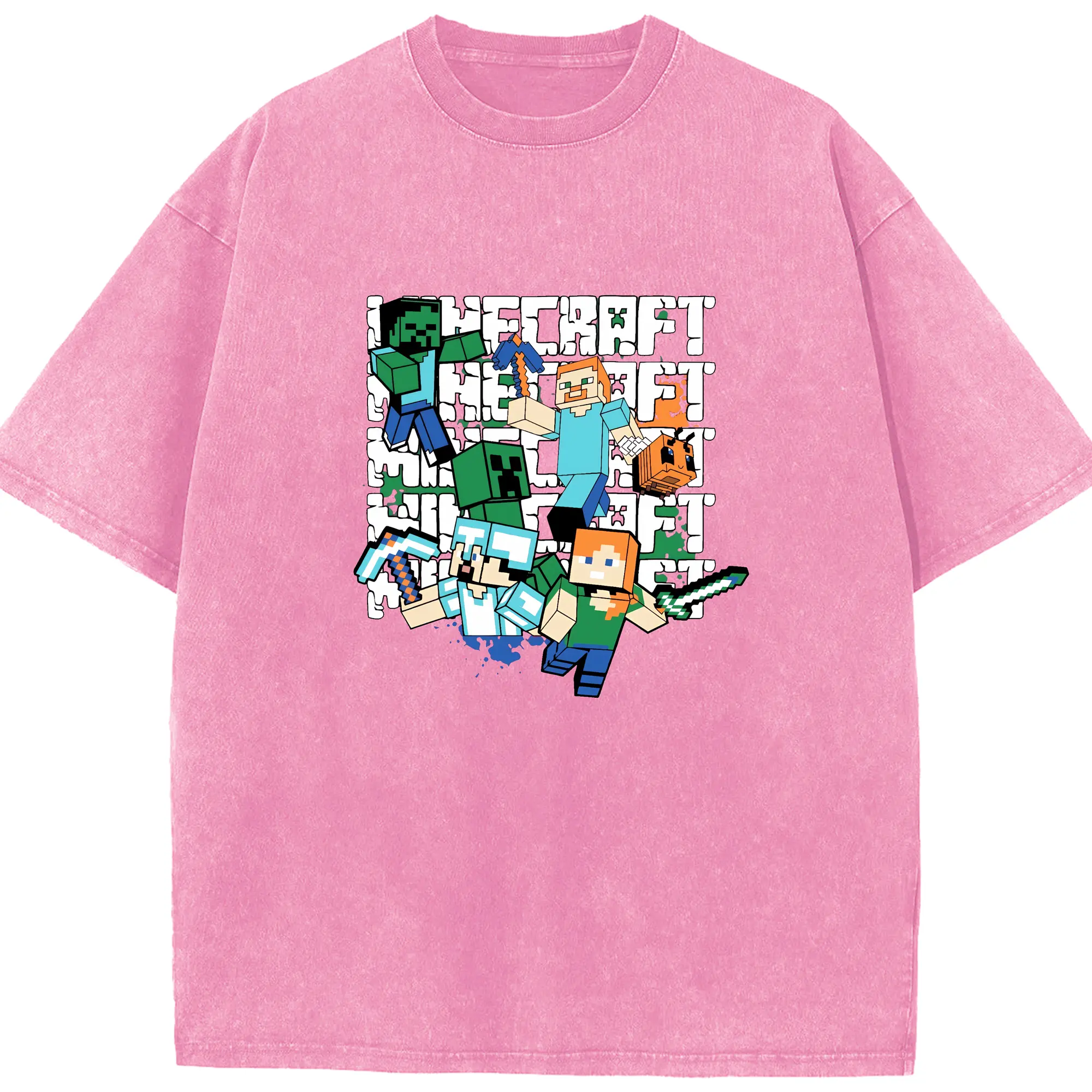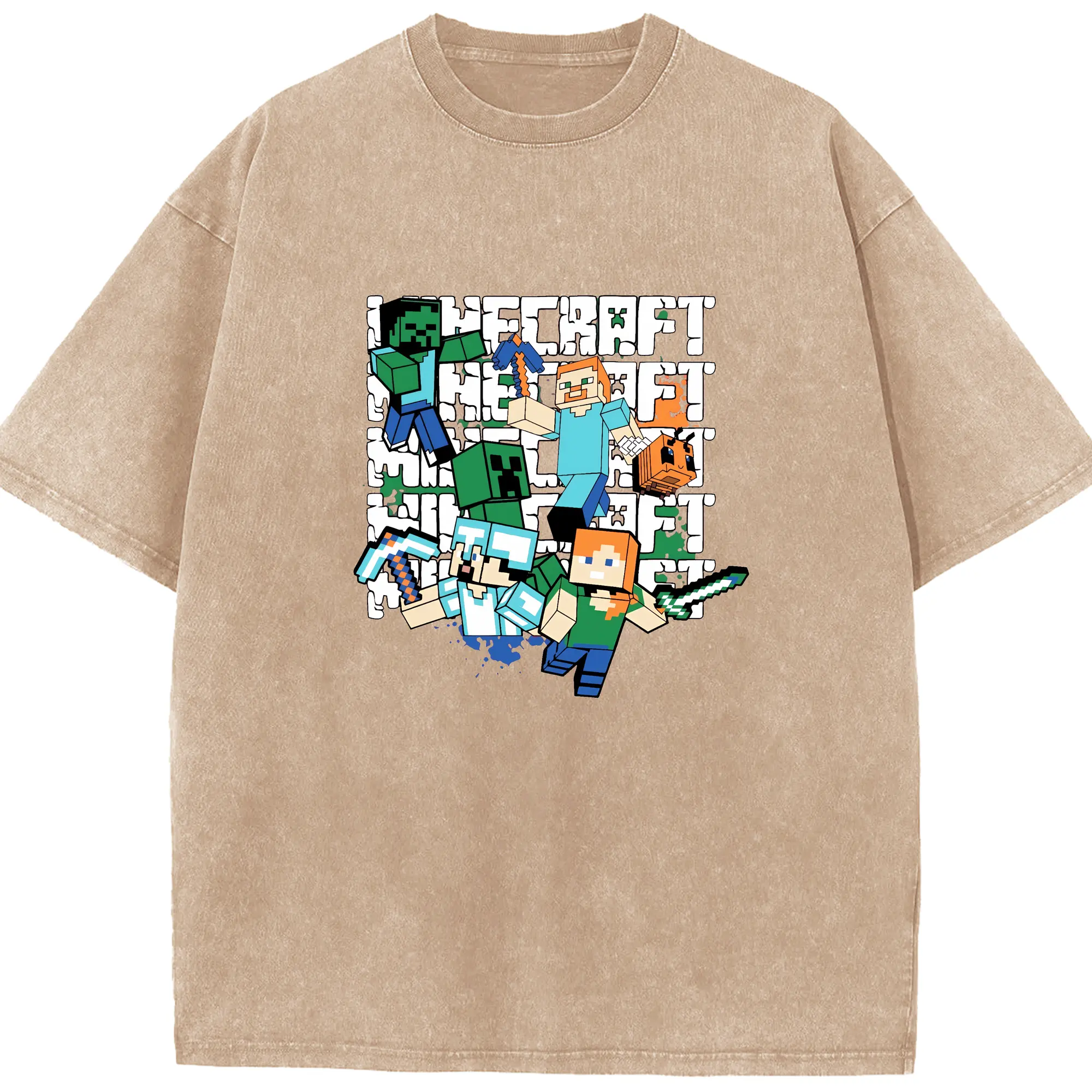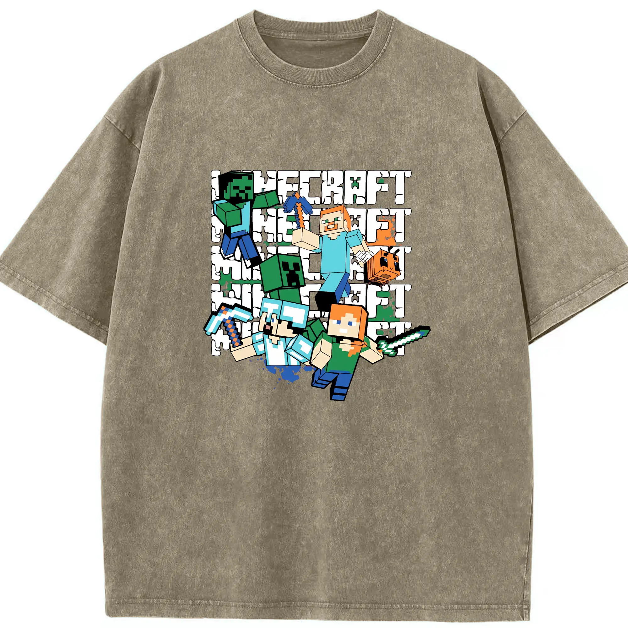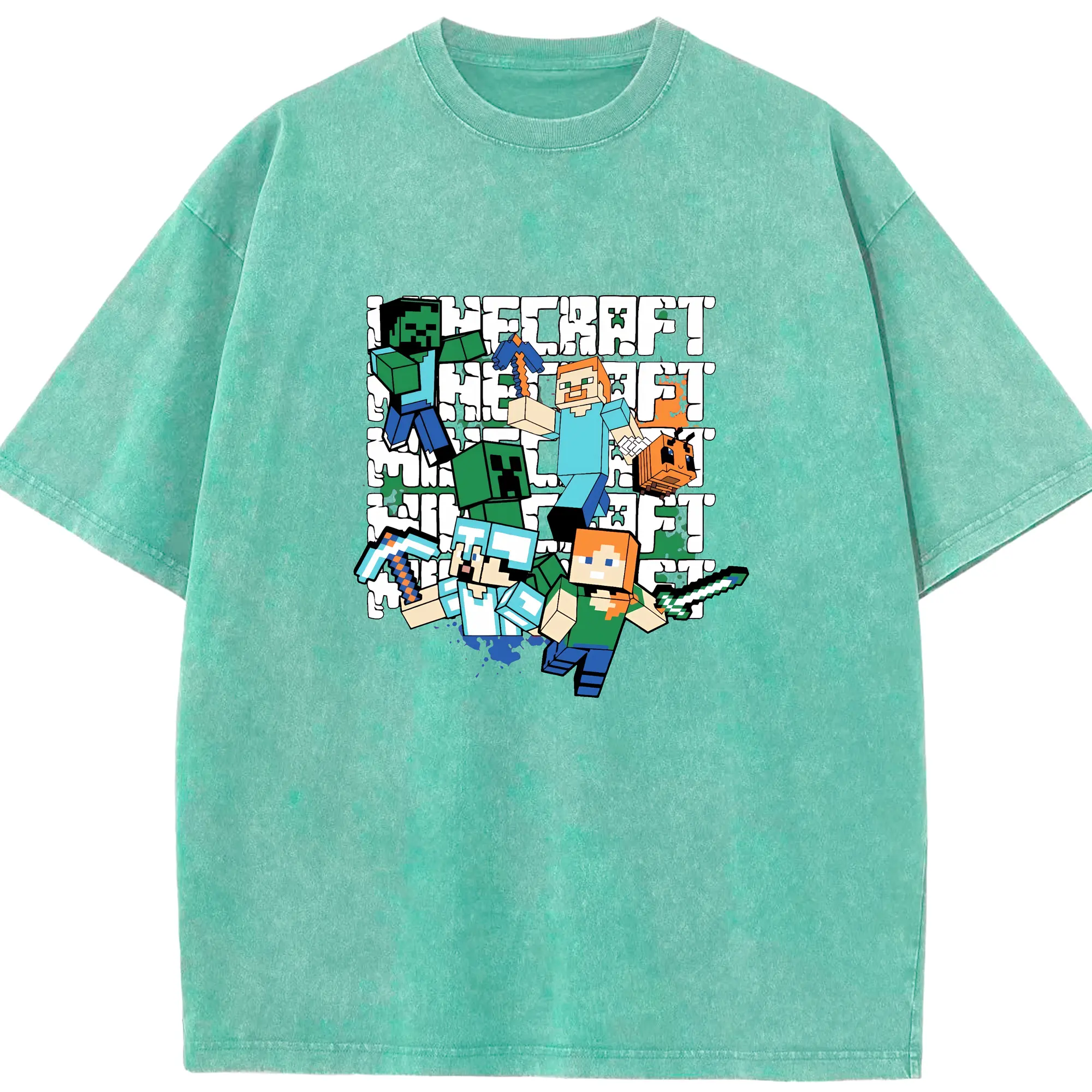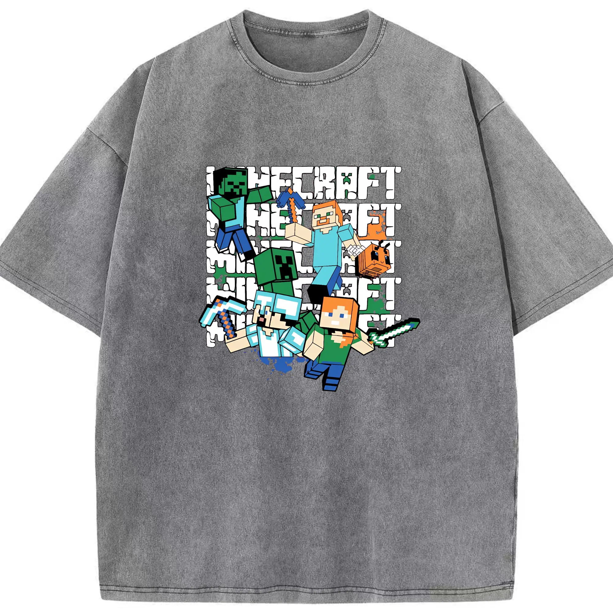 マイクラ グッズ マイクラ - 綿100% ヴィンテージ風 半袖Tシャツ ・ 背面プリント ・ 柔らか肌触り ・ 通気性 快適 ・ スポーツ カジュアル 外出用