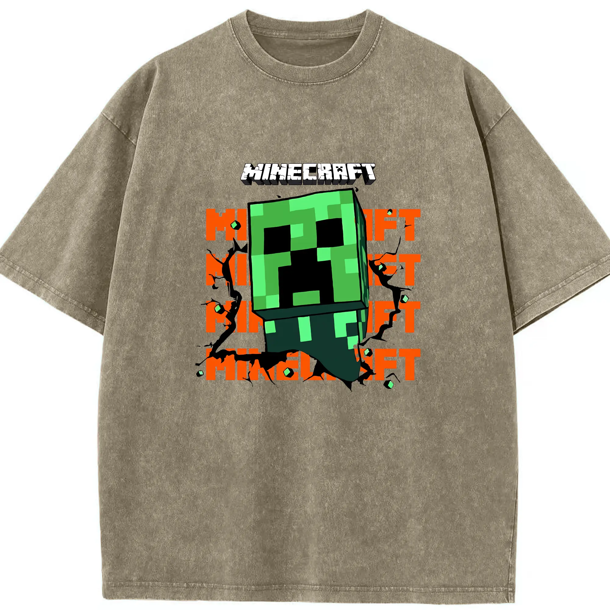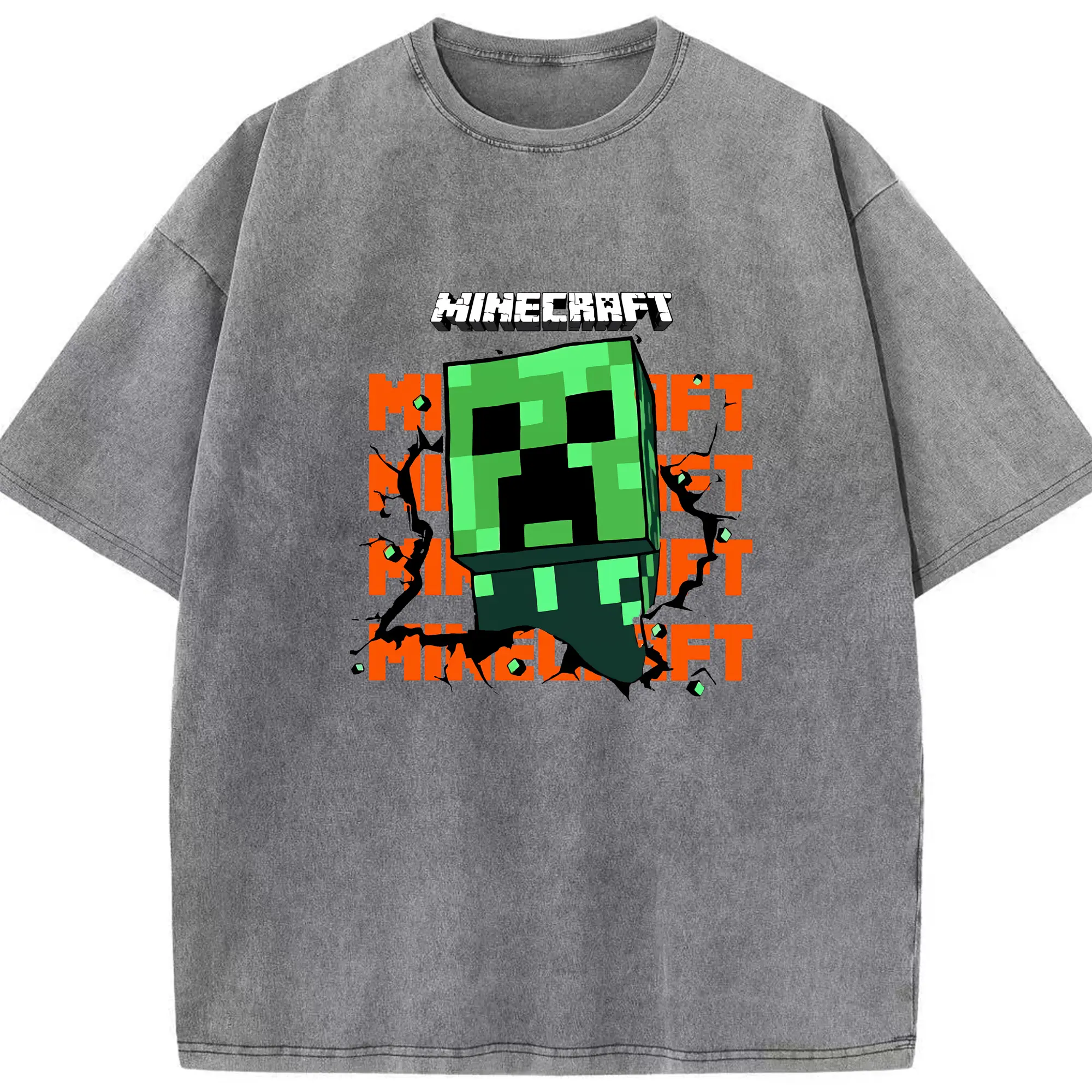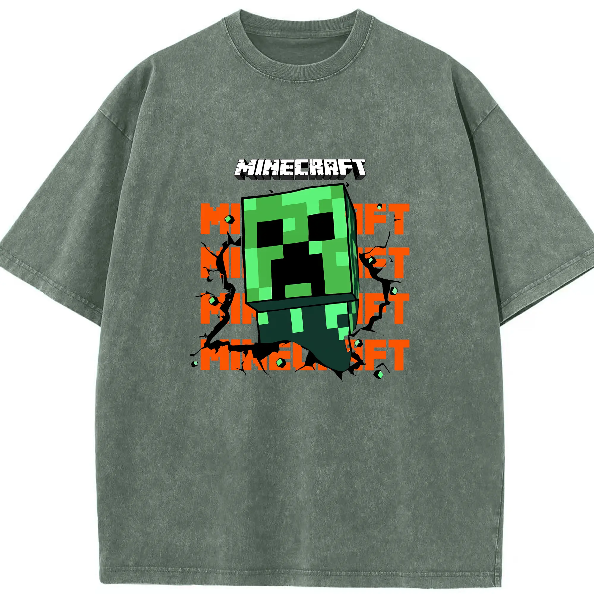 マイクラ グッズ マイクラ - 綿100% ヴィンテージ風 半袖Tシャツ ・ 背面プリント ・ 柔らか肌触り ・ 通気性 快適 ・ スポーツ カジュアル 外出用