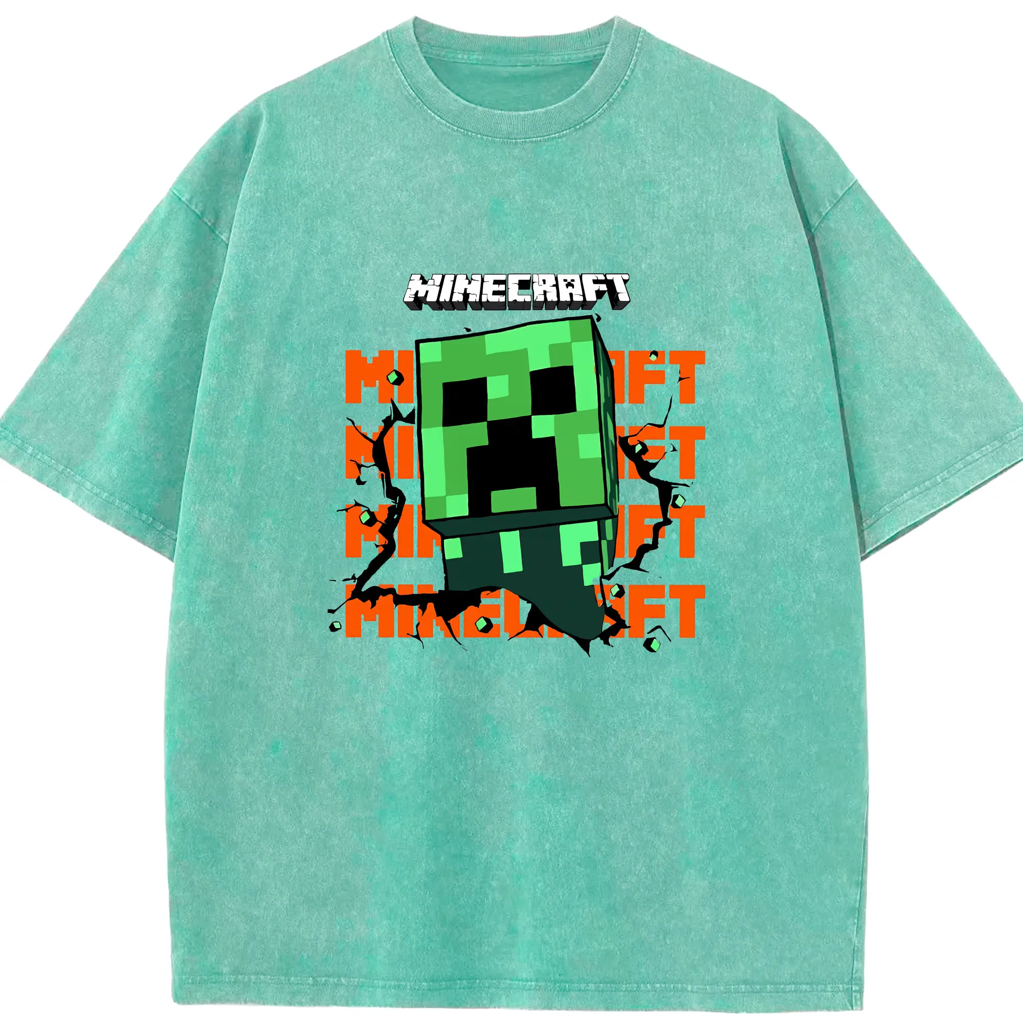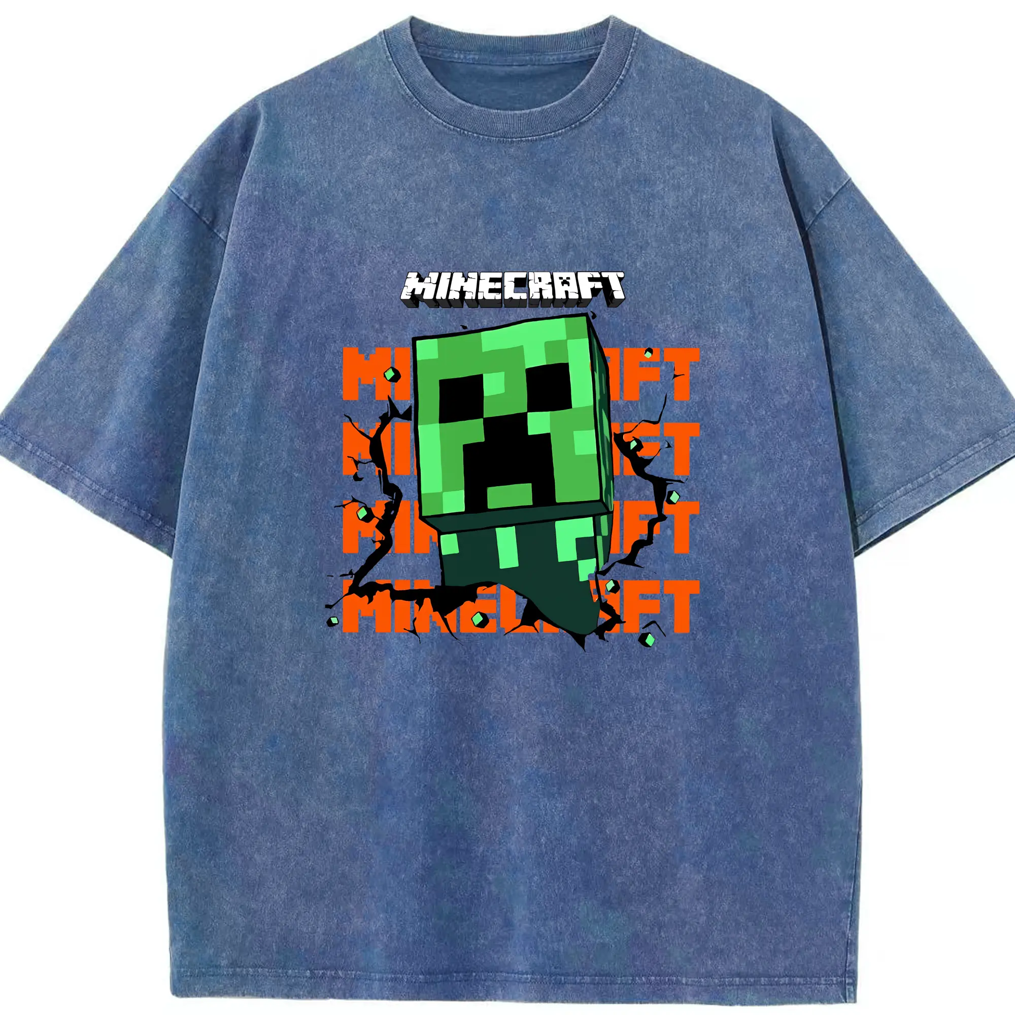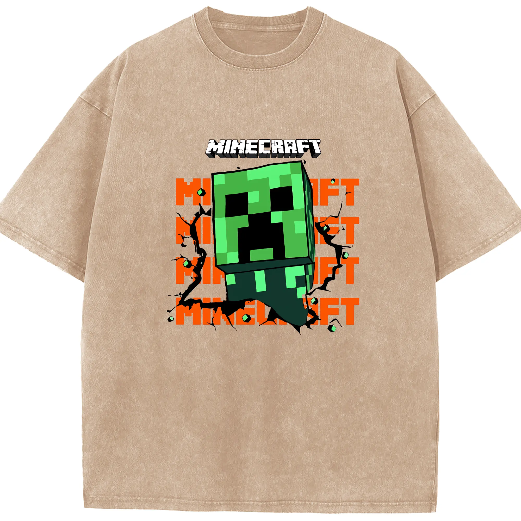 マイクラ グッズ マイクラ - 綿100% ヴィンテージ風 半袖Tシャツ ・ 背面プリント ・ 柔らか肌触り ・ 通気性 快適 ・ スポーツ カジュアル 外出用