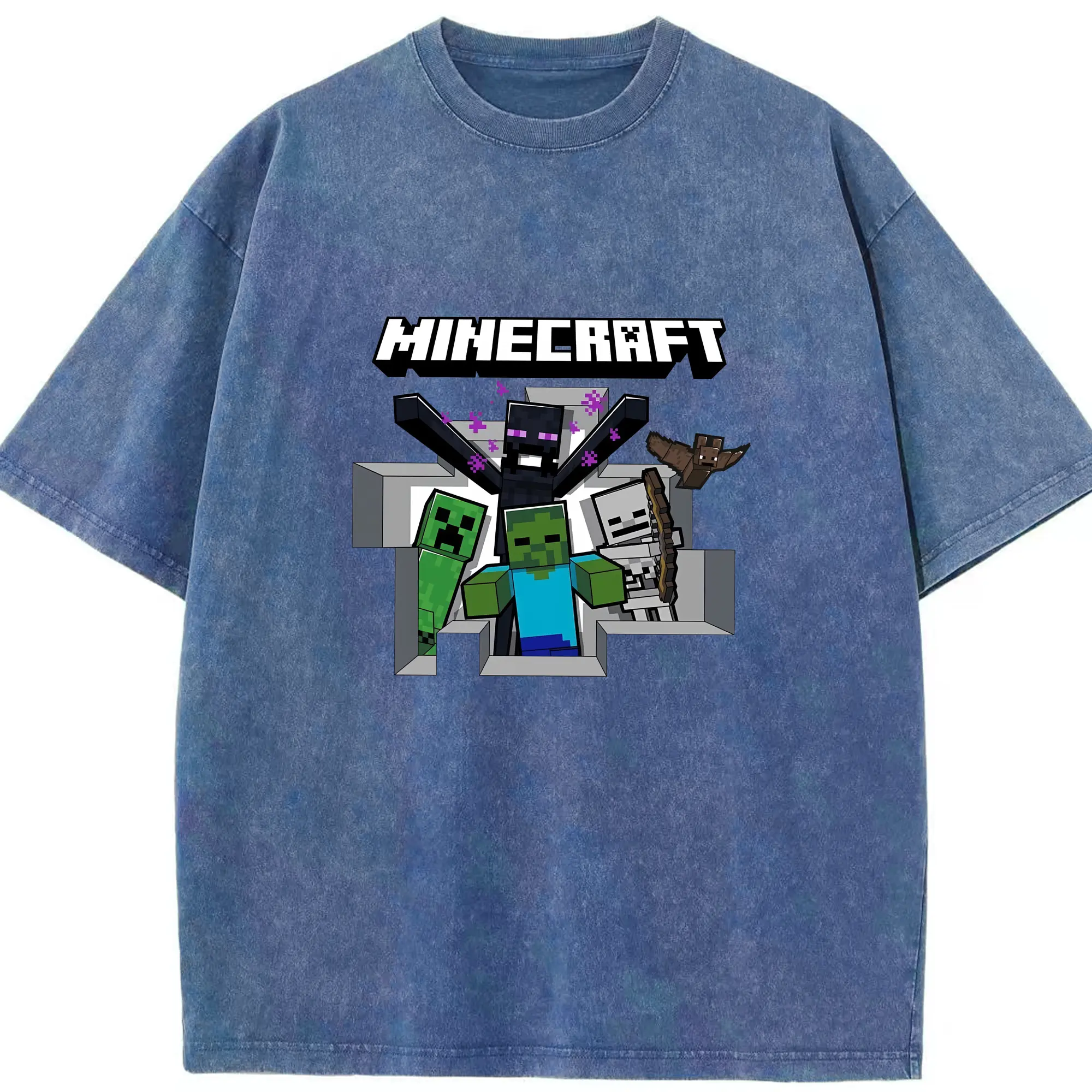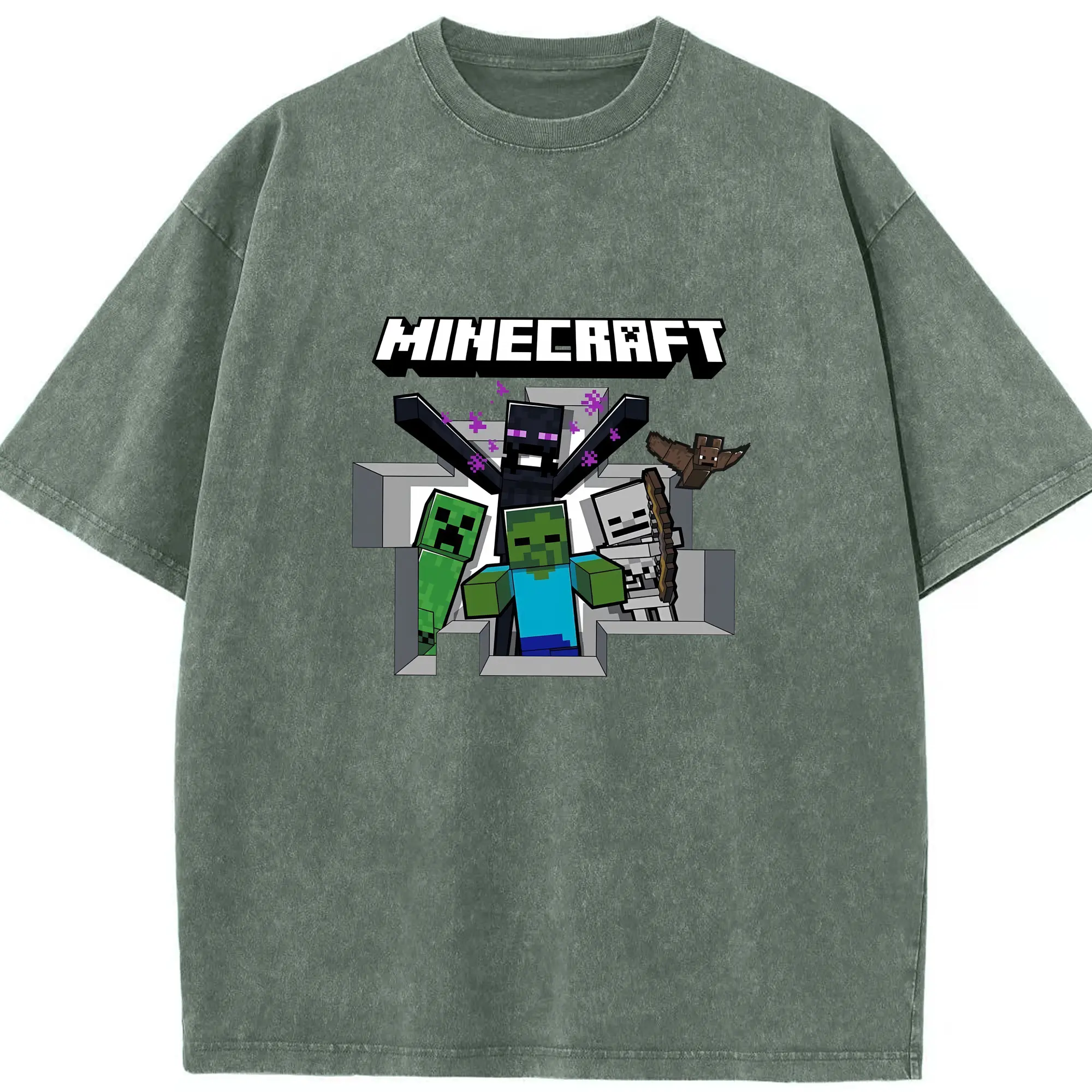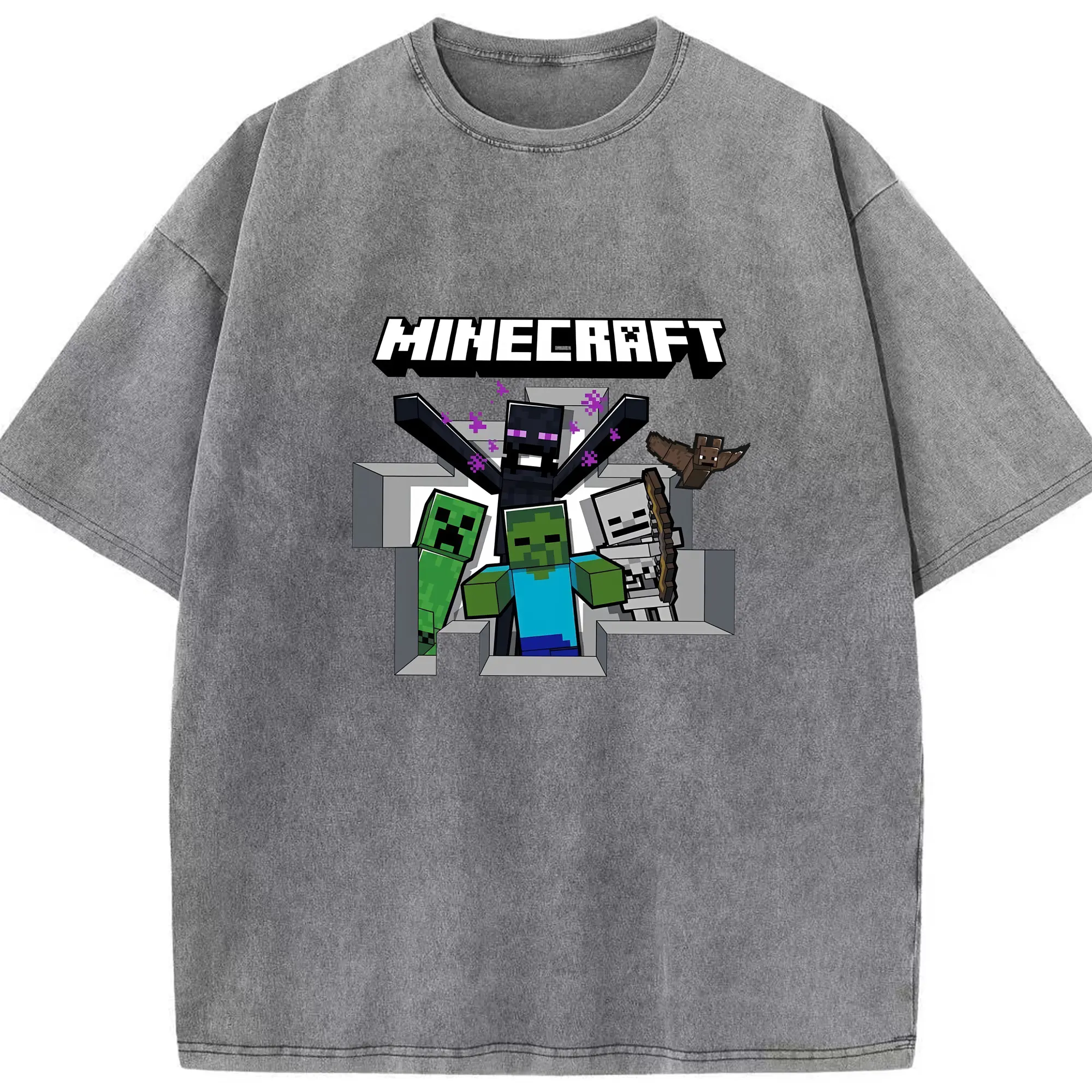 マイクラ グッズ マイクラ - 綿100% ヴィンテージ風 半袖Tシャツ ・ 背面プリント ・ 柔らか肌触り ・ 通気性 快適 ・ スポーツ カジュアル 外出用