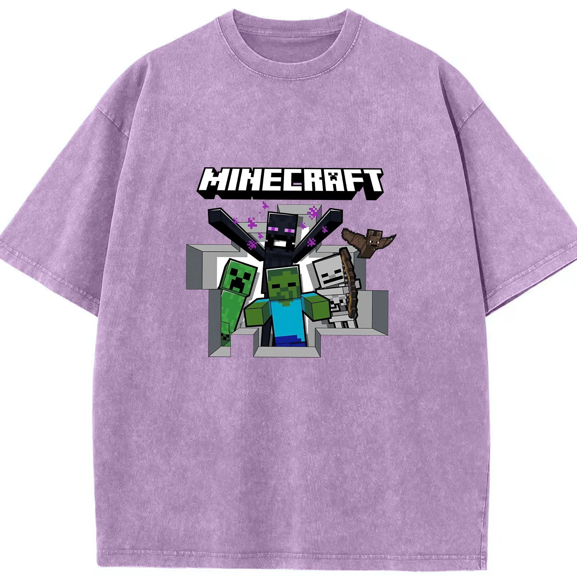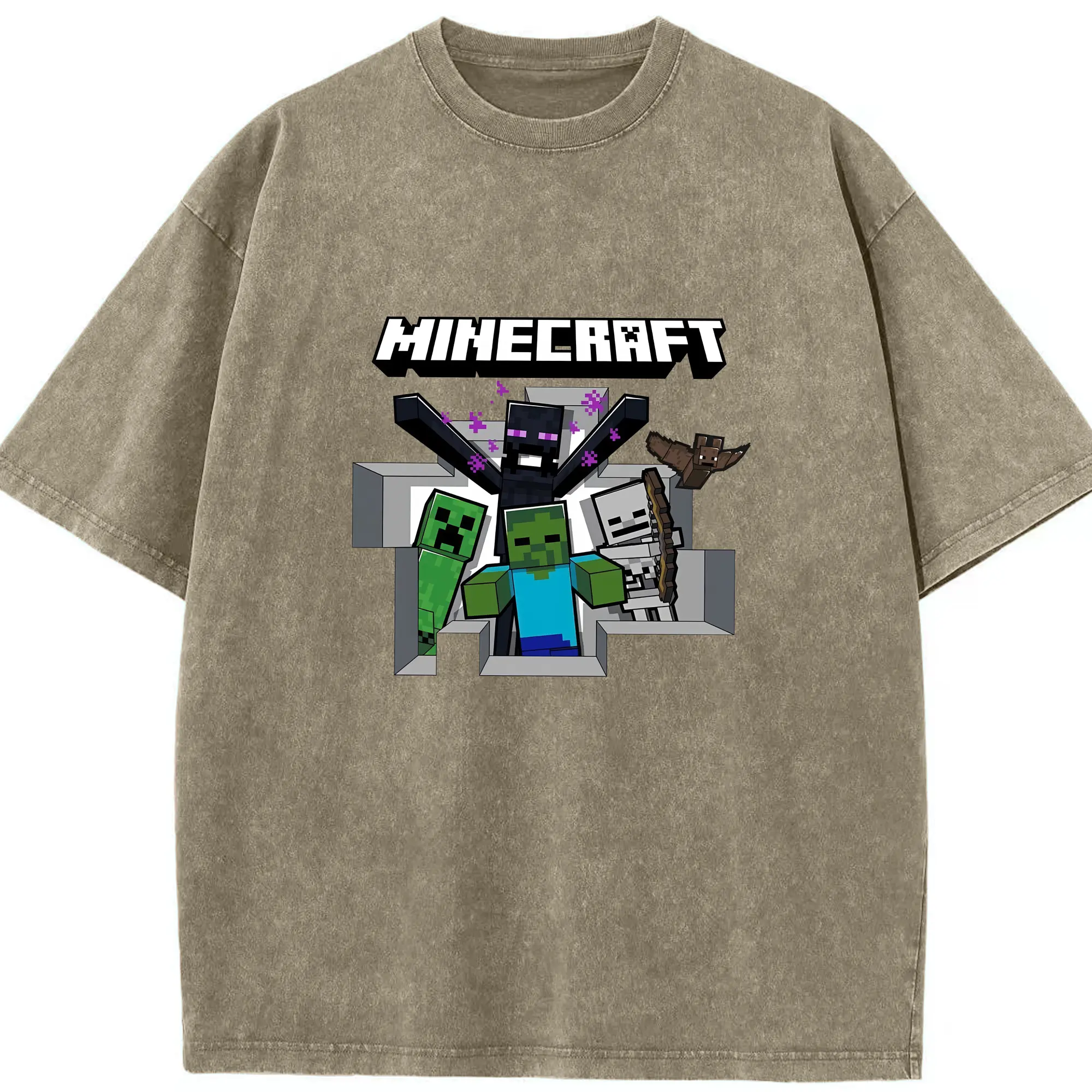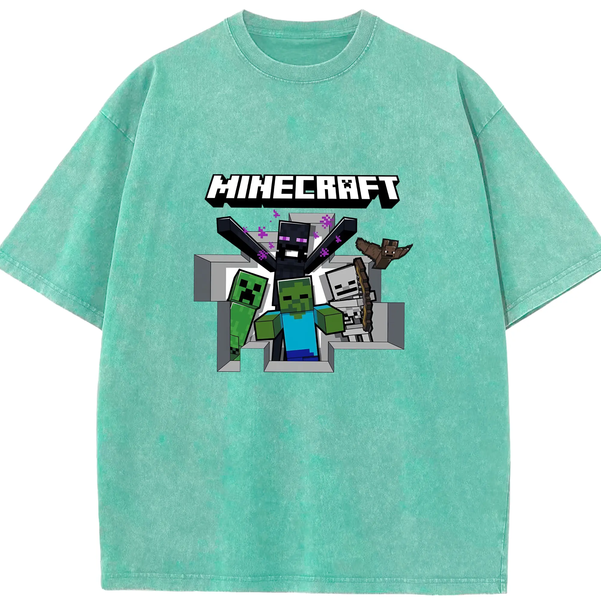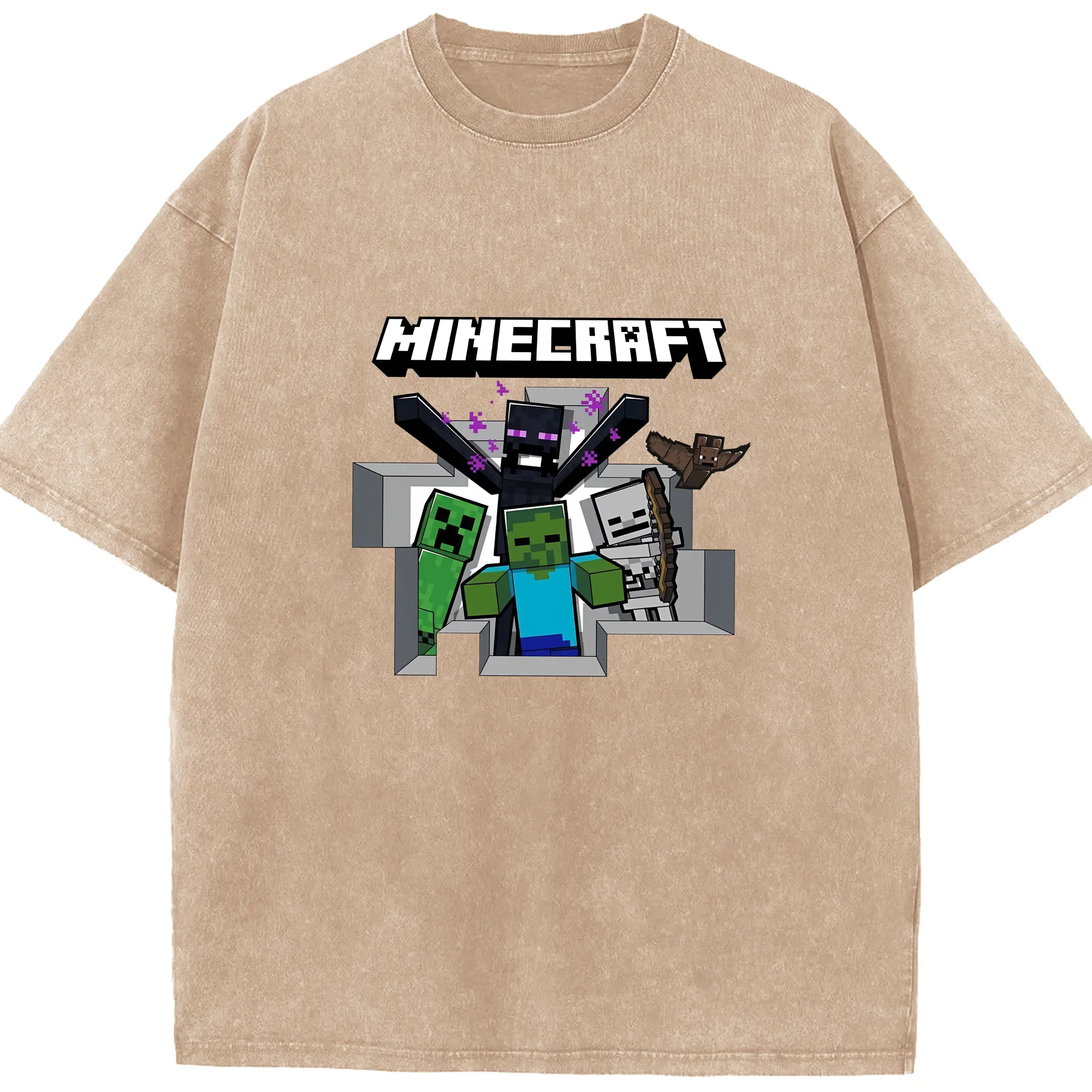 マイクラ グッズ マイクラ - 綿100% ヴィンテージ風 半袖Tシャツ ・ 背面プリント ・ 柔らか肌触り ・ 通気性 快適 ・ スポーツ カジュアル 外出用