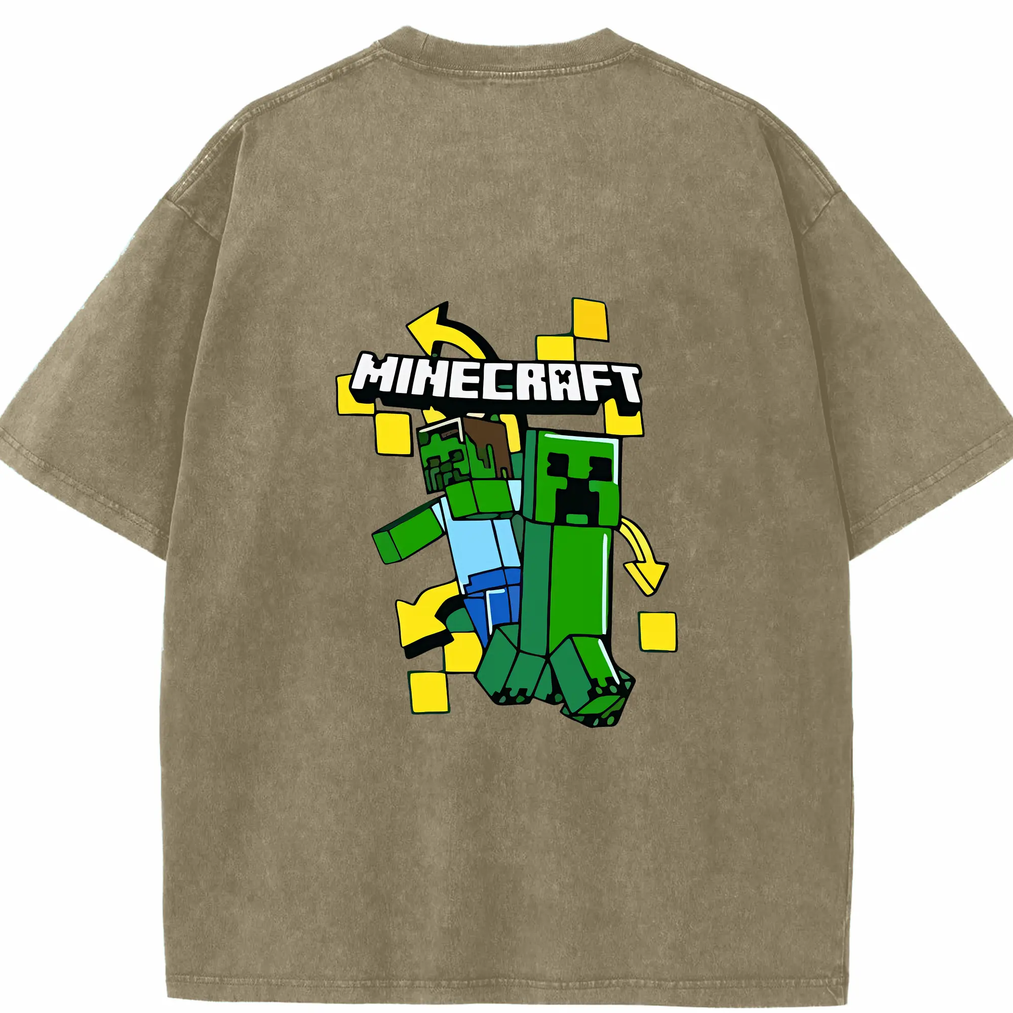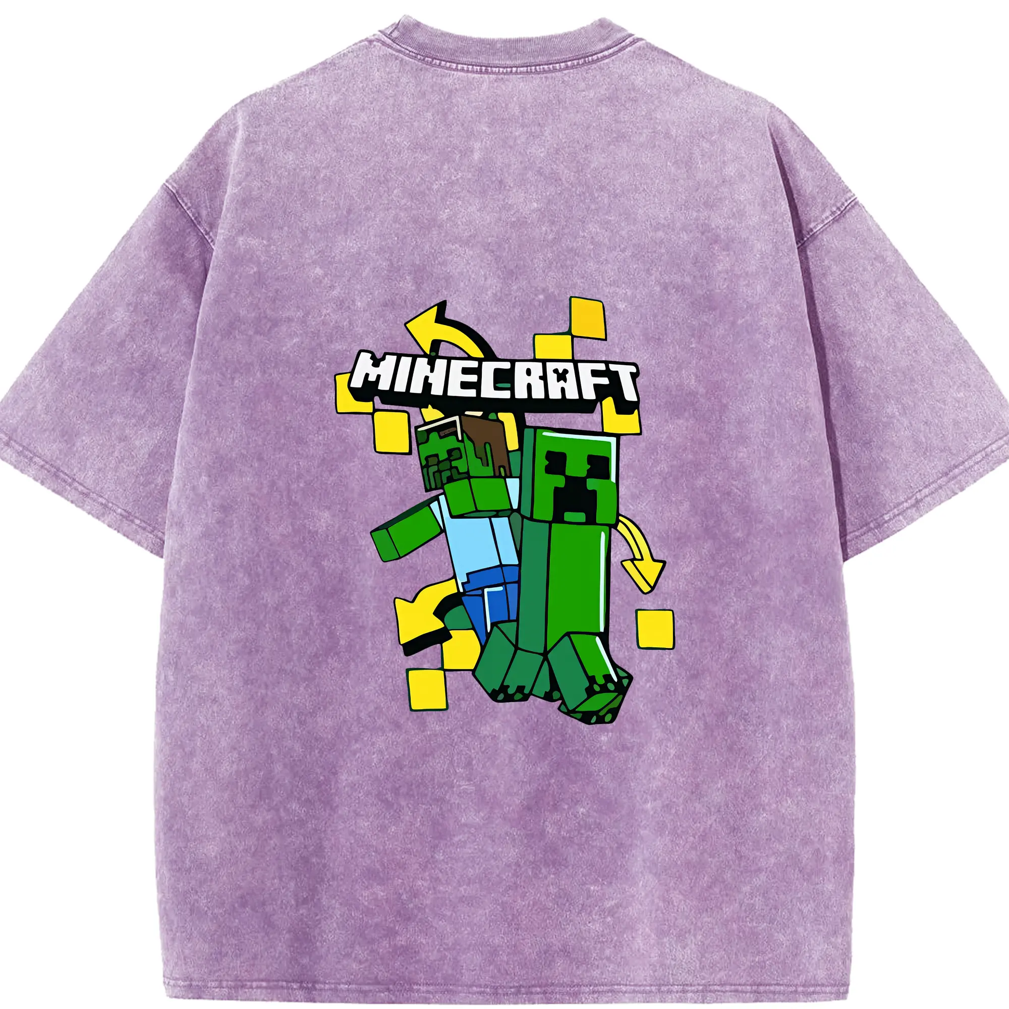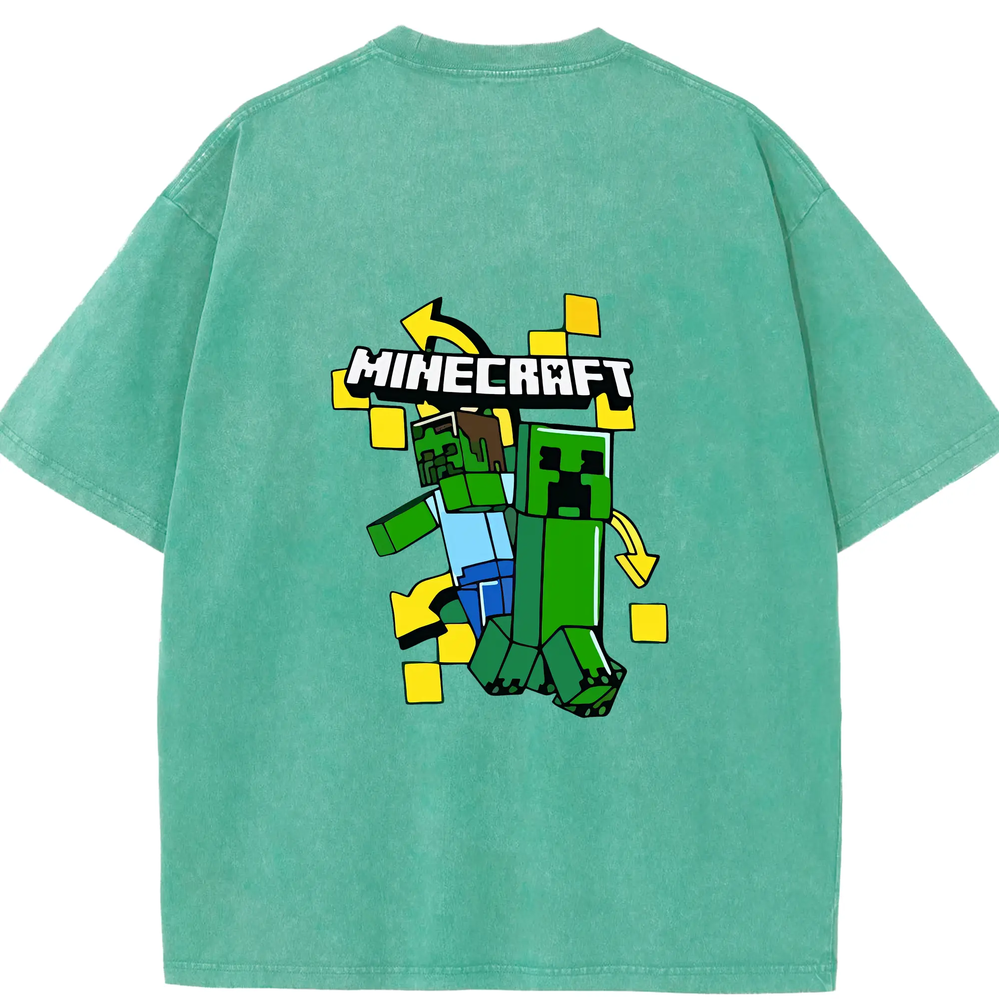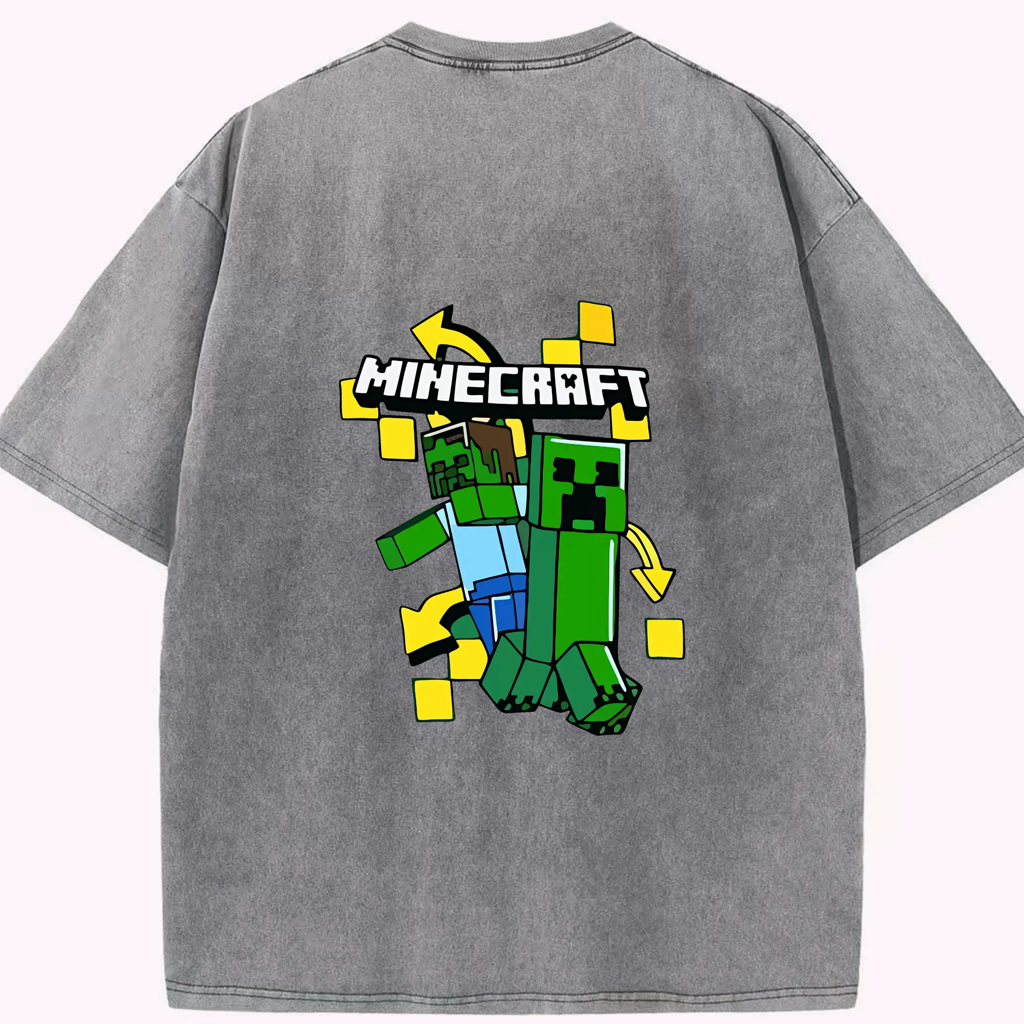 マイクラ グッズ マイクラ - 綿100% ヴィンテージ風 半袖Tシャツ ・ フロントプリント ・ 柔らか肌触り ・ 通気性 快適 ・ スポーツ カジュアル 外出用