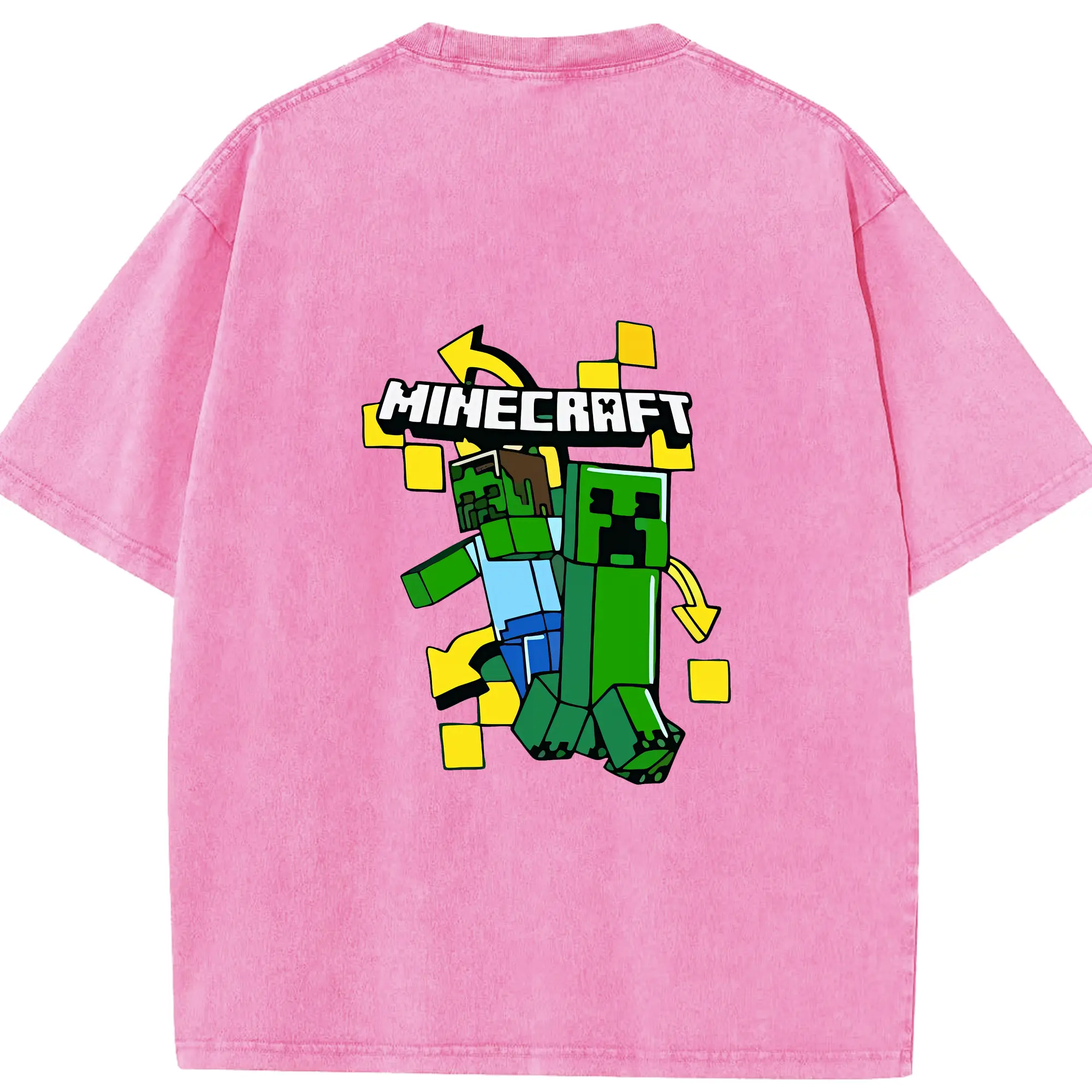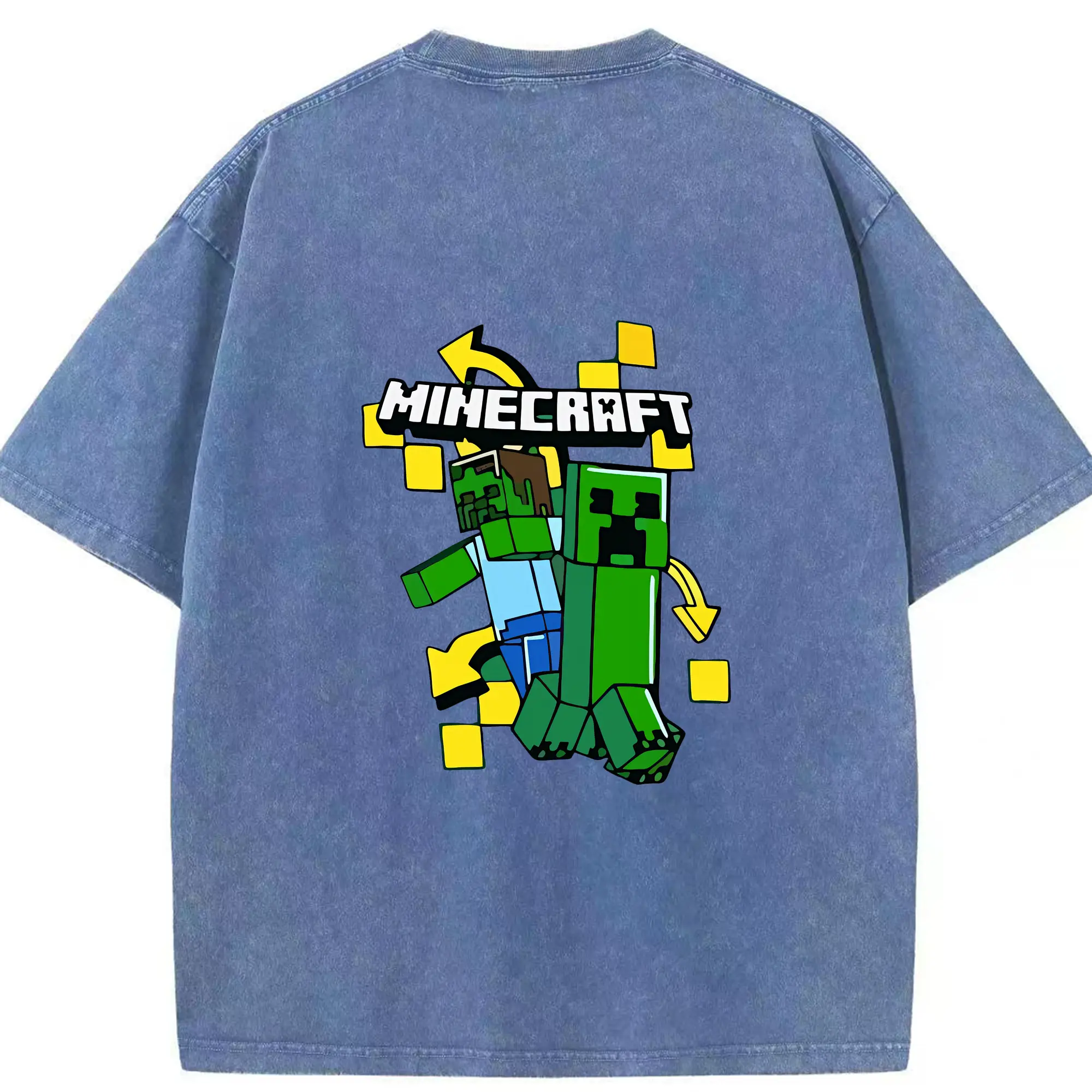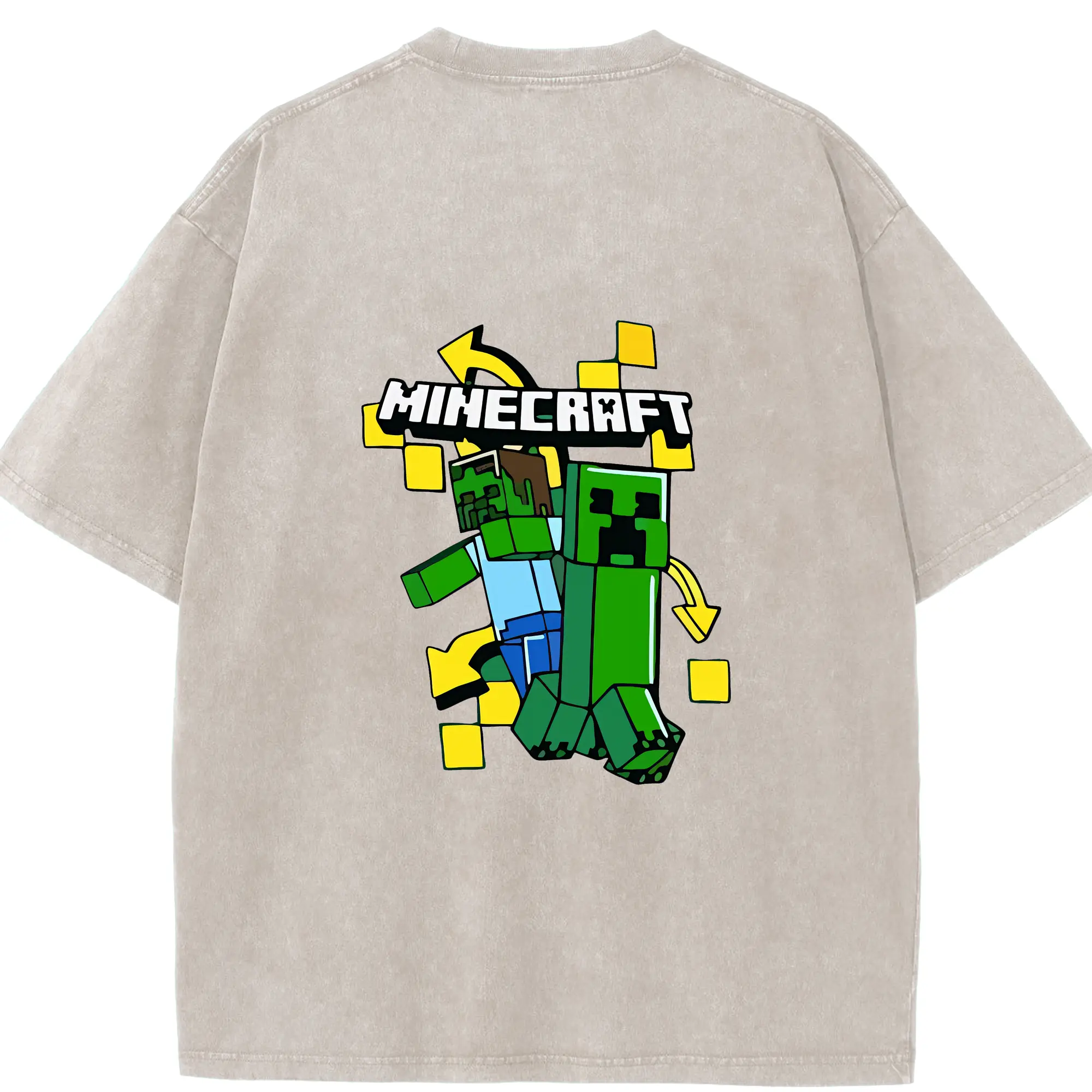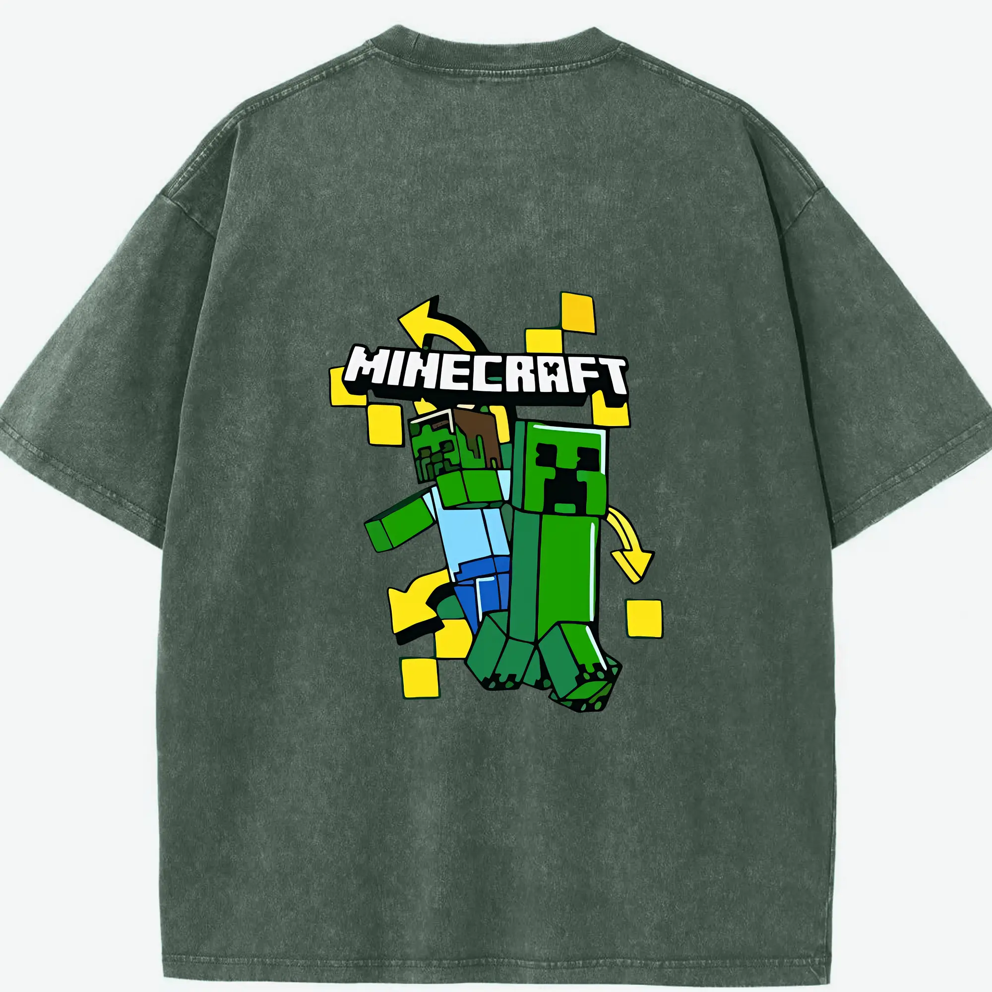 マイクラ グッズ マイクラ - 綿100% ヴィンテージ風 半袖Tシャツ ・ フロントプリント ・ 柔らか肌触り ・ 通気性 快適 ・ スポーツ カジュアル 外出用