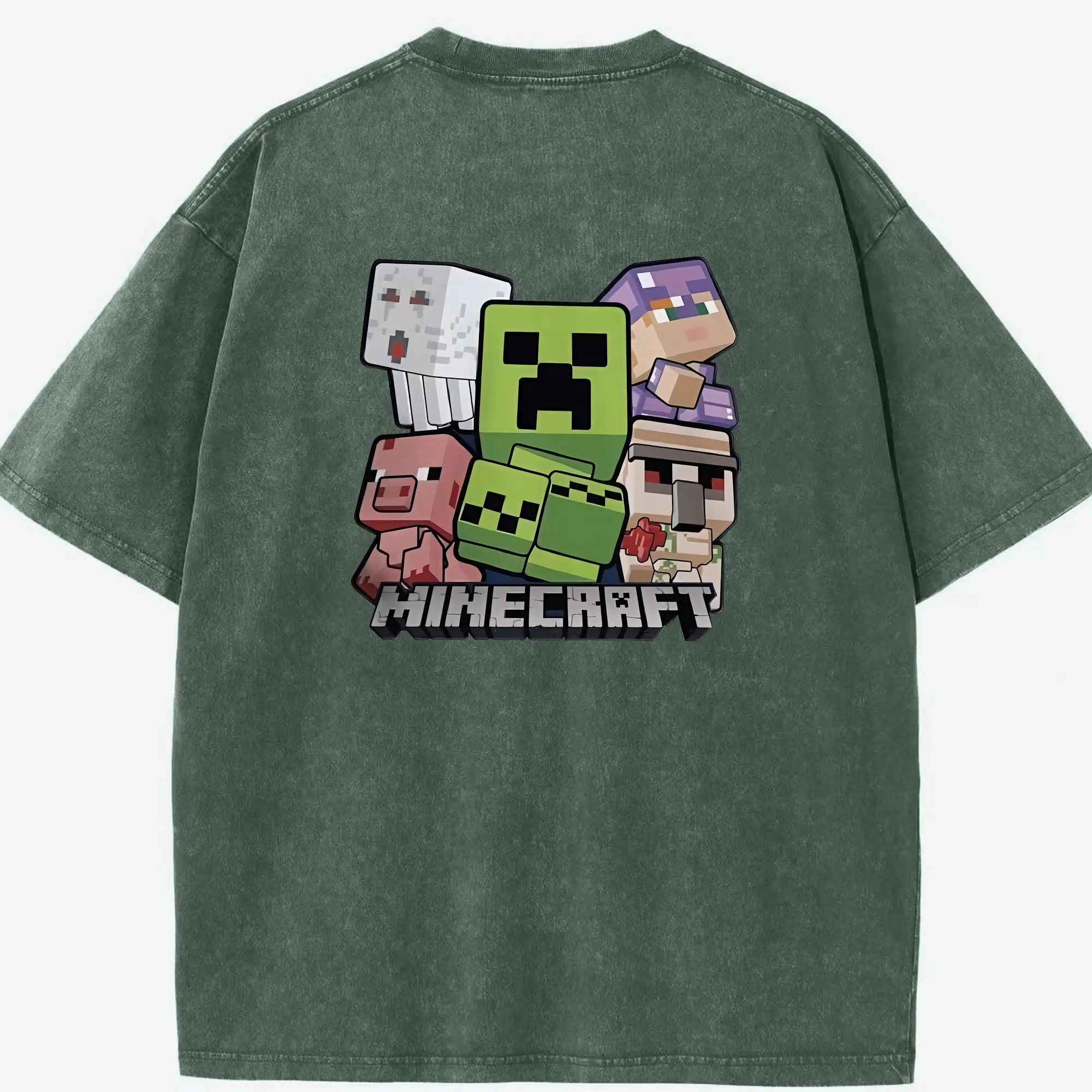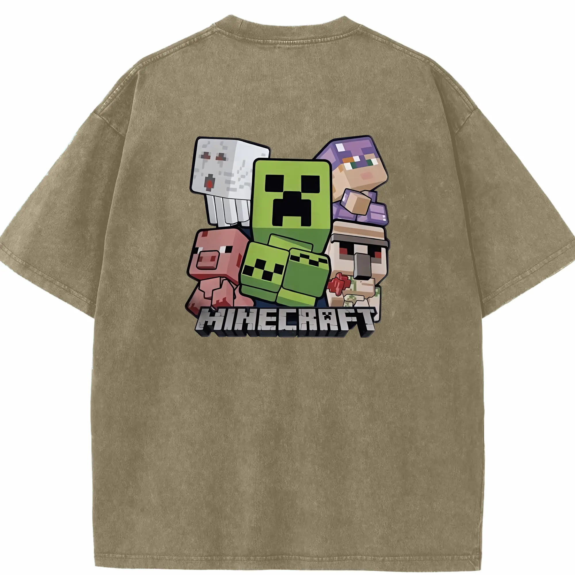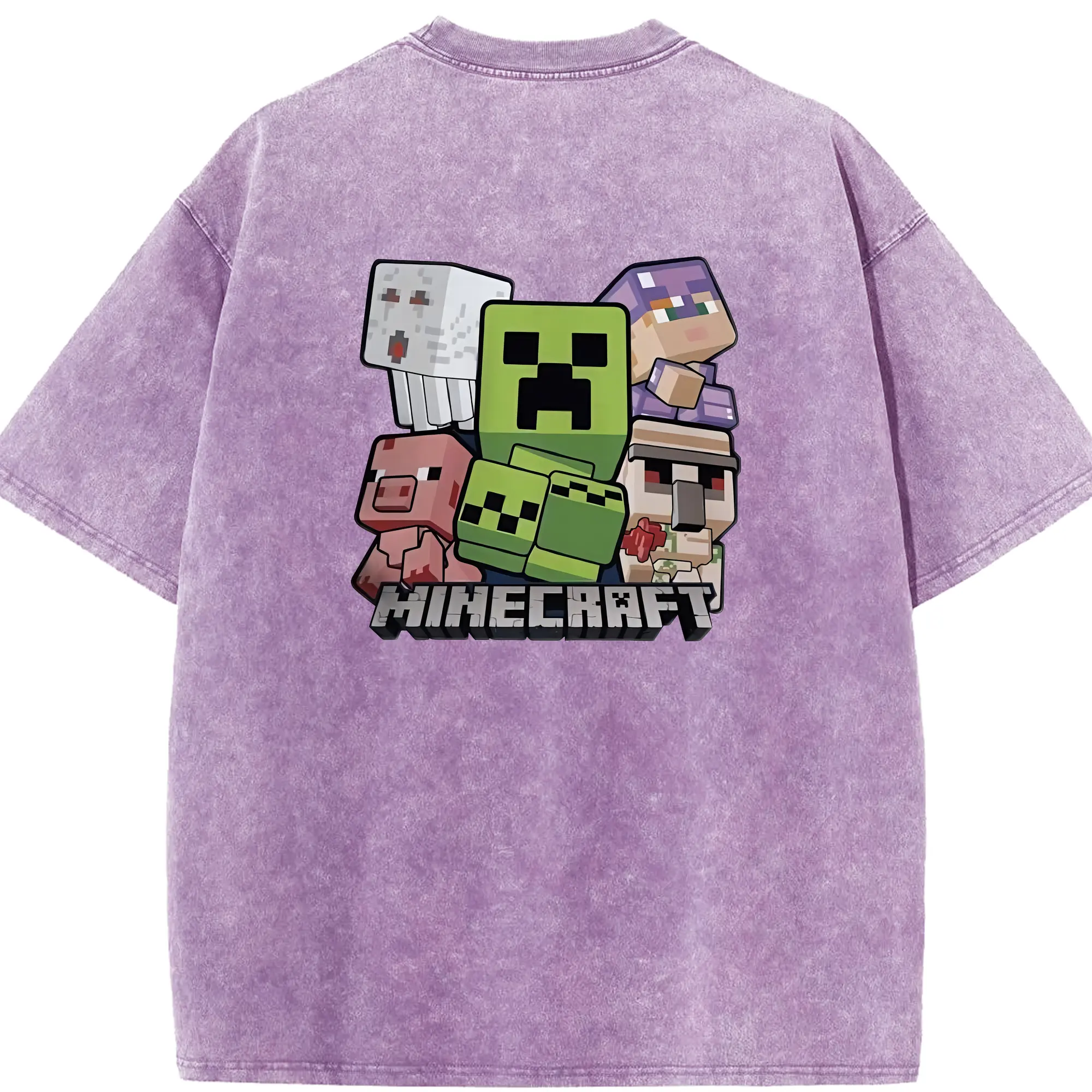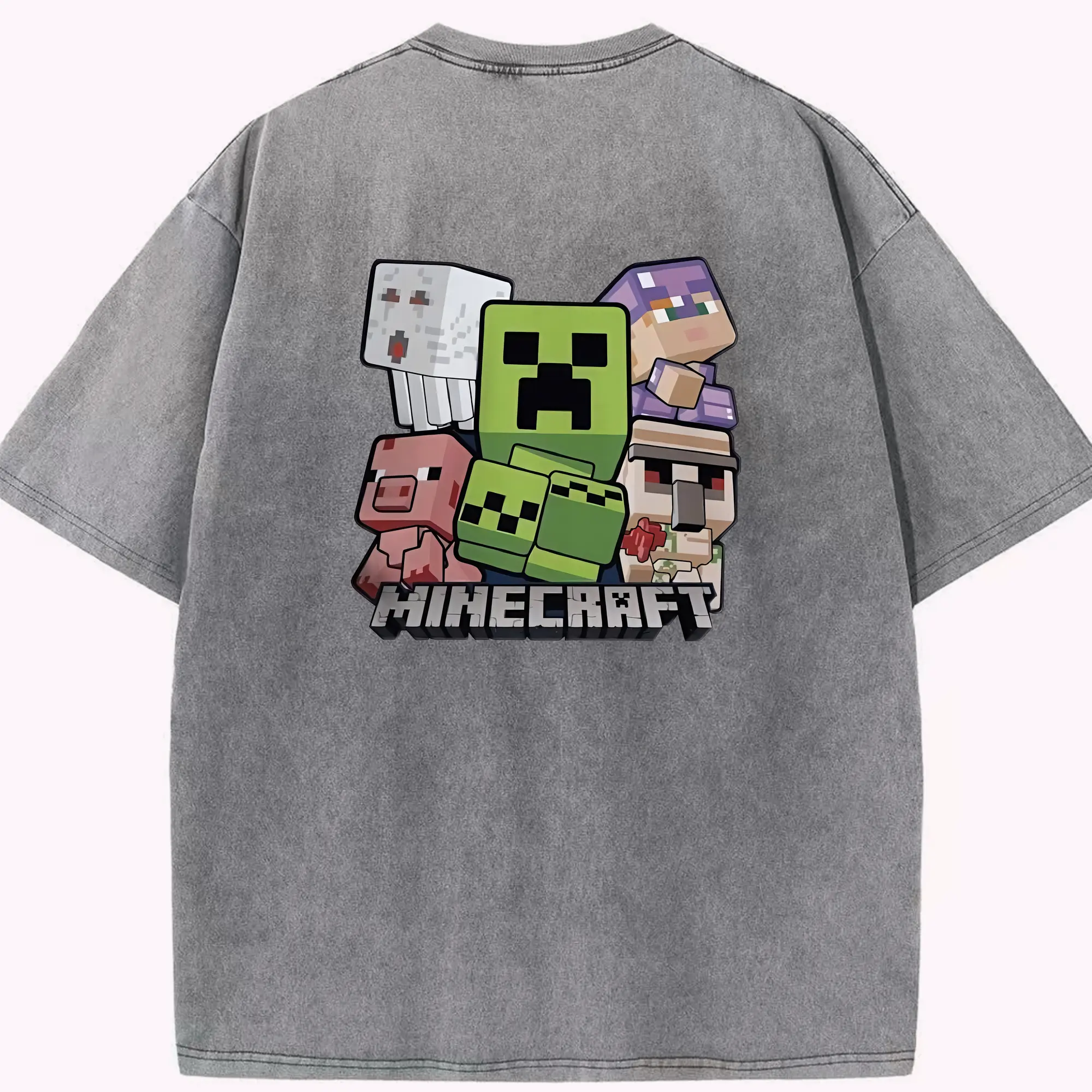 マイクラ グッズ マイクラ - 綿100% ヴィンテージ風 半袖Tシャツ ・ フロントプリント ・ 柔らか肌触り ・ 通気性 快適 ・ スポーツ カジュアル 外出用
