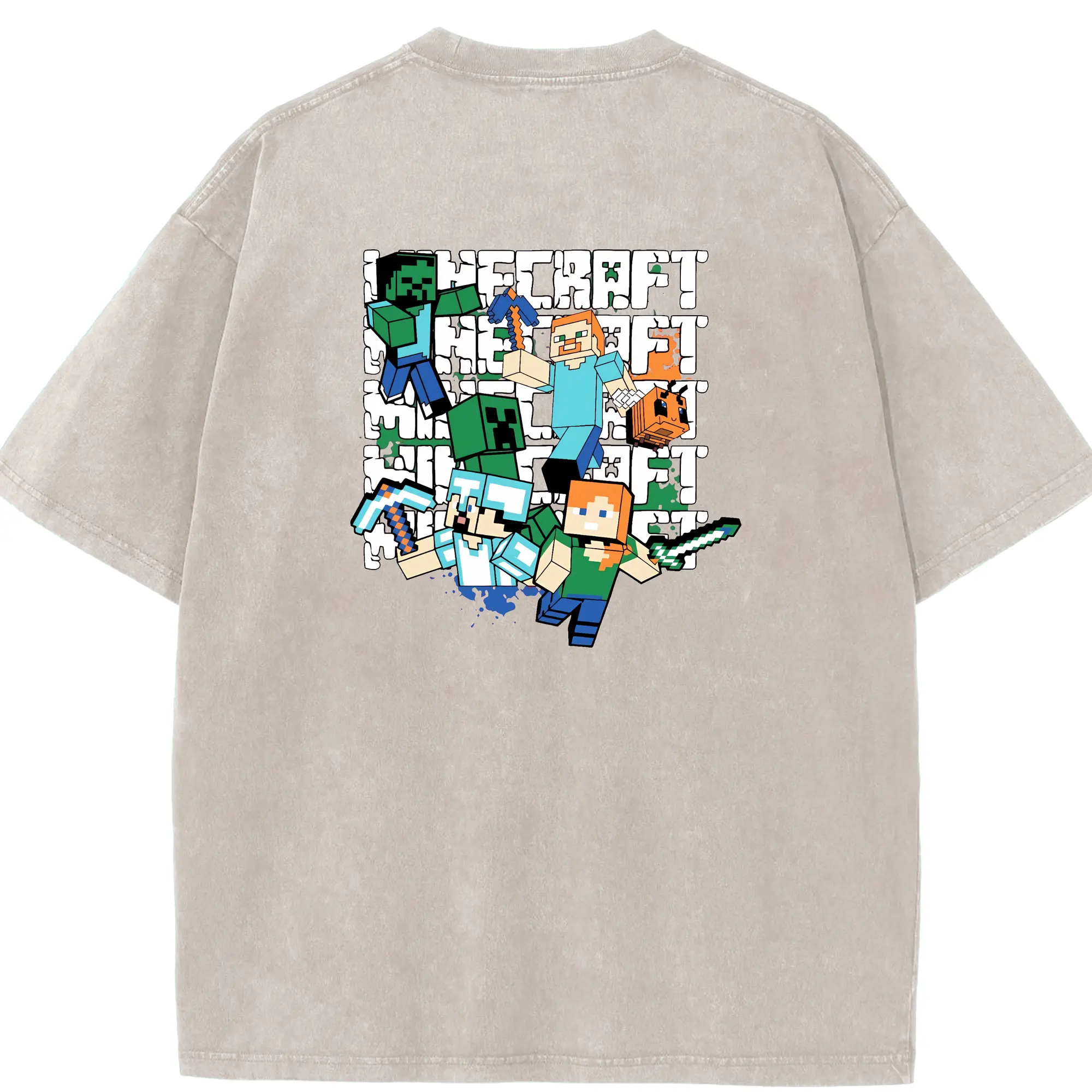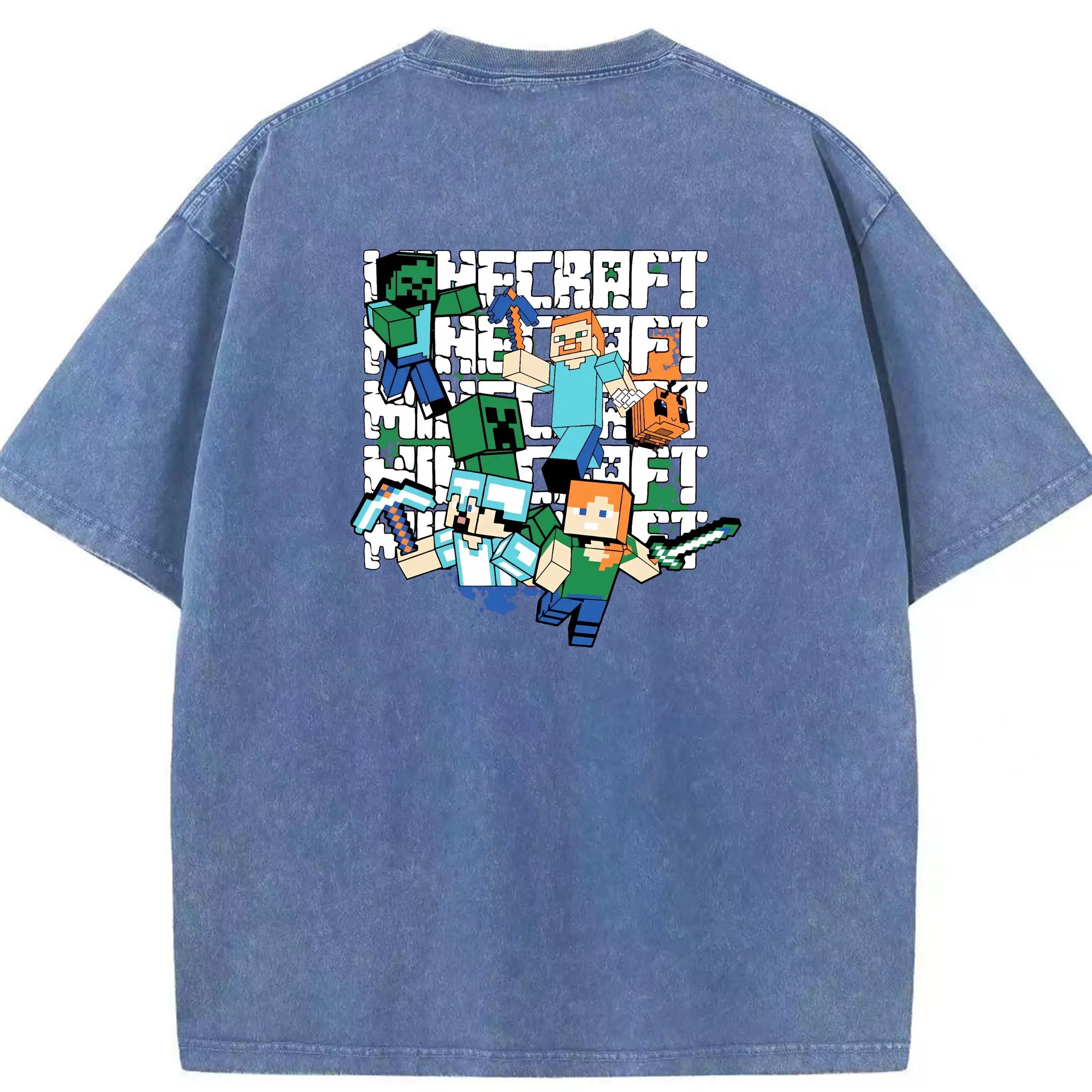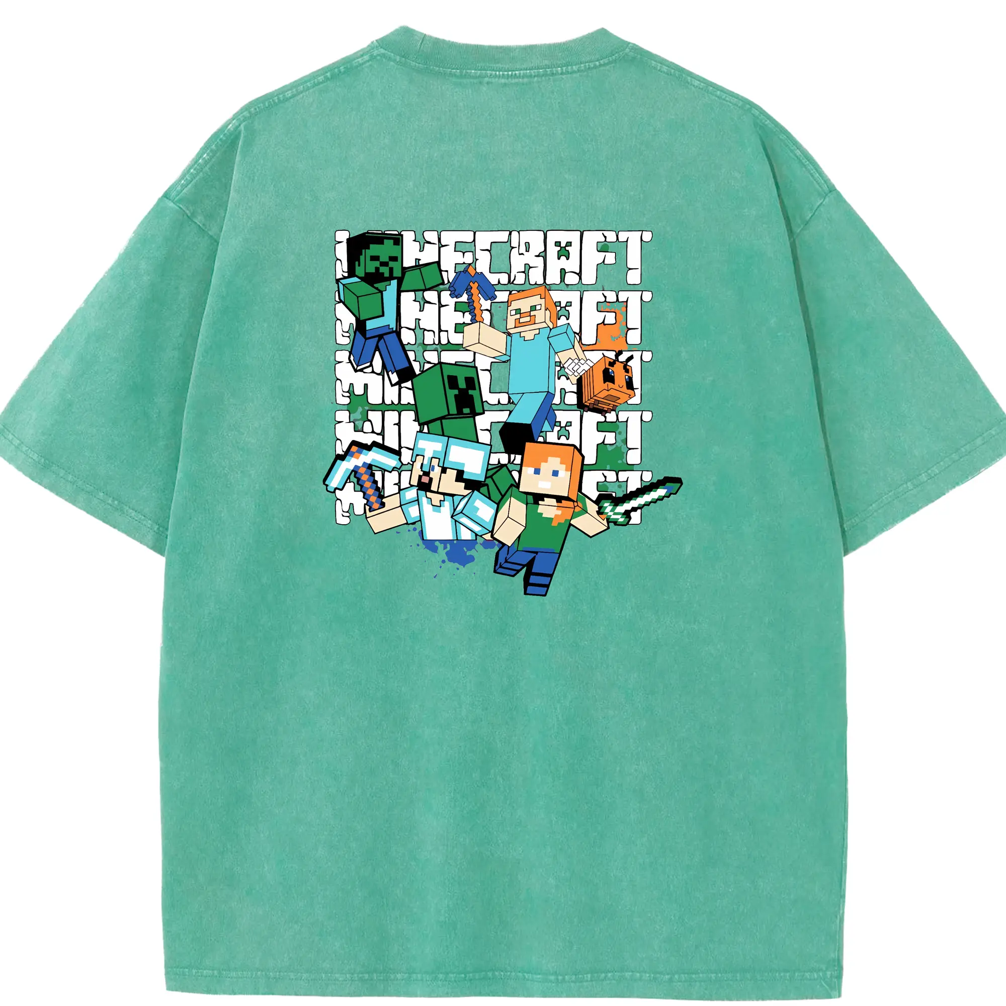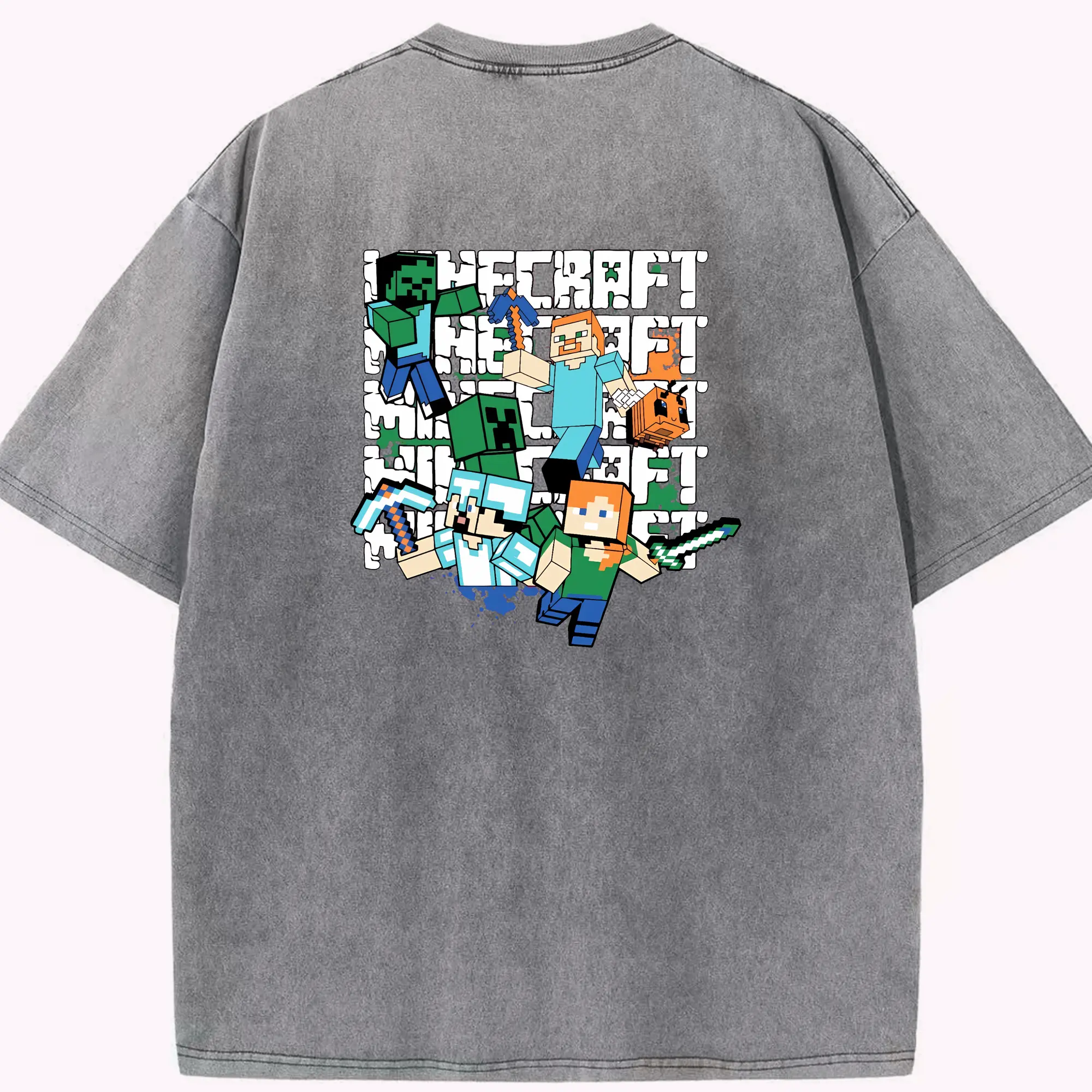 マイクラ グッズ マイクラ - 綿100% ヴィンテージ風 半袖Tシャツ ・ フロントプリント ・ 柔らか肌触り ・ 通気性 快適 ・ スポーツ カジュアル 外出用