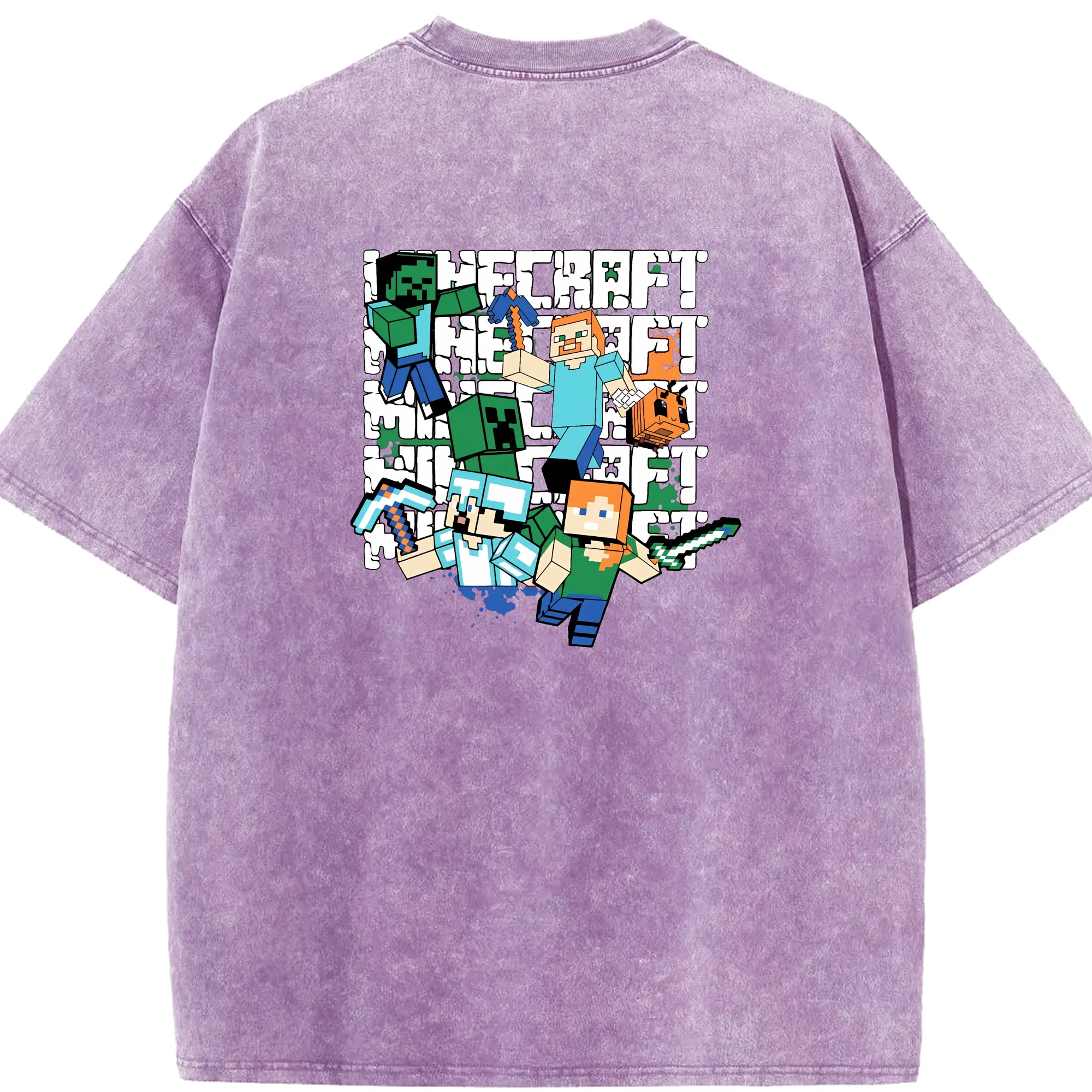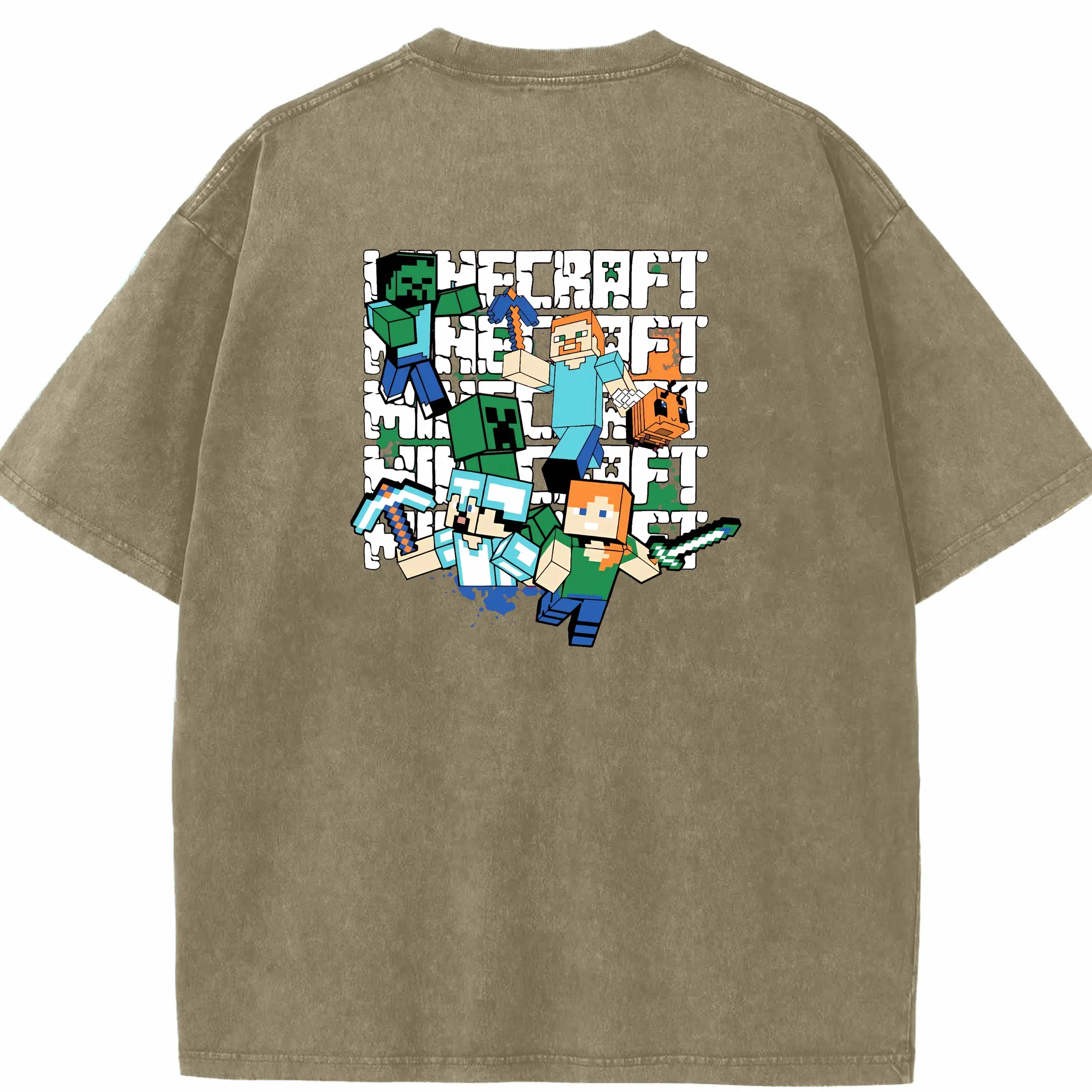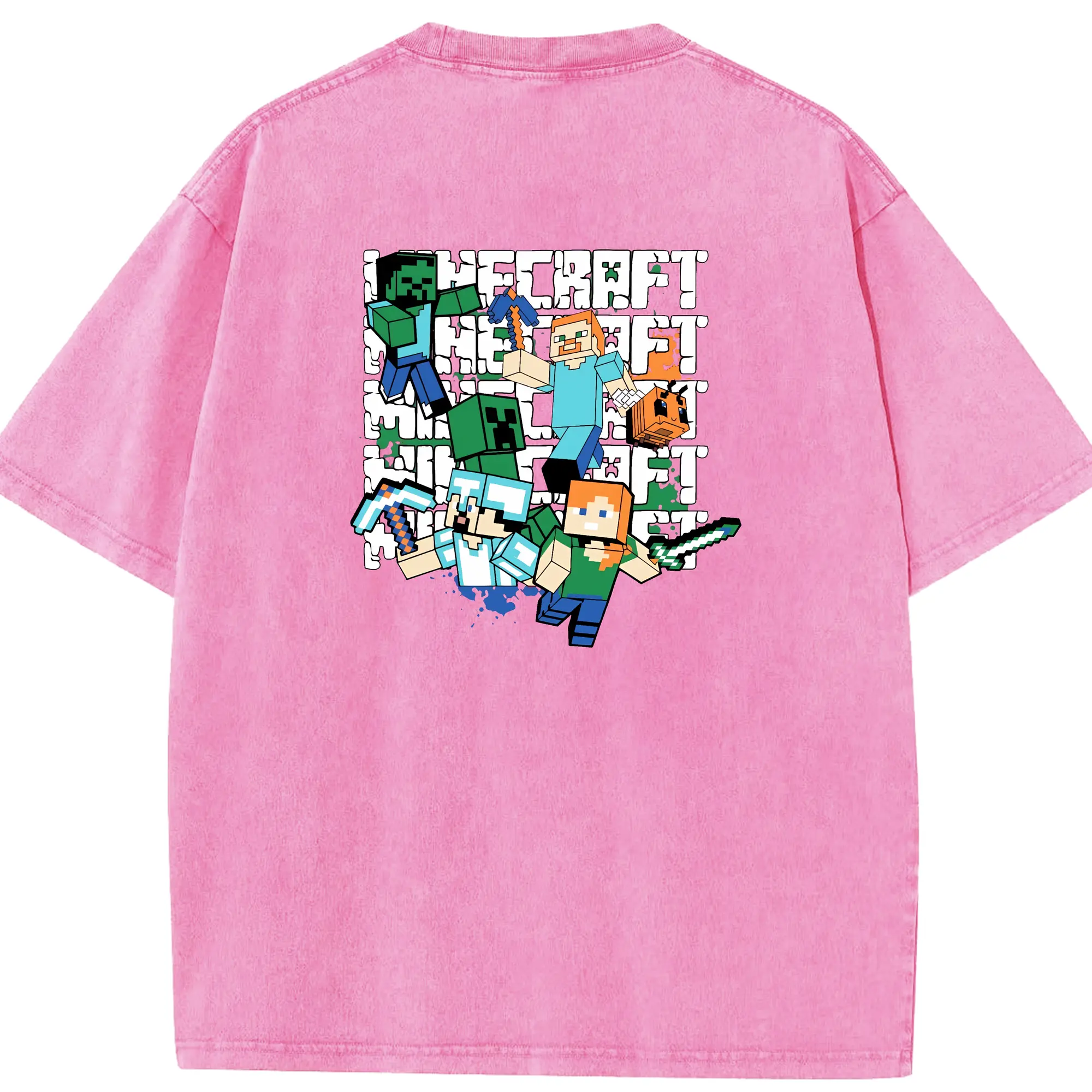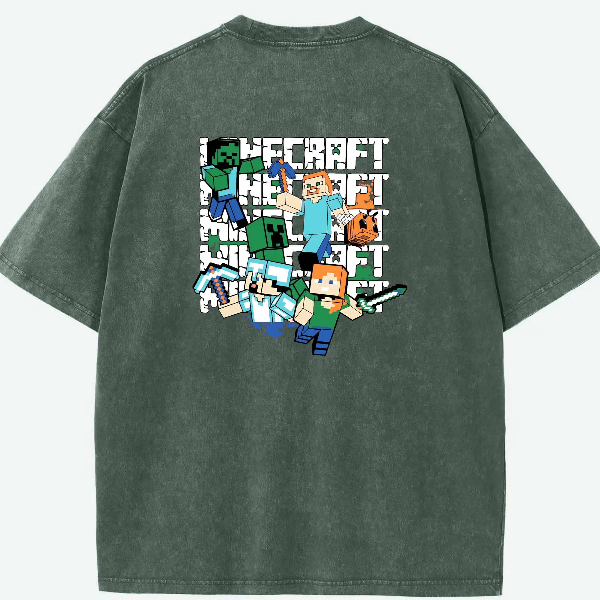 マイクラ グッズ マイクラ - 綿100% ヴィンテージ風 半袖Tシャツ ・ フロントプリント ・ 柔らか肌触り ・ 通気性 快適 ・ スポーツ カジュアル 外出用