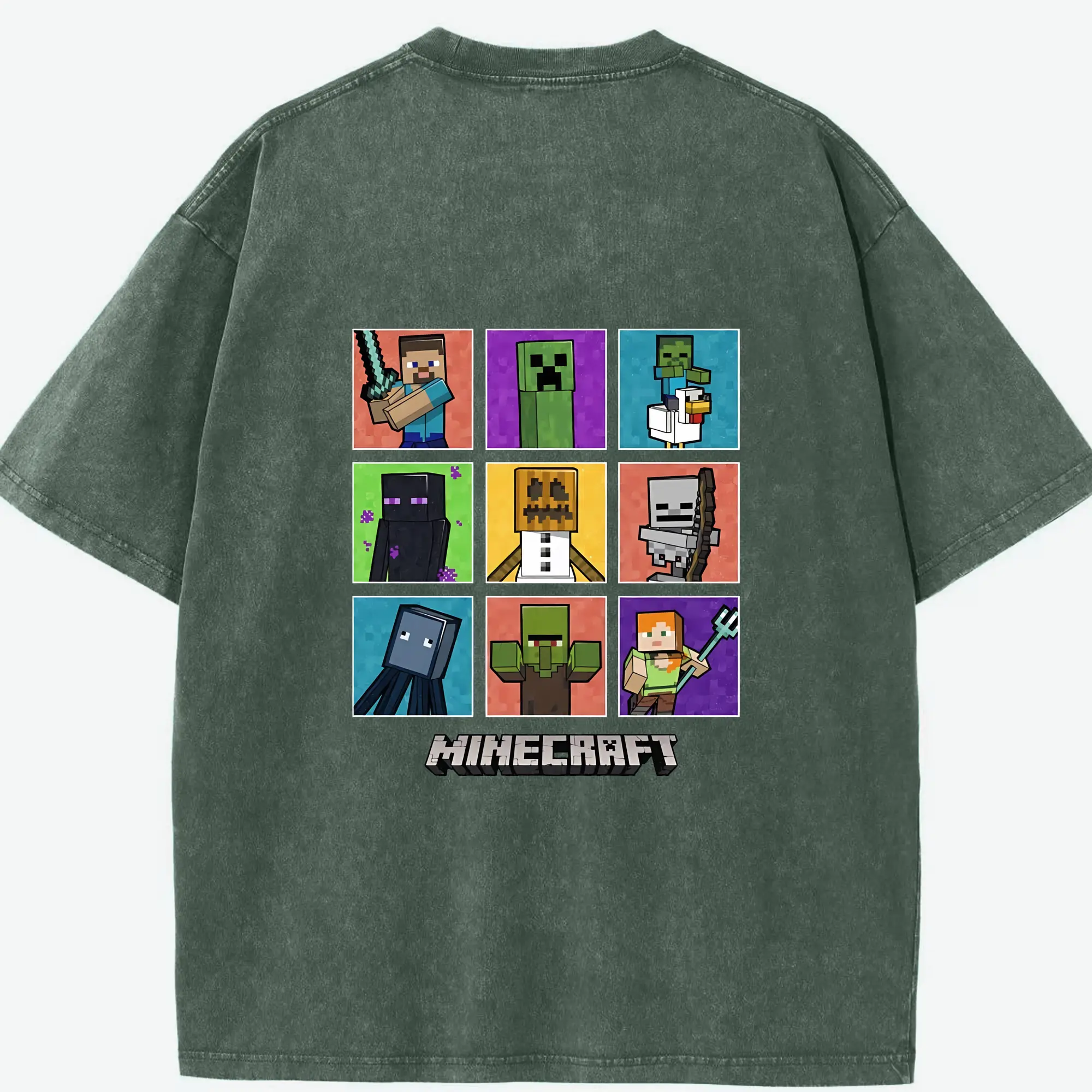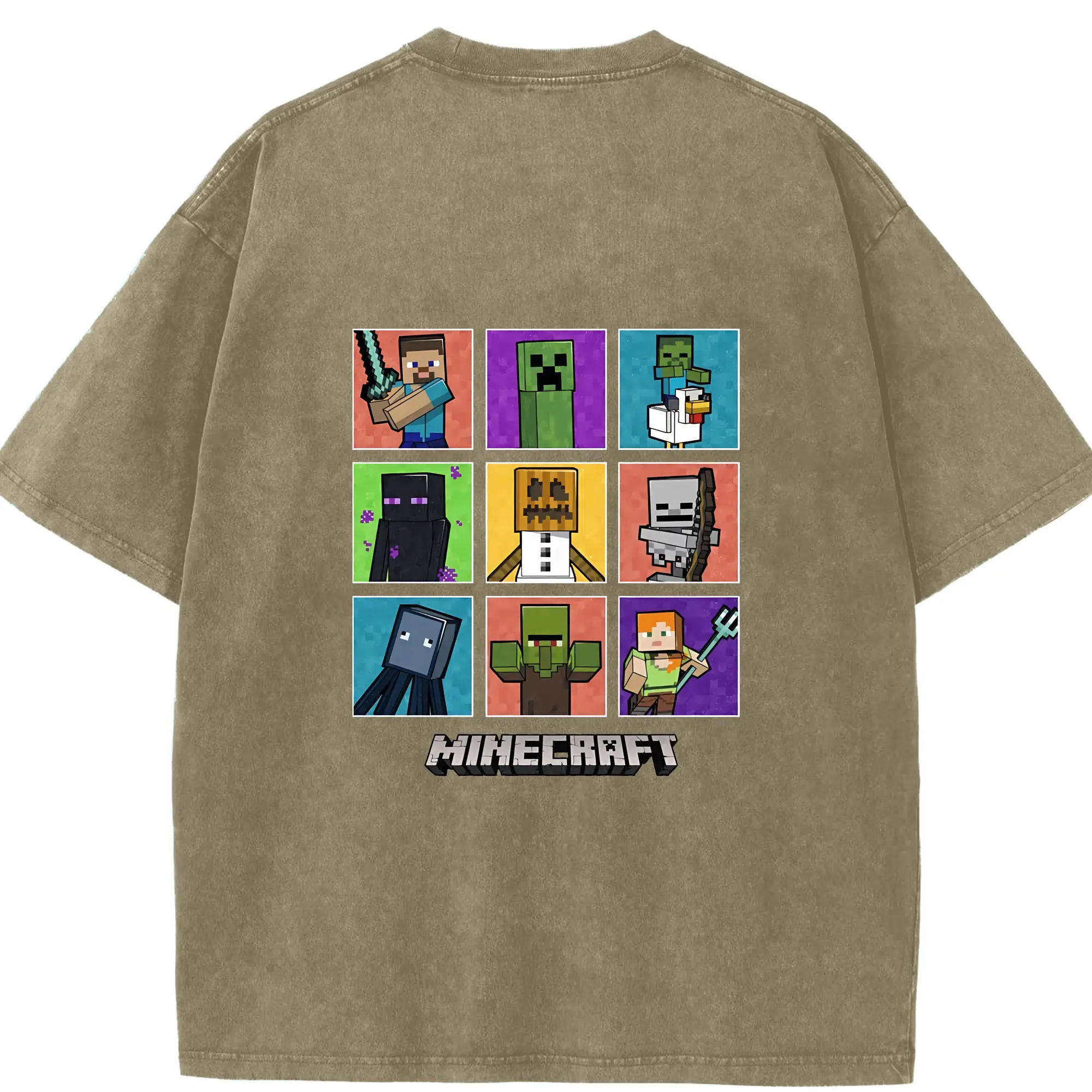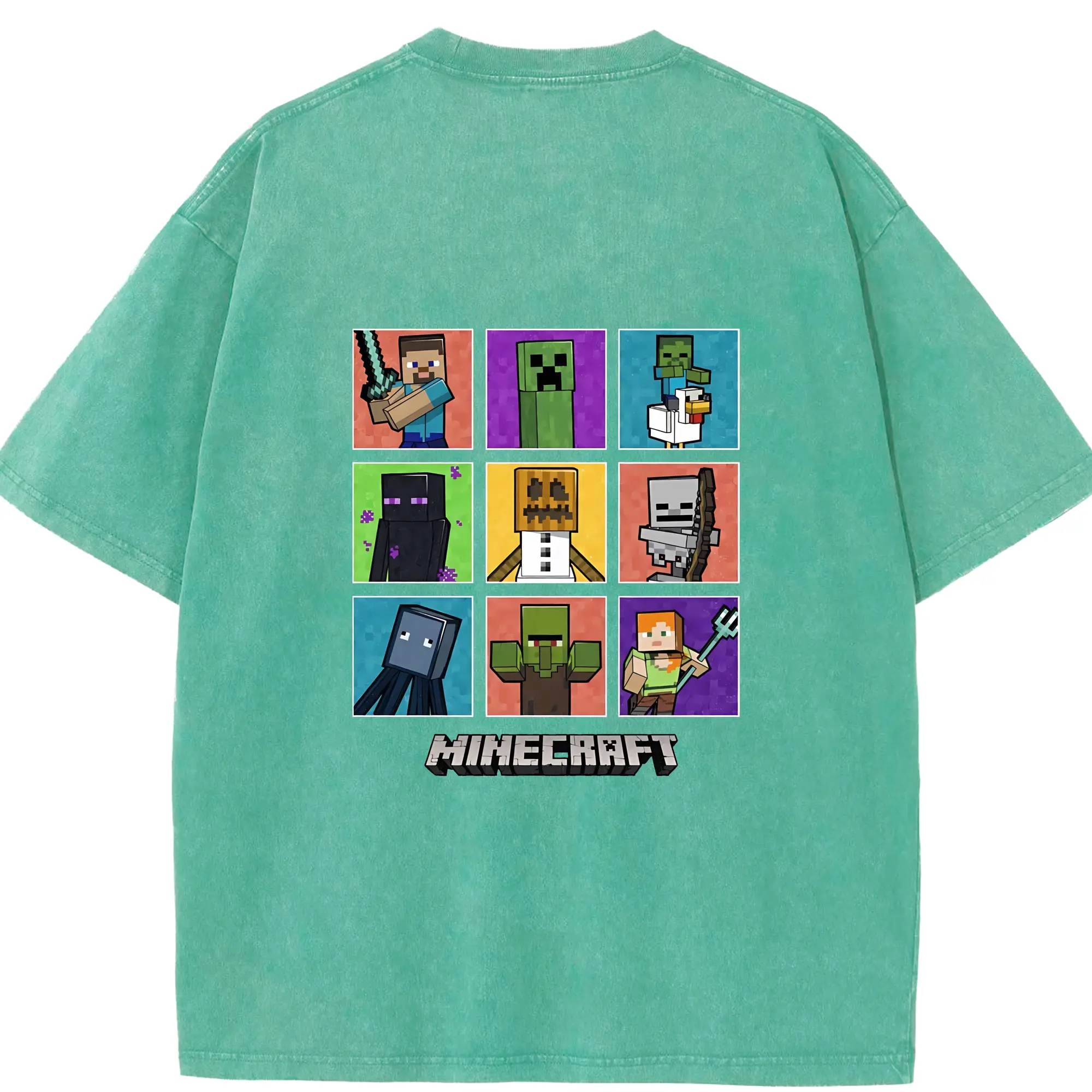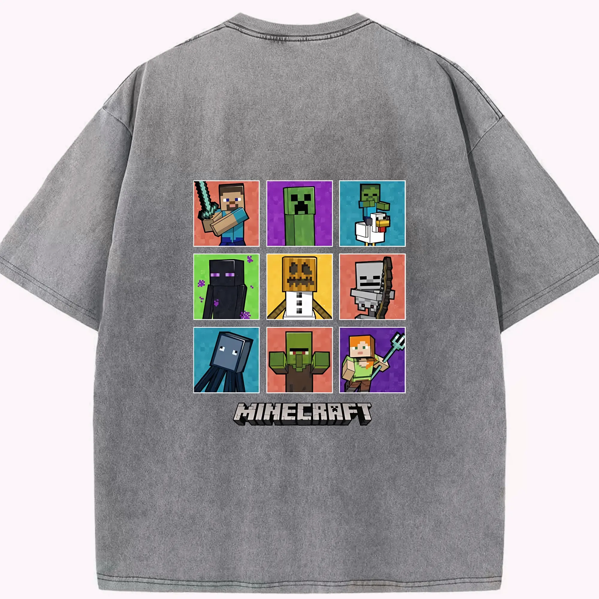マイクラ グッズ マイクラ - 綿100% ヴィンテージ風 半袖Tシャツ ・ フロントプリント ・ 柔らか肌触り ・ 通気性 快適 ・ スポーツ カジュアル 外出用