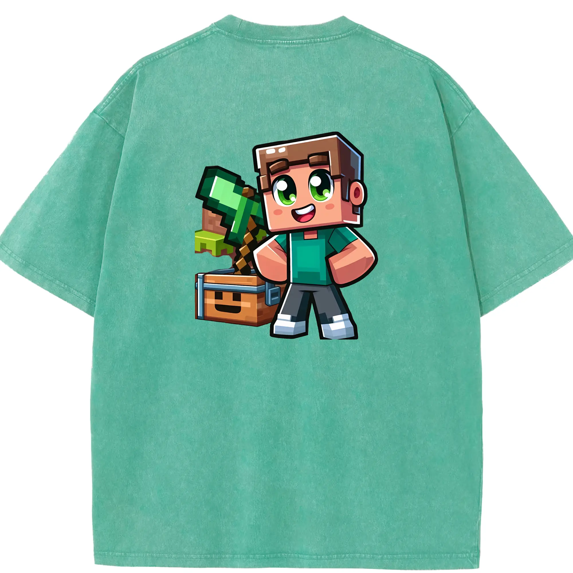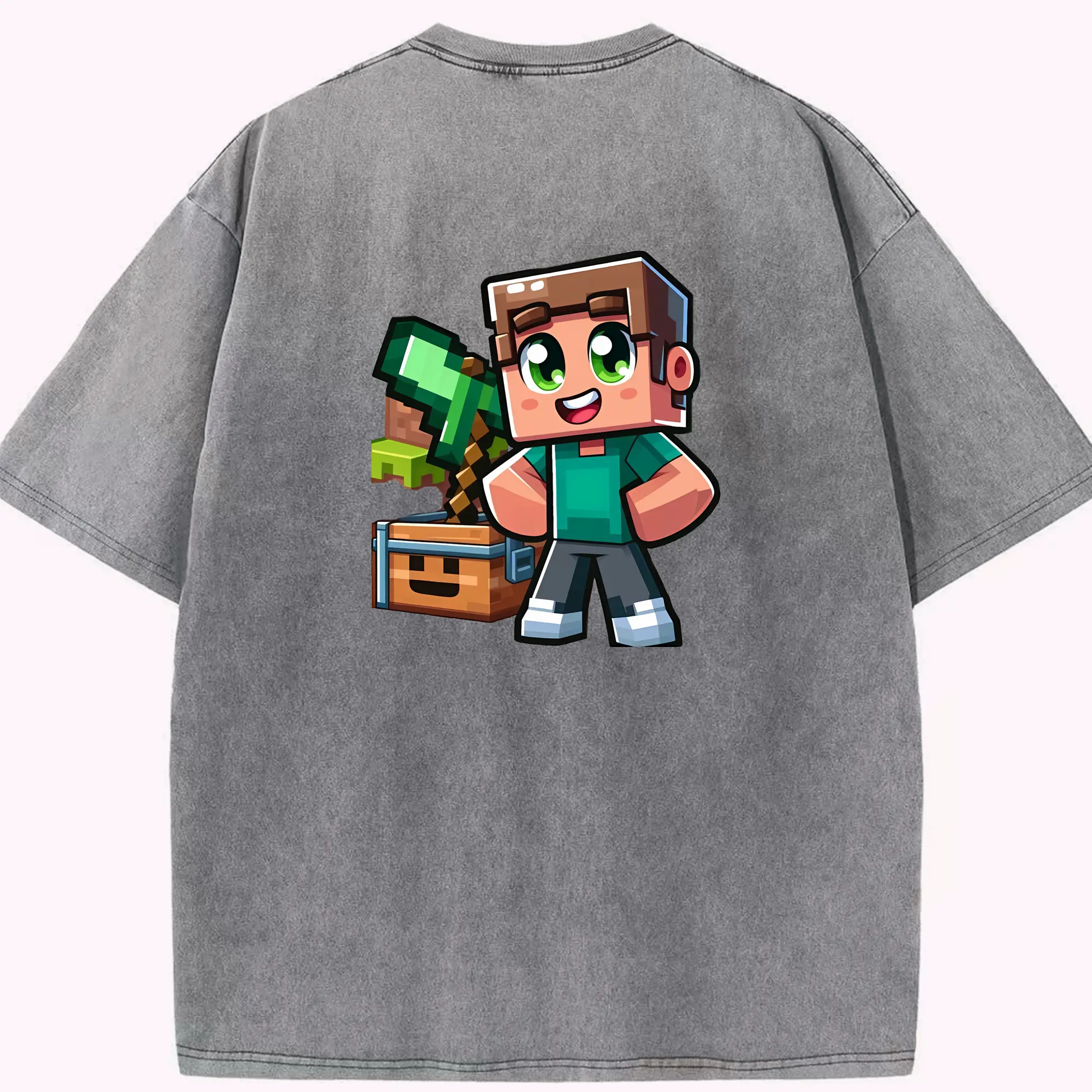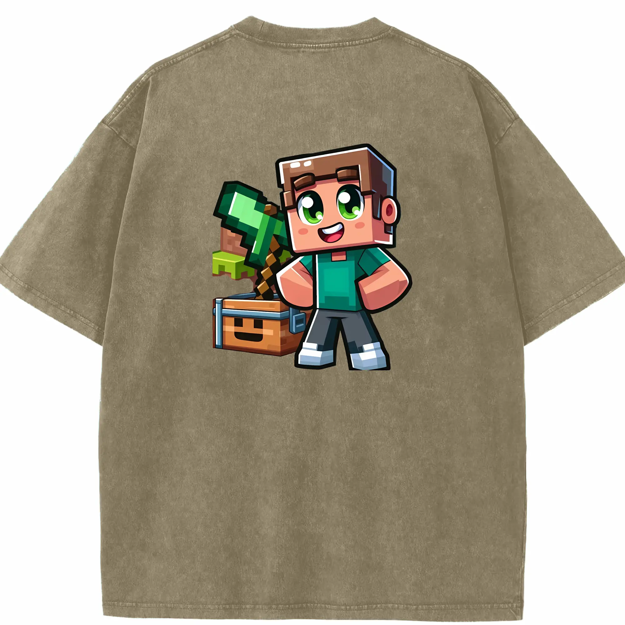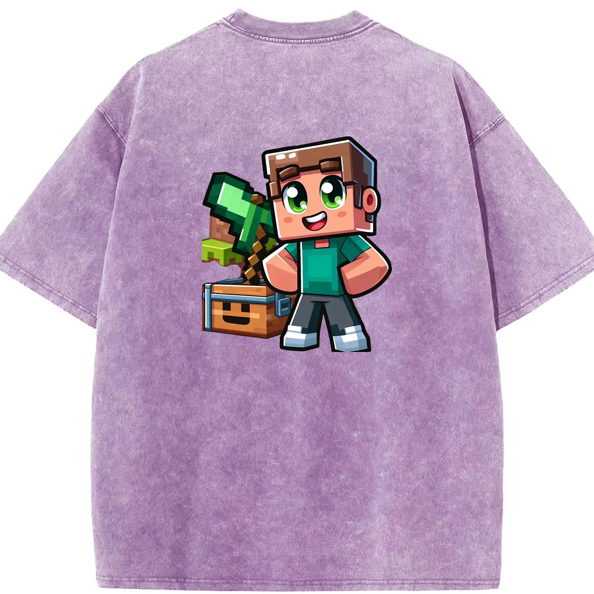 マイクラ グッズ マイクラ - 綿100% ヴィンテージ風 半袖Tシャツ ・ フロントプリント ・ 柔らか肌触り ・ 通気性 快適 ・ スポーツ カジュアル 外出用