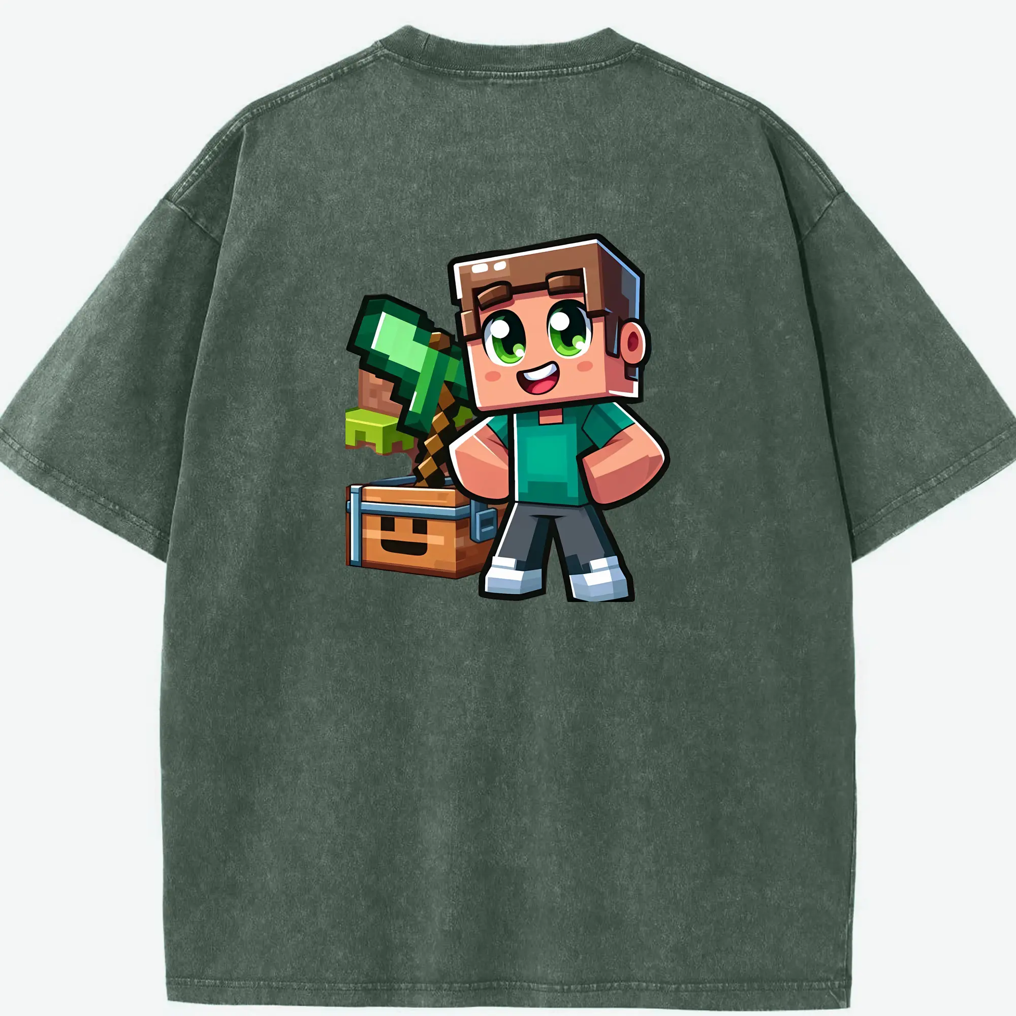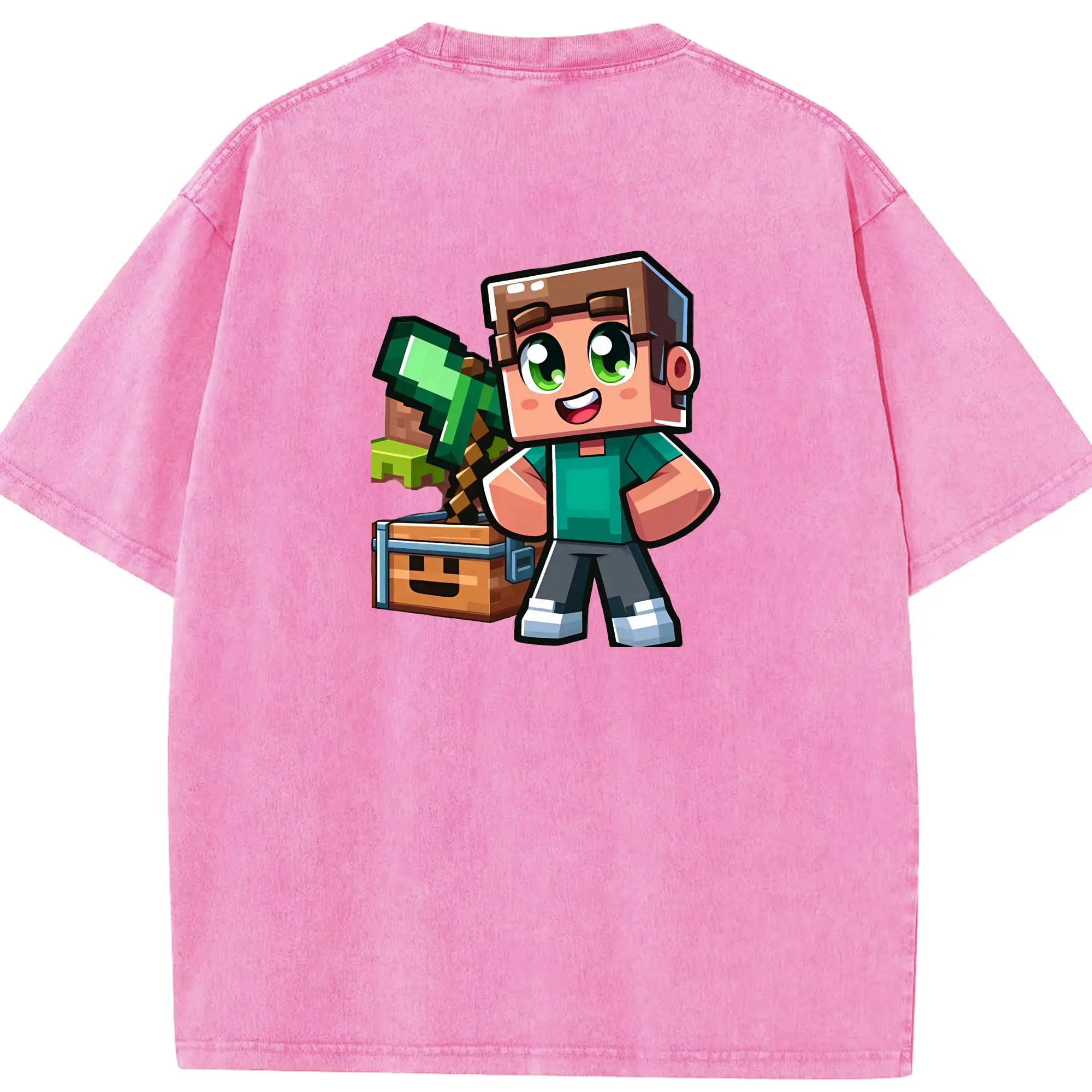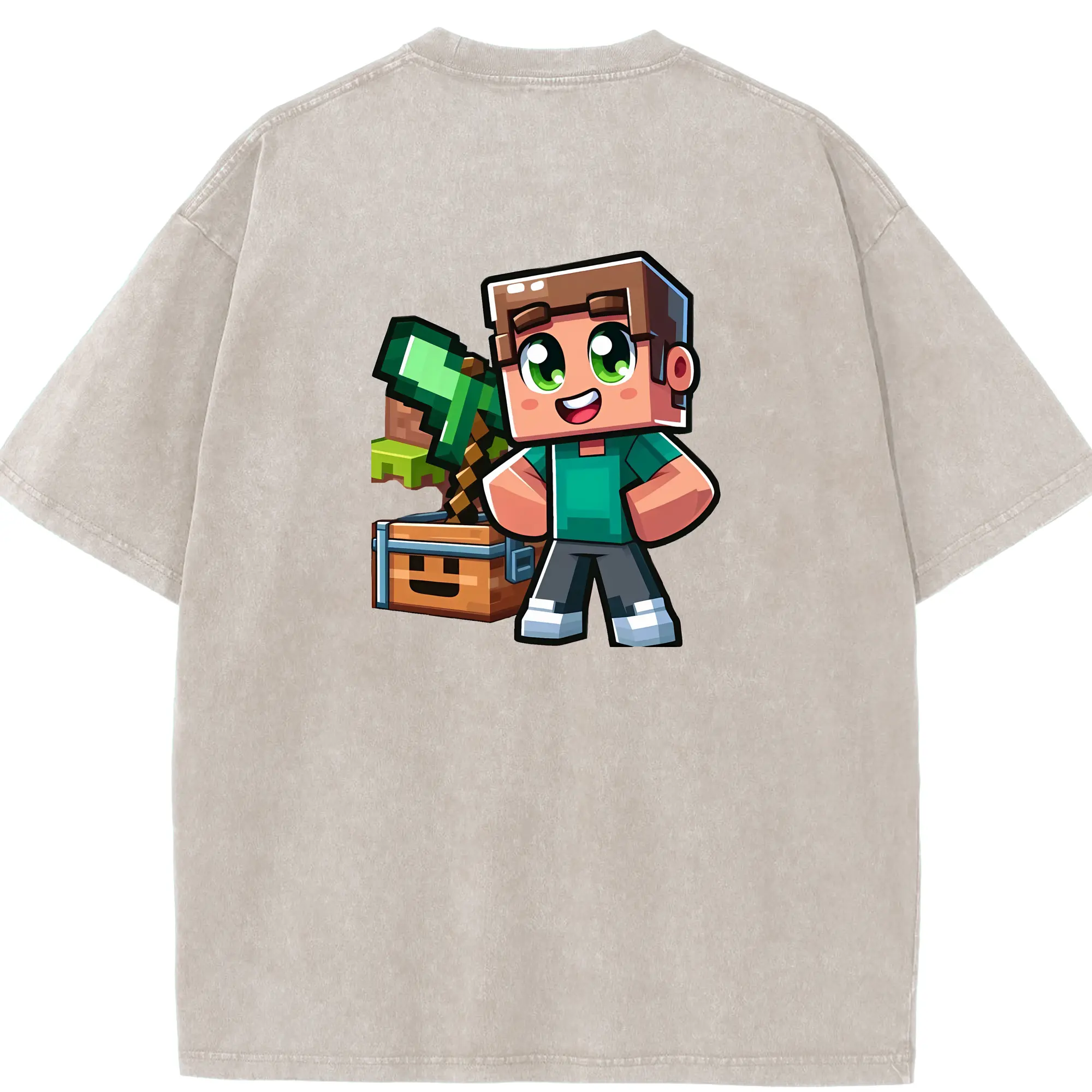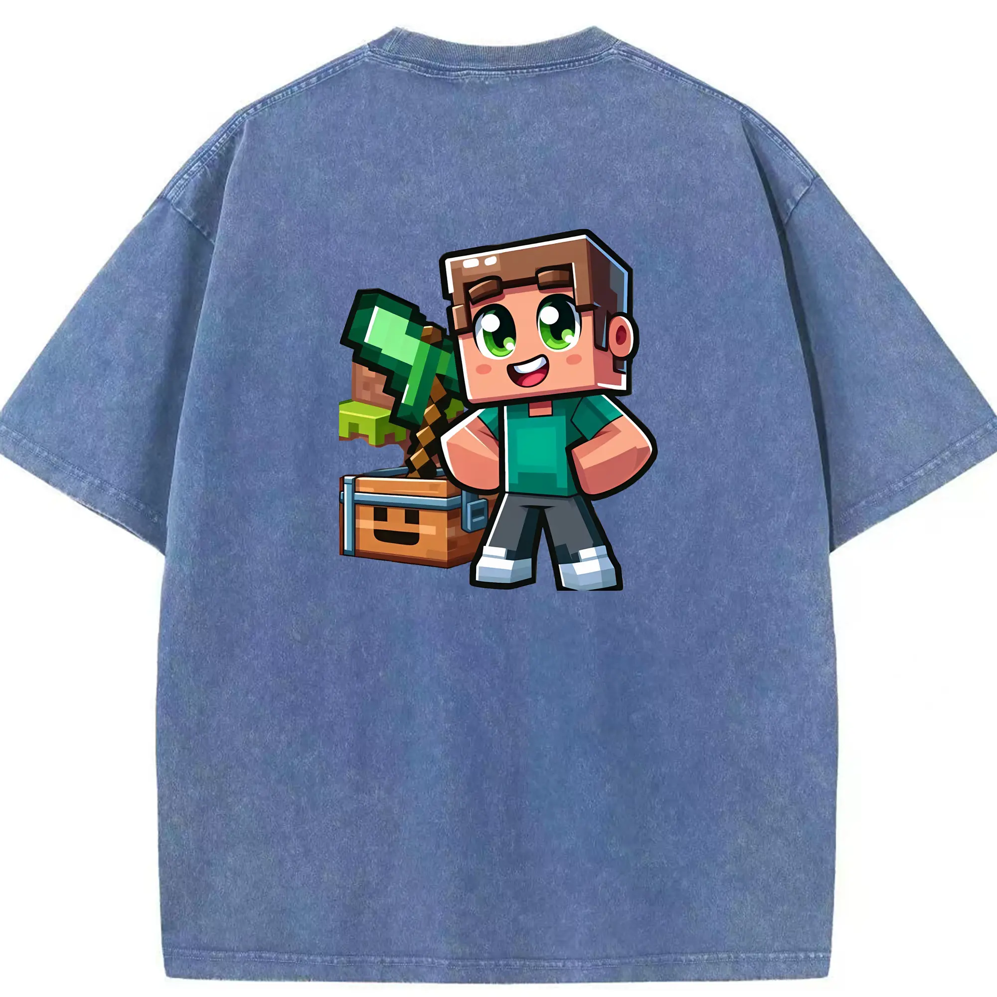 マイクラ グッズ マイクラ - 綿100% ヴィンテージ風 半袖Tシャツ ・ フロントプリント ・ 柔らか肌触り ・ 通気性 快適 ・ スポーツ カジュアル 外出用
