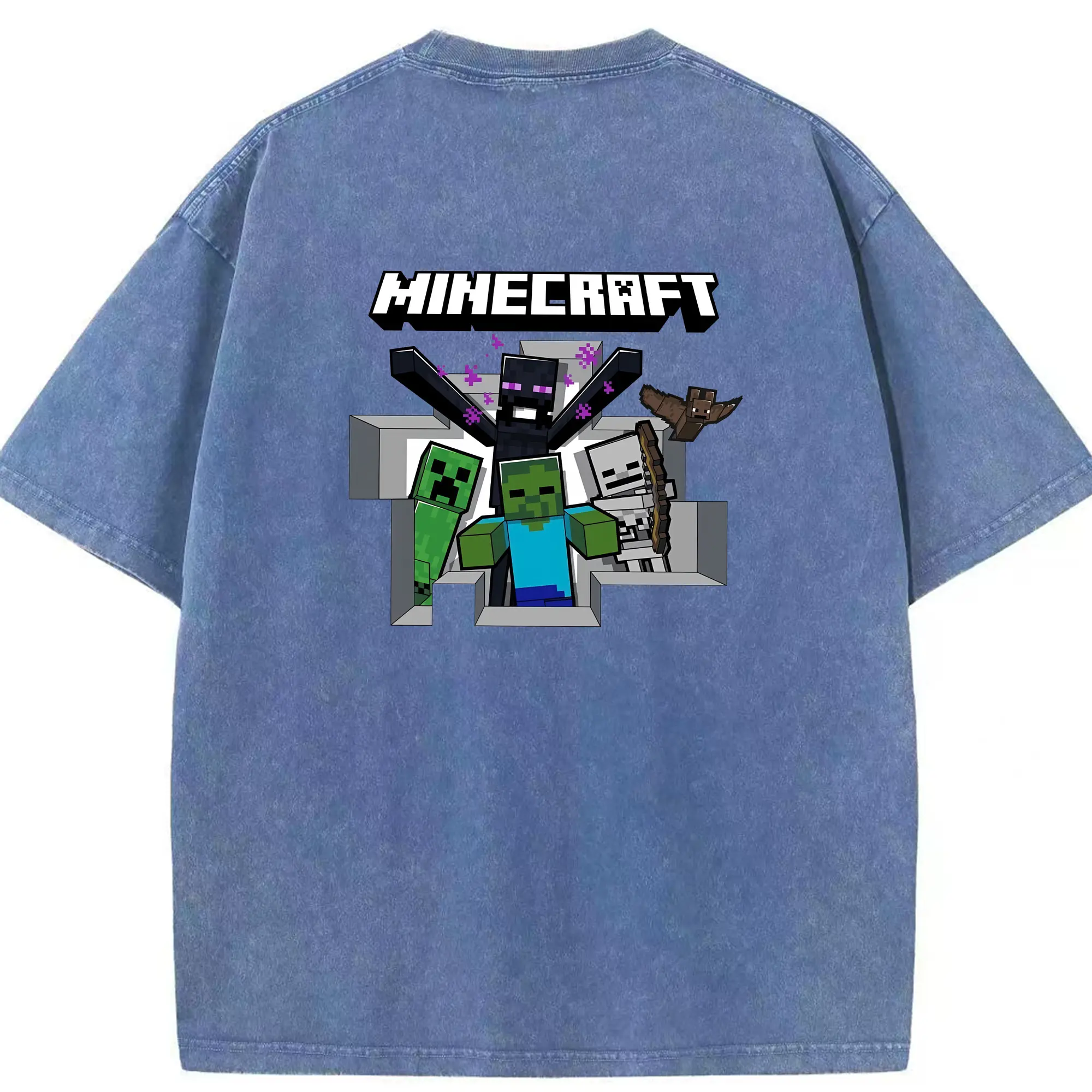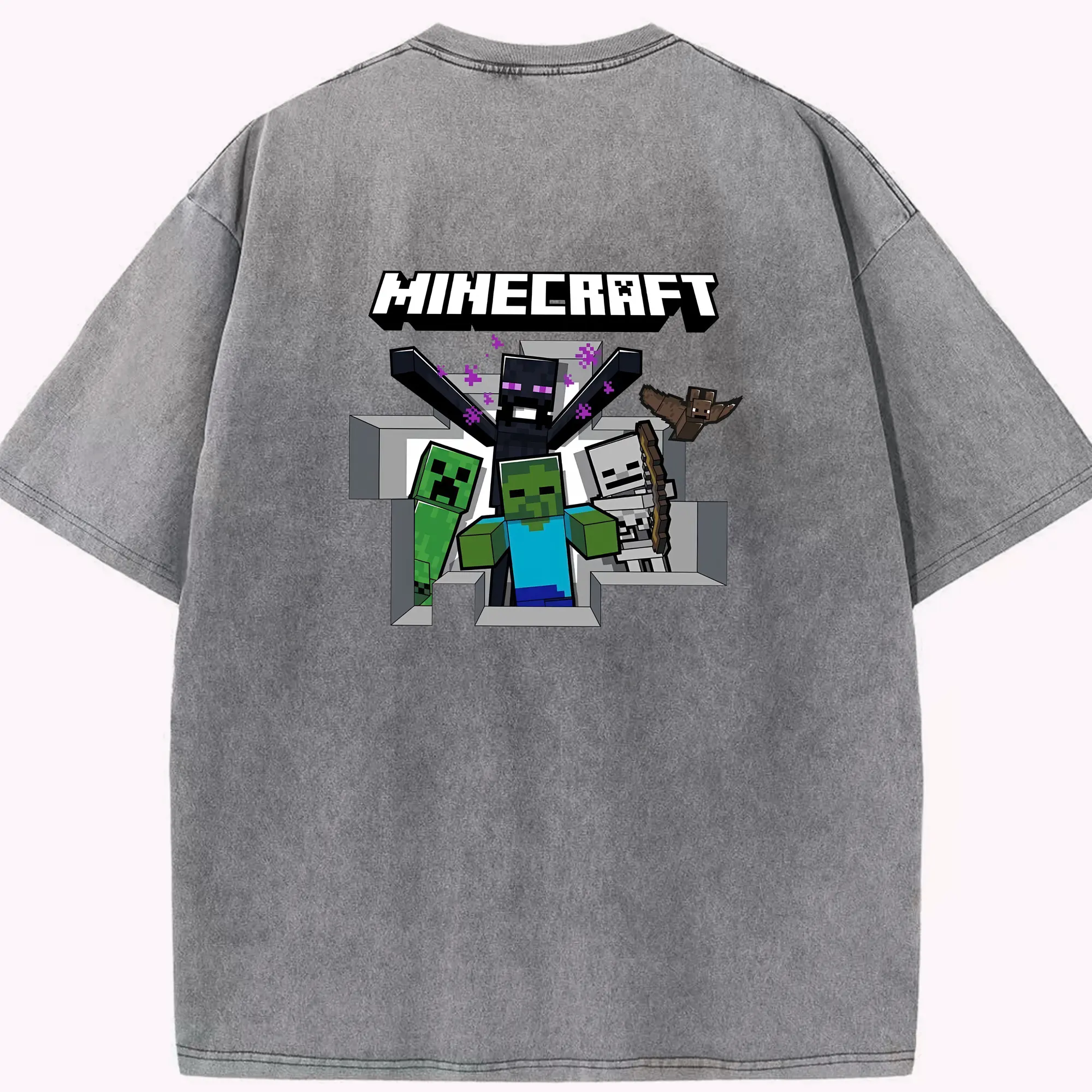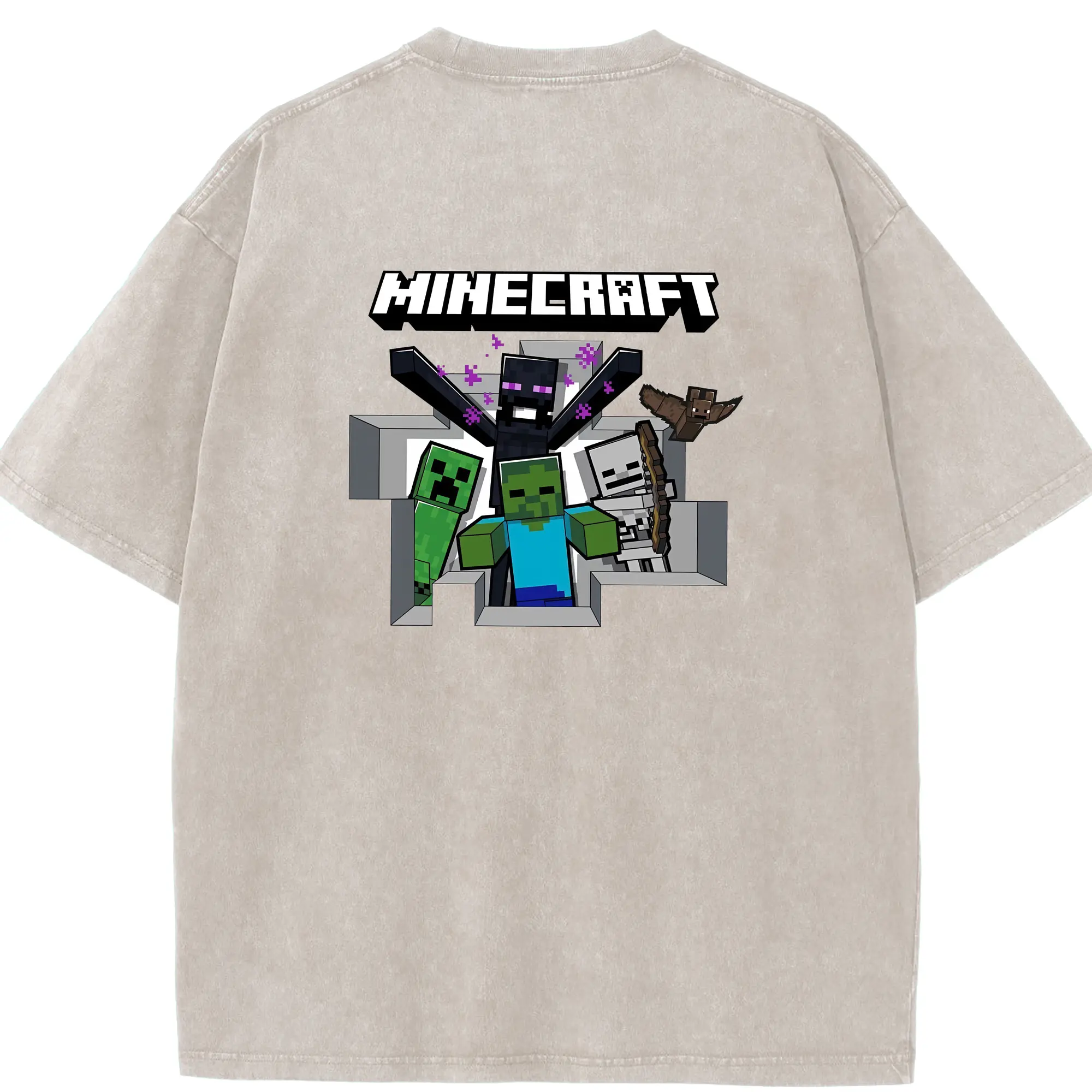 マイクラ グッズ マイクラ - 綿100% ヴィンテージ風 半袖Tシャツ ・ フロントプリント ・ 柔らか肌触り ・ 通気性 快適 ・ スポーツ カジュアル 外出用
