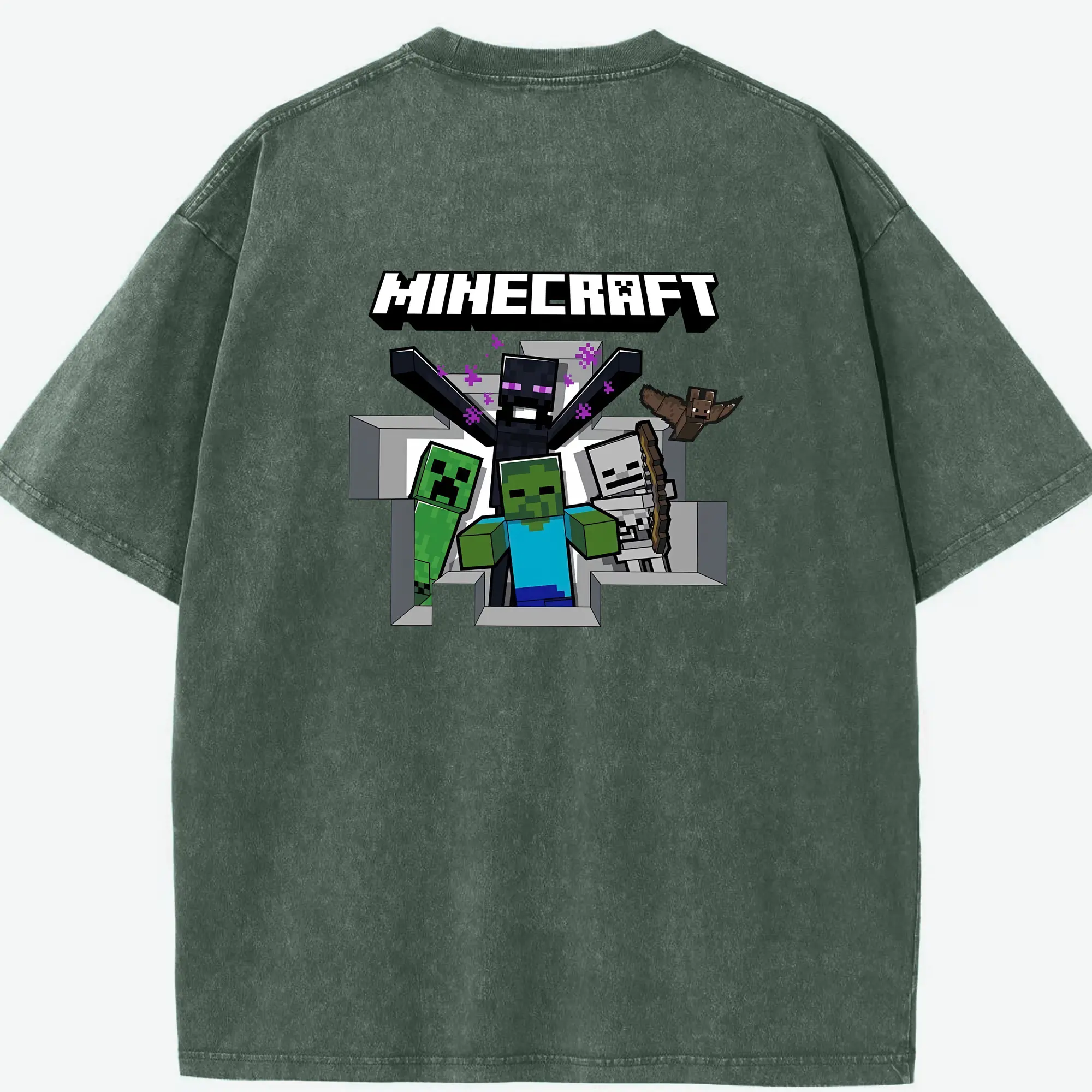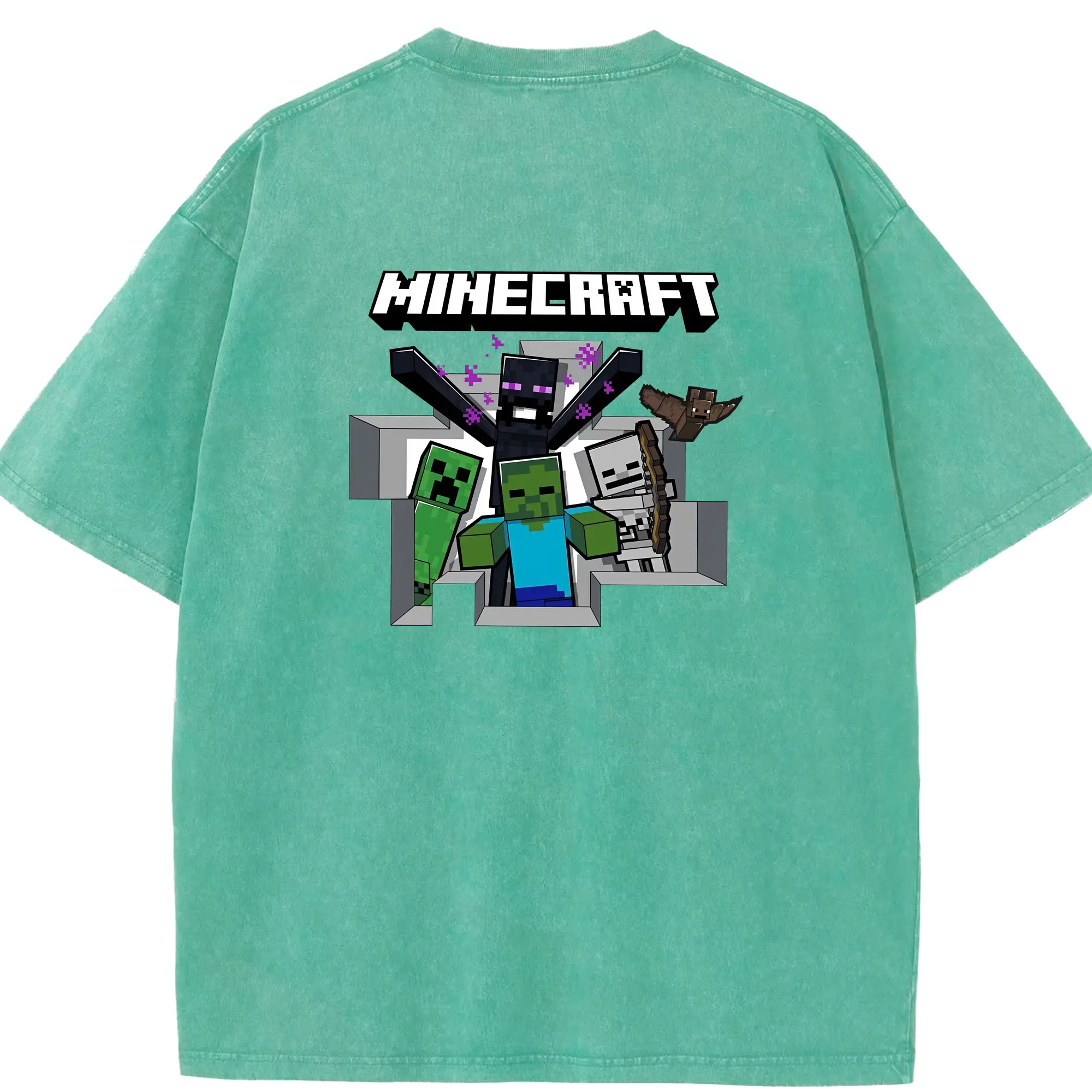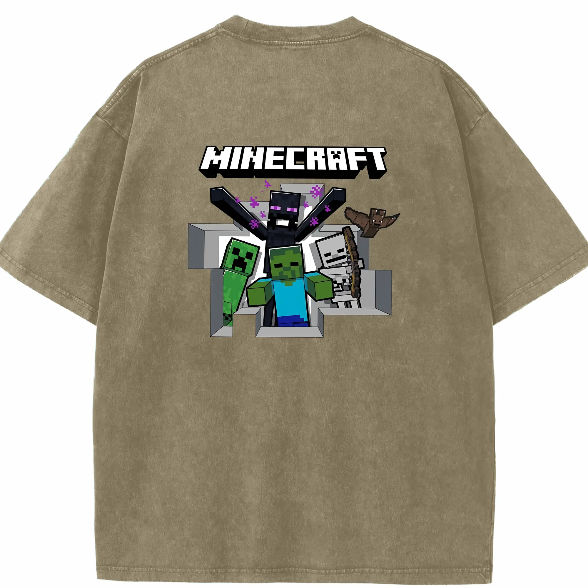 マイクラ グッズ マイクラ - 綿100% ヴィンテージ風 半袖Tシャツ ・ フロントプリント ・ 柔らか肌触り ・ 通気性 快適 ・ スポーツ カジュアル 外出用
