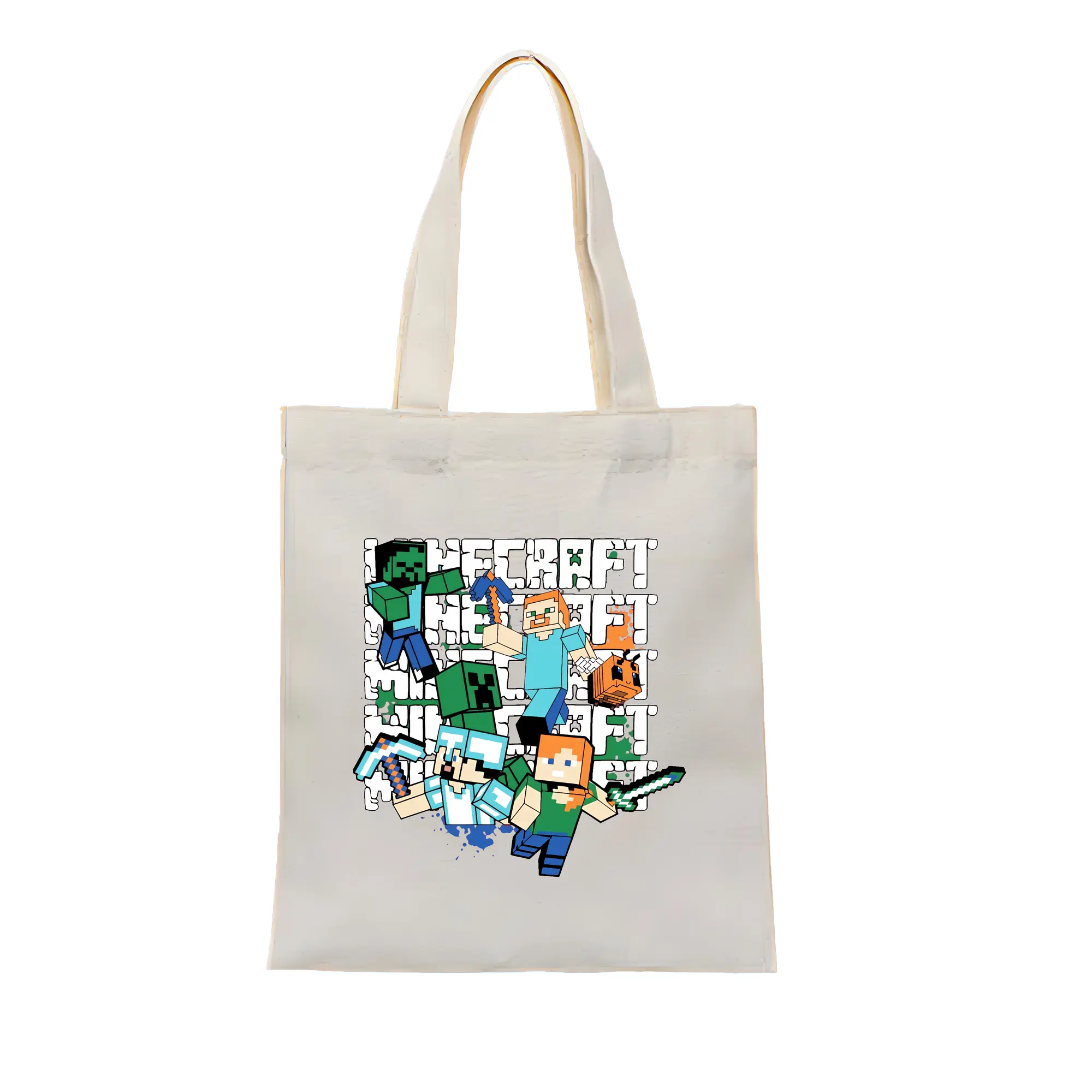 マイクラ グッズ マイクラ - 縦型キャンバス手提げバッグ(トートバッグ) ・ キャンバス素材 ・ ショッピング用 ・ 軽量 丈夫 お手入れ簡単
