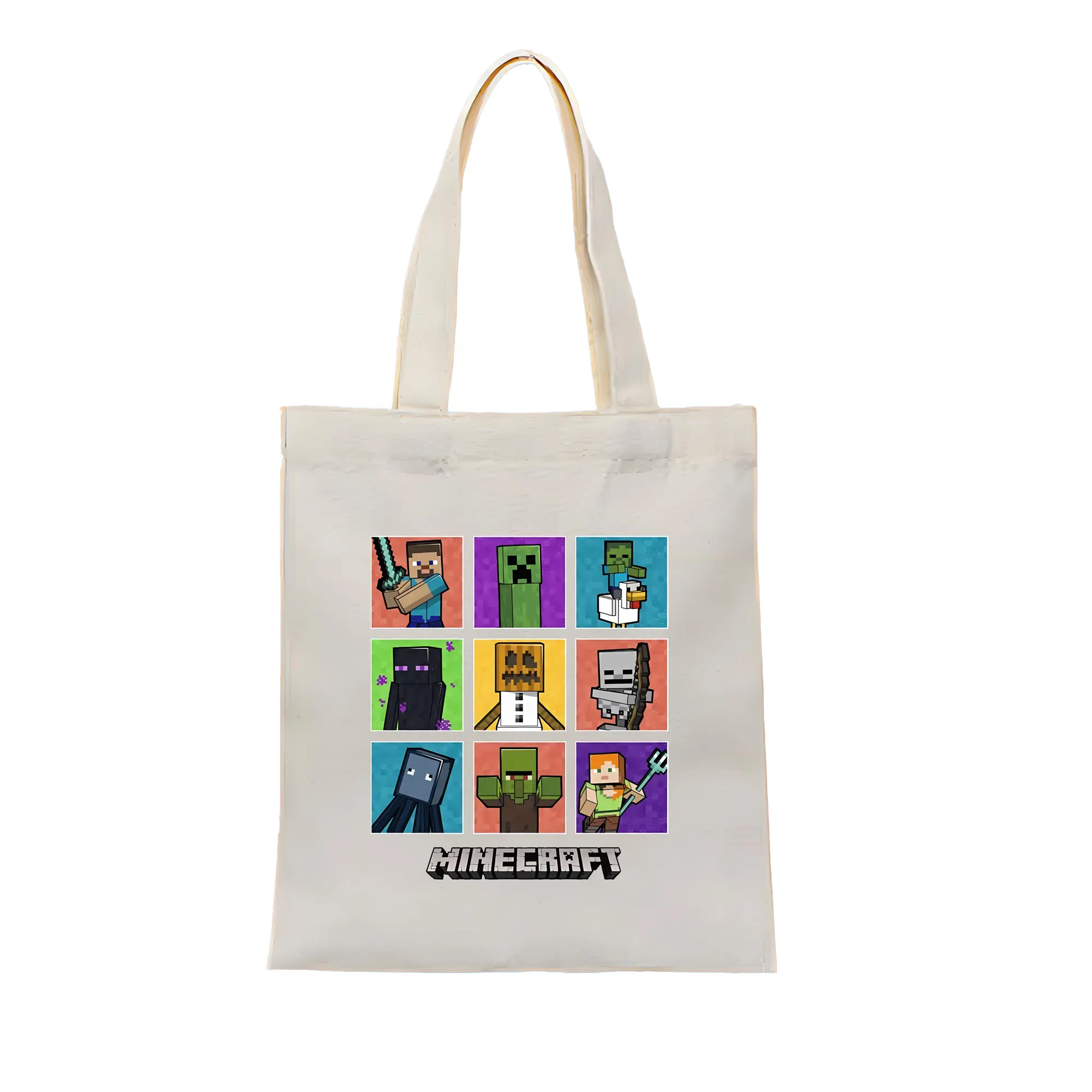 マイクラ グッズ マイクラ - 縦型キャンバス手提げバッグ(トートバッグ) ・ キャンバス素材 ・ ショッピング用 ・ 軽量 丈夫 お手入れ簡単