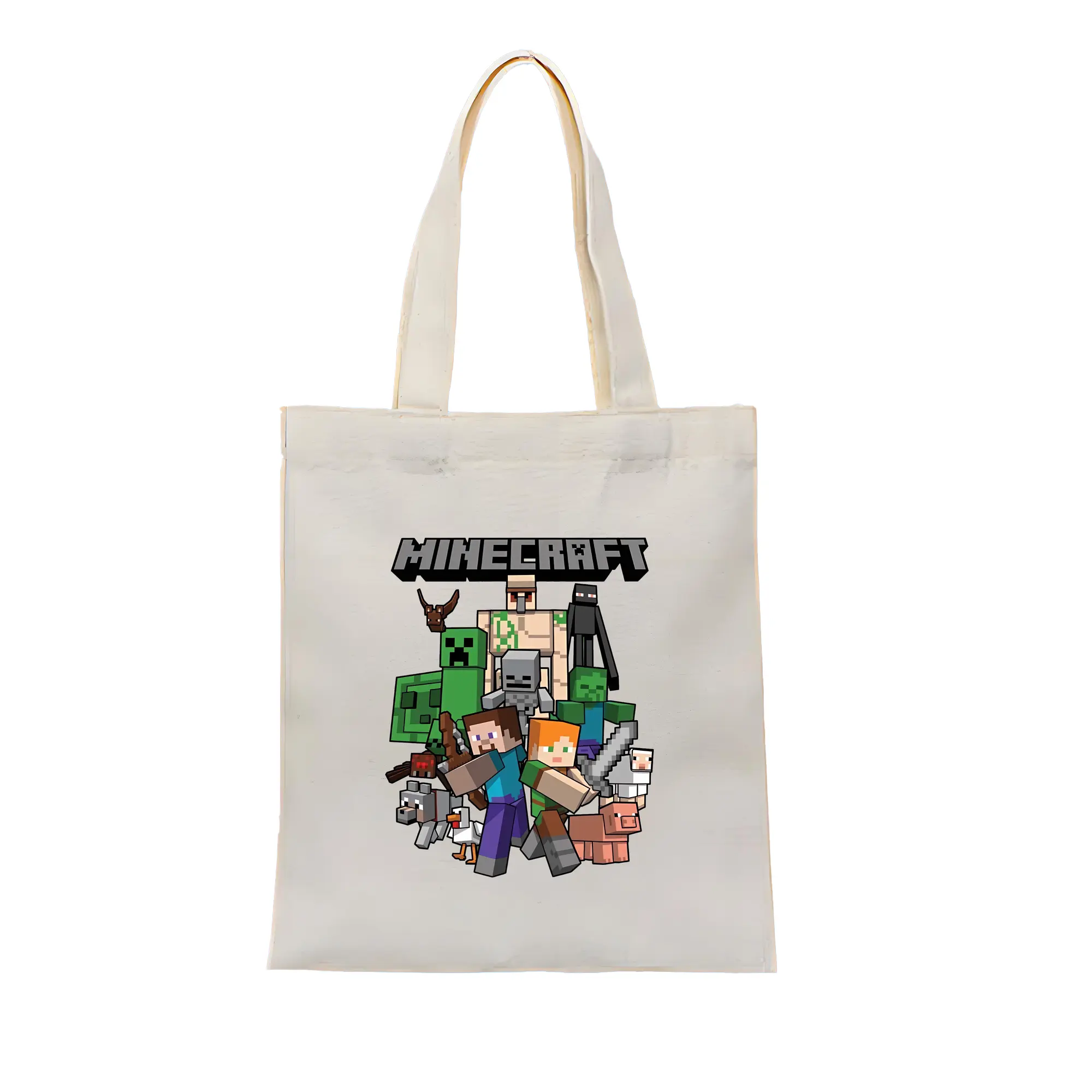 マイクラ グッズ マイクラ - 縦型キャンバス手提げバッグ(トートバッグ) ・ キャンバス素材 ・ ショッピング用 ・ 軽量 丈夫 お手入れ簡単
