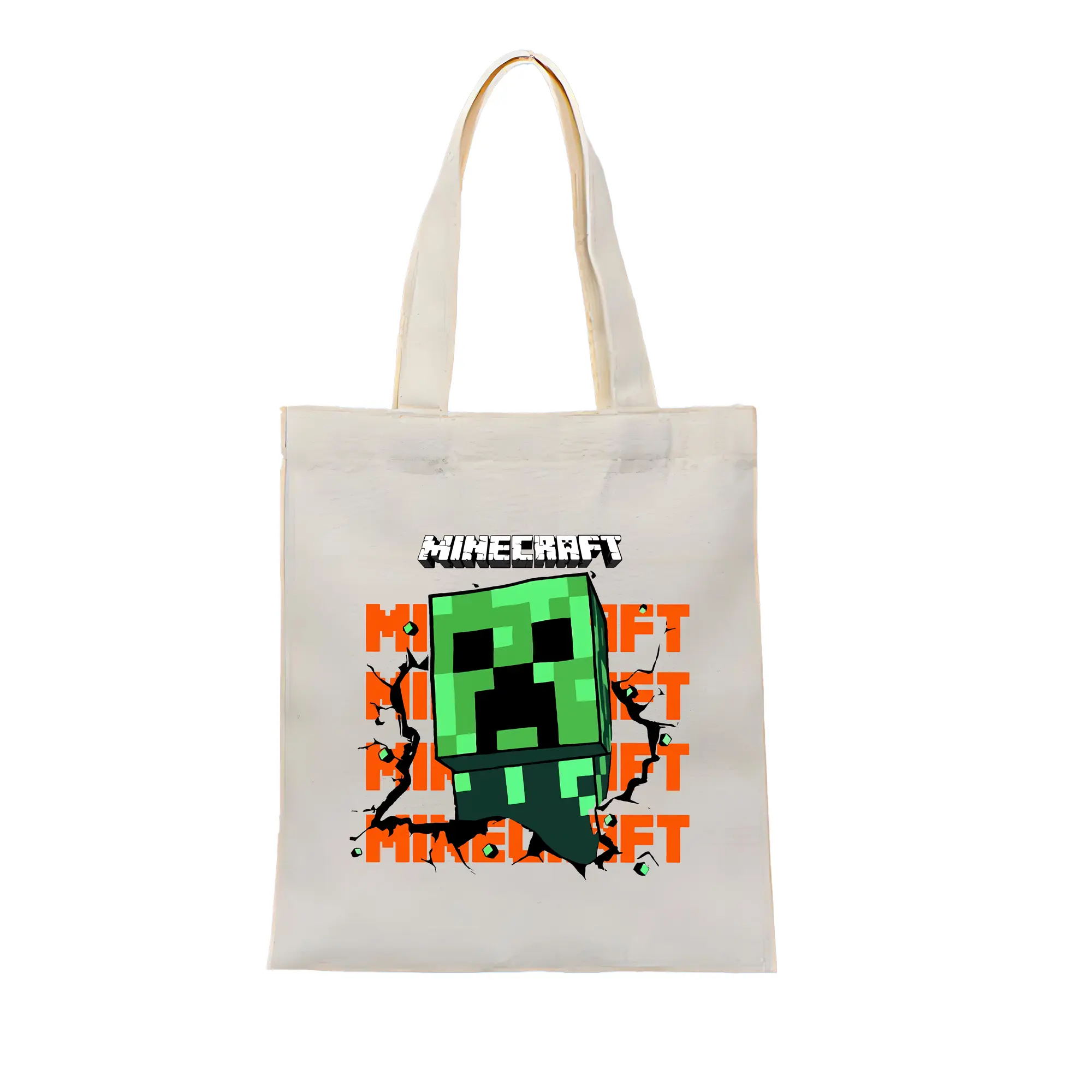 マイクラ グッズ マイクラ - 縦型キャンバス手提げバッグ(トートバッグ) ・ キャンバス素材 ・ ショッピング用 ・ 軽量 丈夫 お手入れ簡単