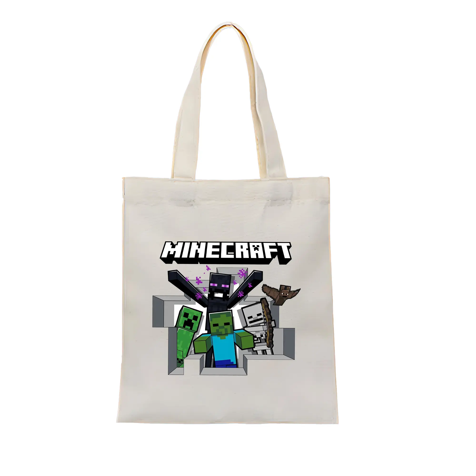 マイクラ グッズ マイクラ - 縦型キャンバス手提げバッグ(トートバッグ) ・ キャンバス素材 ・ ショッピング用 ・ 軽量 丈夫 お手入れ簡単