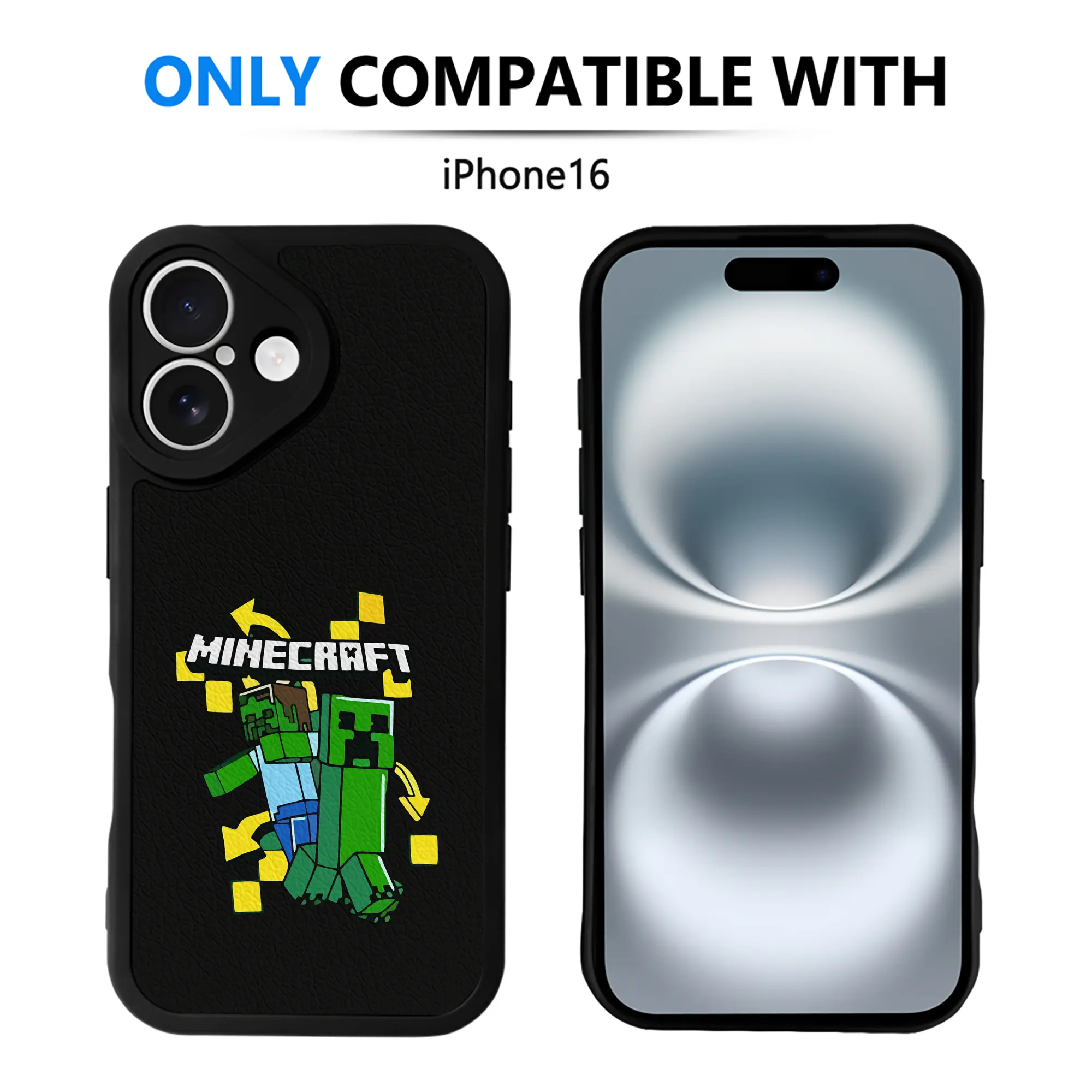 マイクラ グッズ マイクラ - IPhone 16シリーズ対応 ・ シリコンスマホケース ・ レザー調 ・ 高精度フィット ・ 耐衝撃 ・ ワイヤレス充電対応 ・ 精密カット