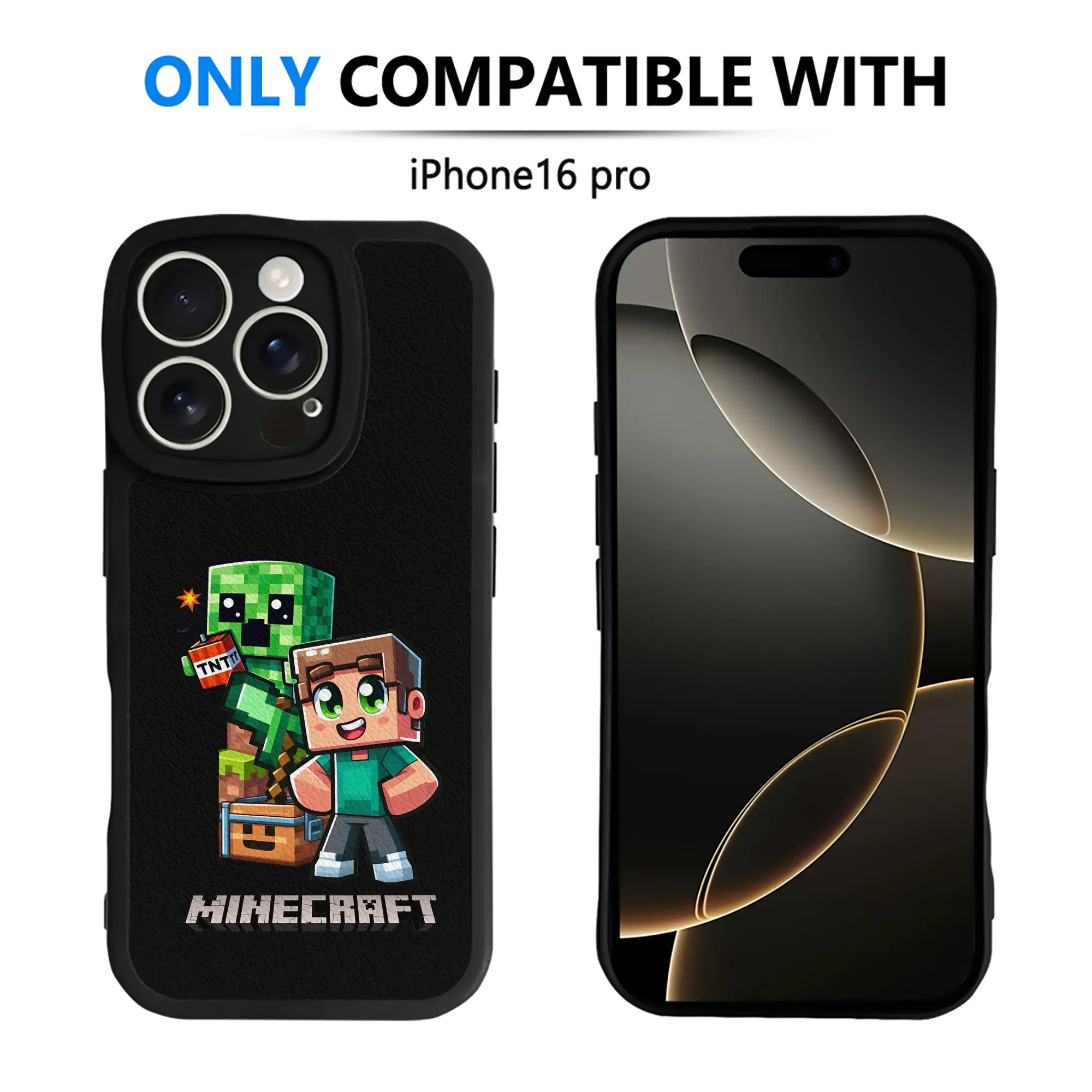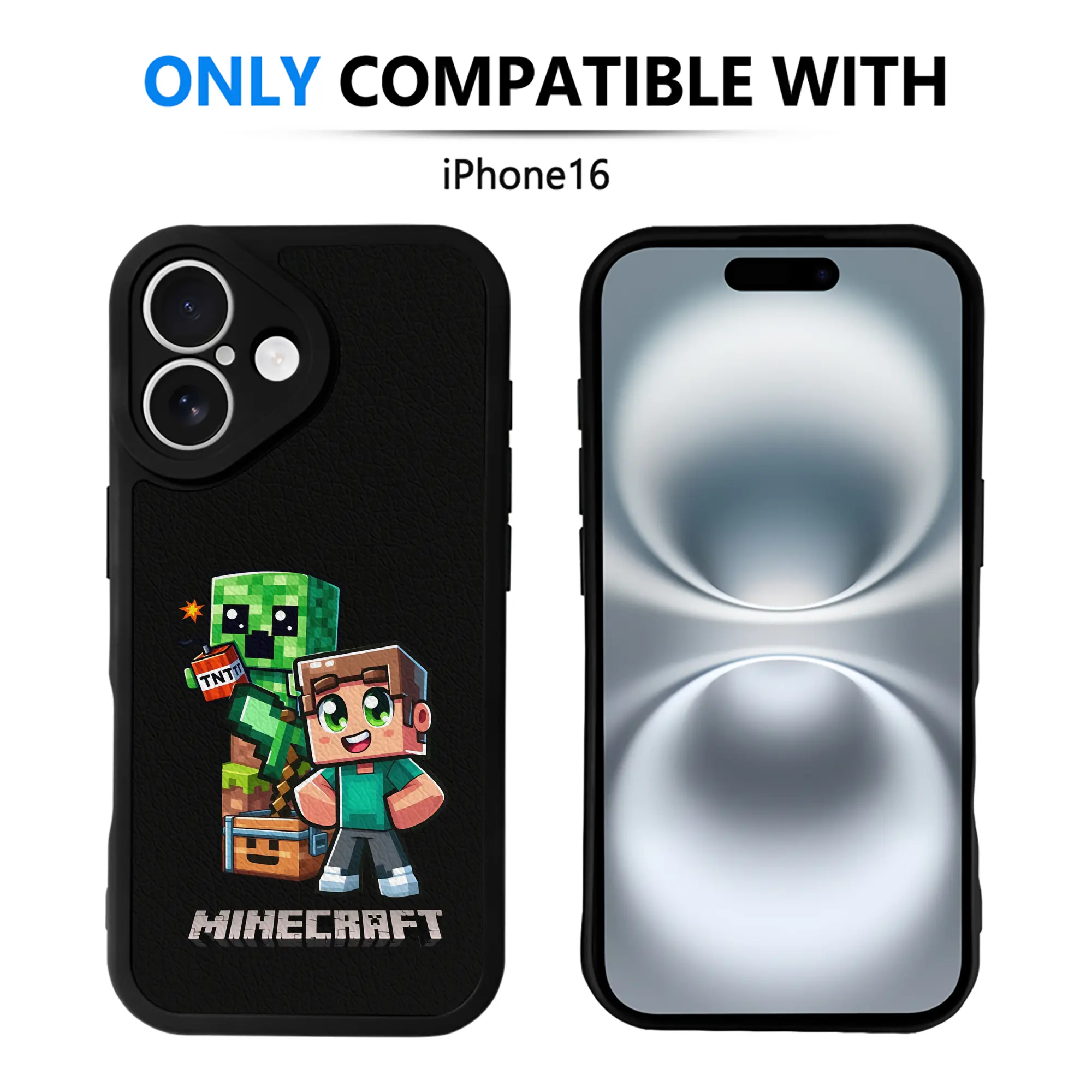 マイクラ グッズ マイクラ - IPhone 16シリーズ対応 ・ シリコンスマホケース ・ レザー調 ・ 高精度フィット ・ 耐衝撃 ・ ワイヤレス充電対応 ・ 精密カット