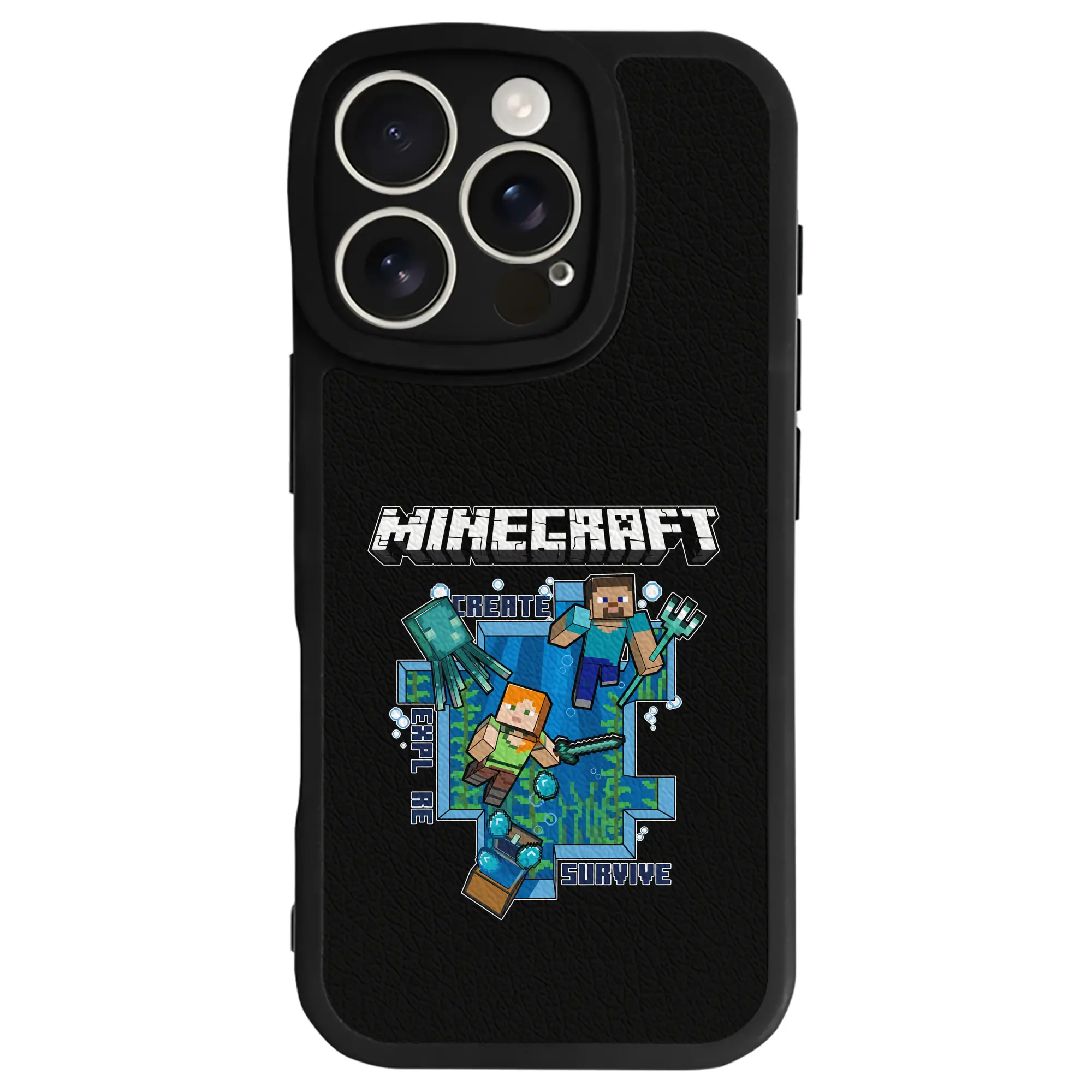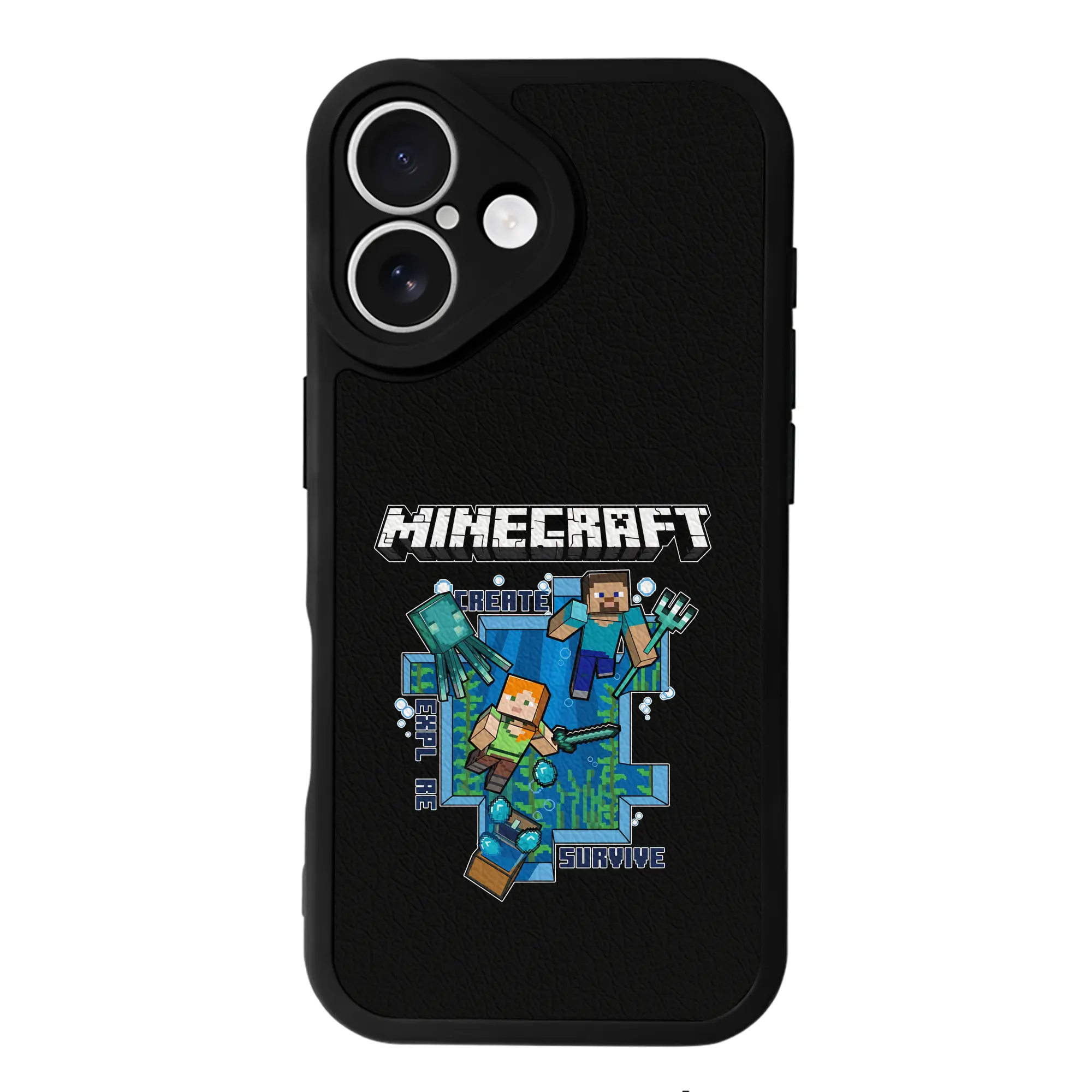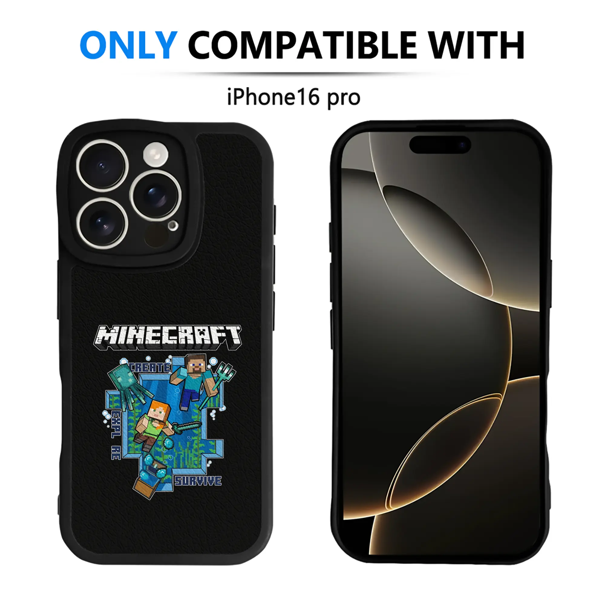 マイクラ グッズ マイクラ - IPhone 16シリーズ対応 ・ シリコンスマホケース ・ レザー調 ・ 高精度フィット ・ 耐衝撃 ・ ワイヤレス充電対応 ・ 精密カット