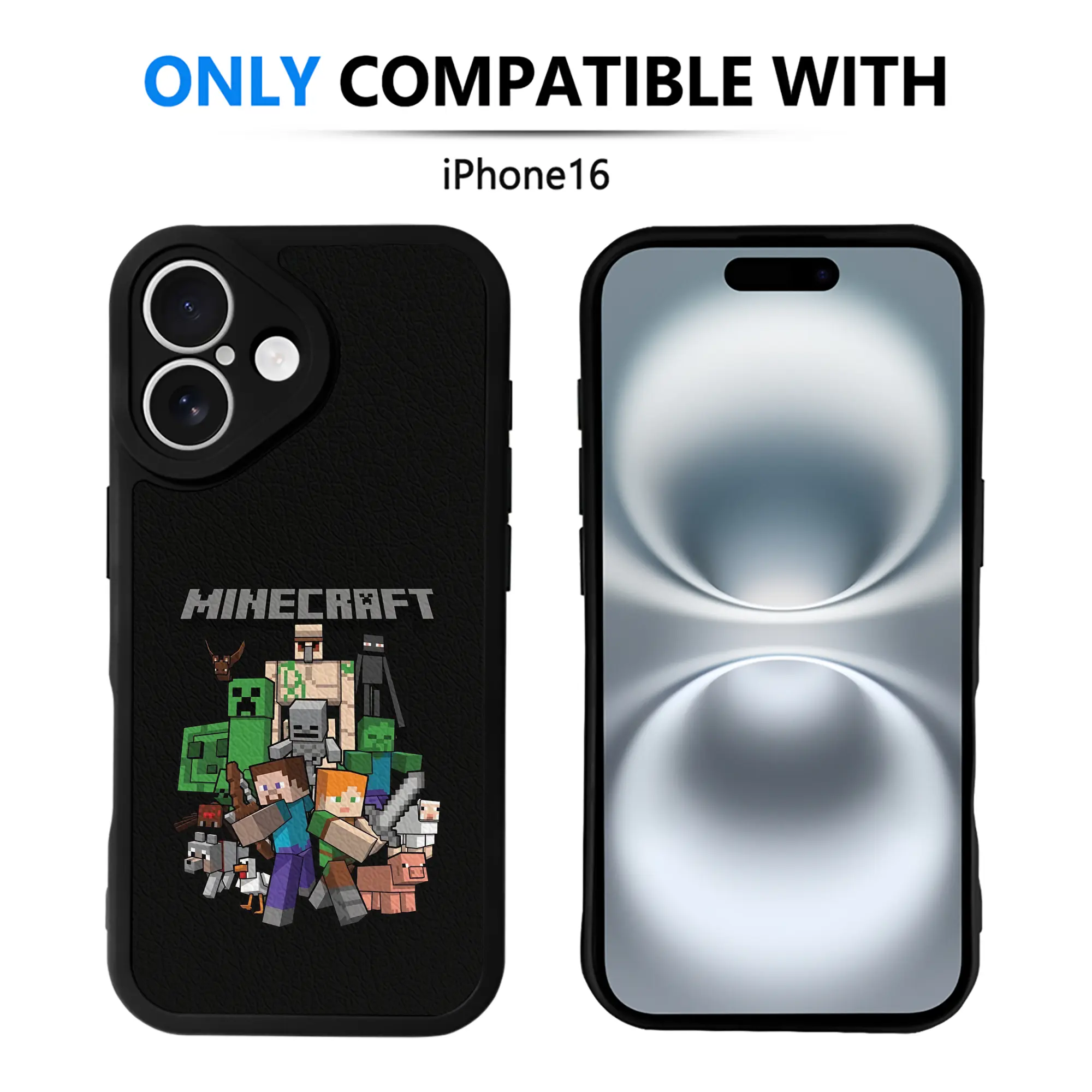 マイクラ グッズ マイクラ - IPhone 16シリーズ対応 ・ シリコンスマホケース ・ レザー調 ・ 高精度フィット ・ 耐衝撃 ・ ワイヤレス充電対応 ・ 精密カット