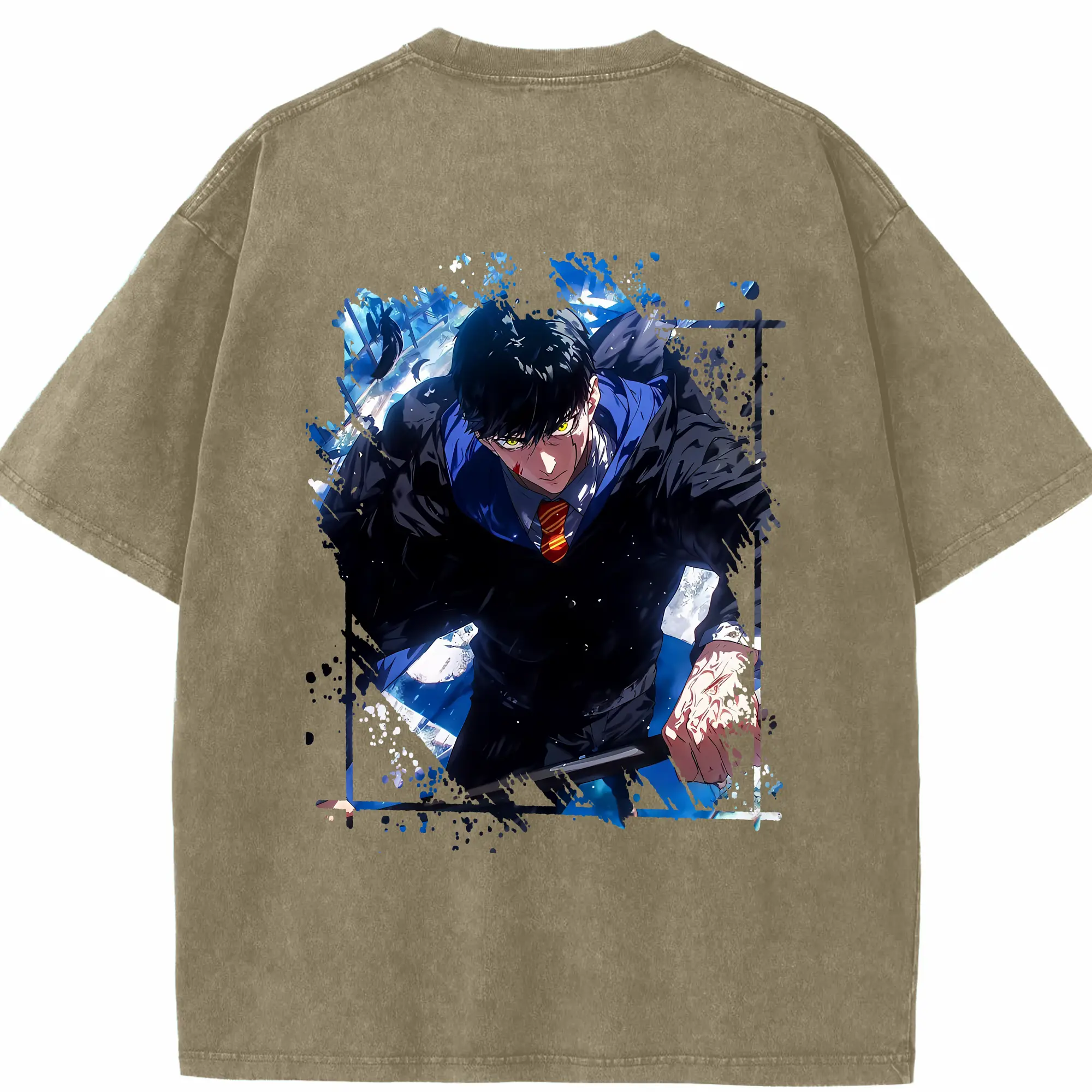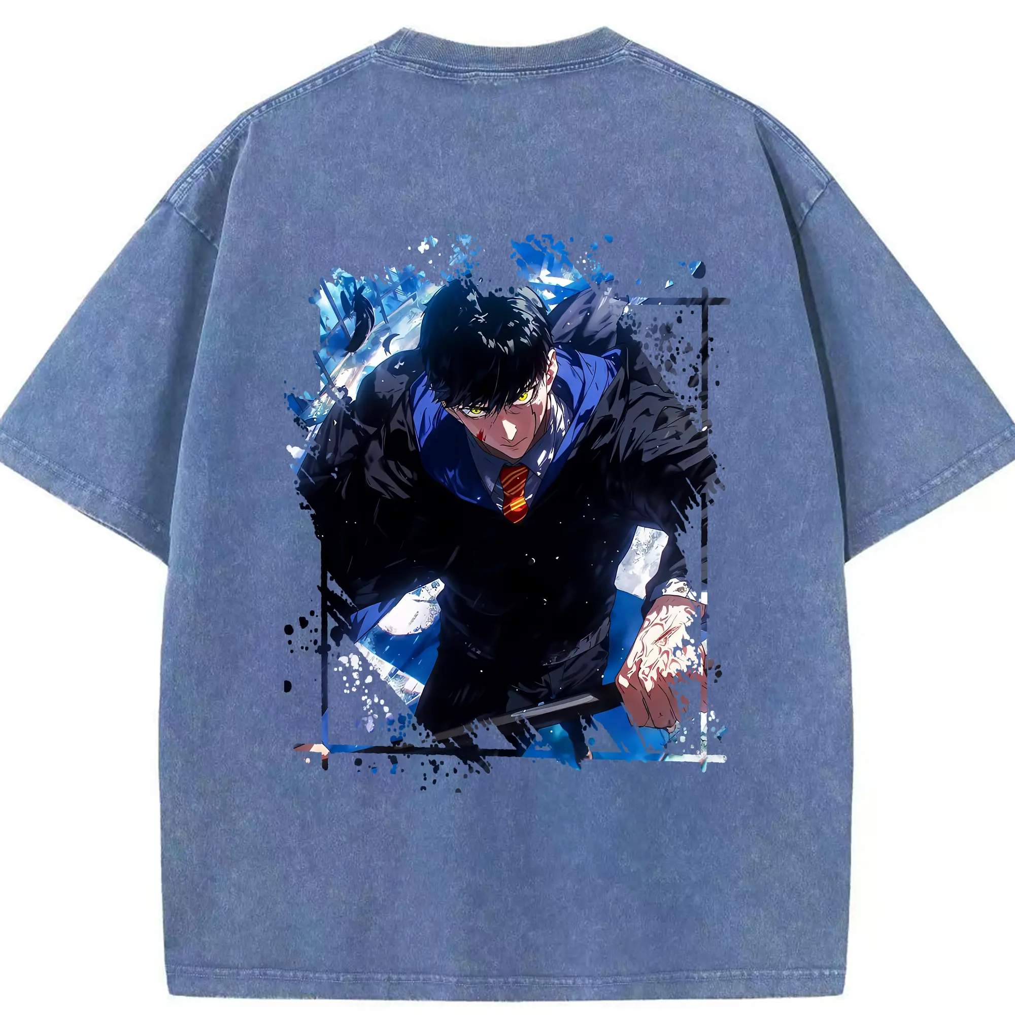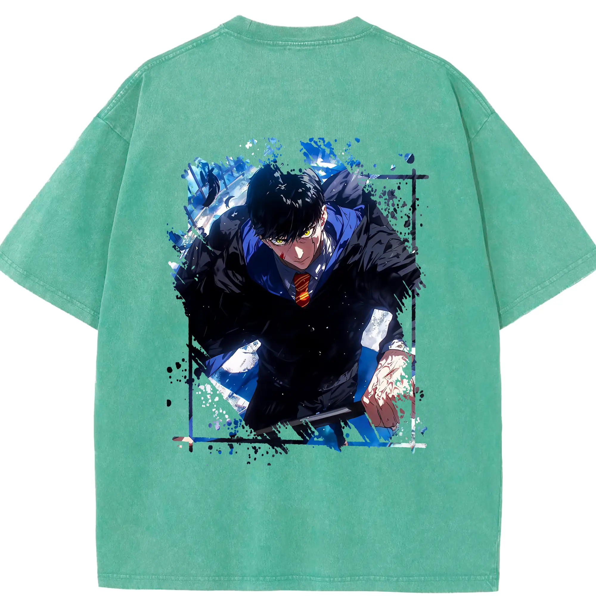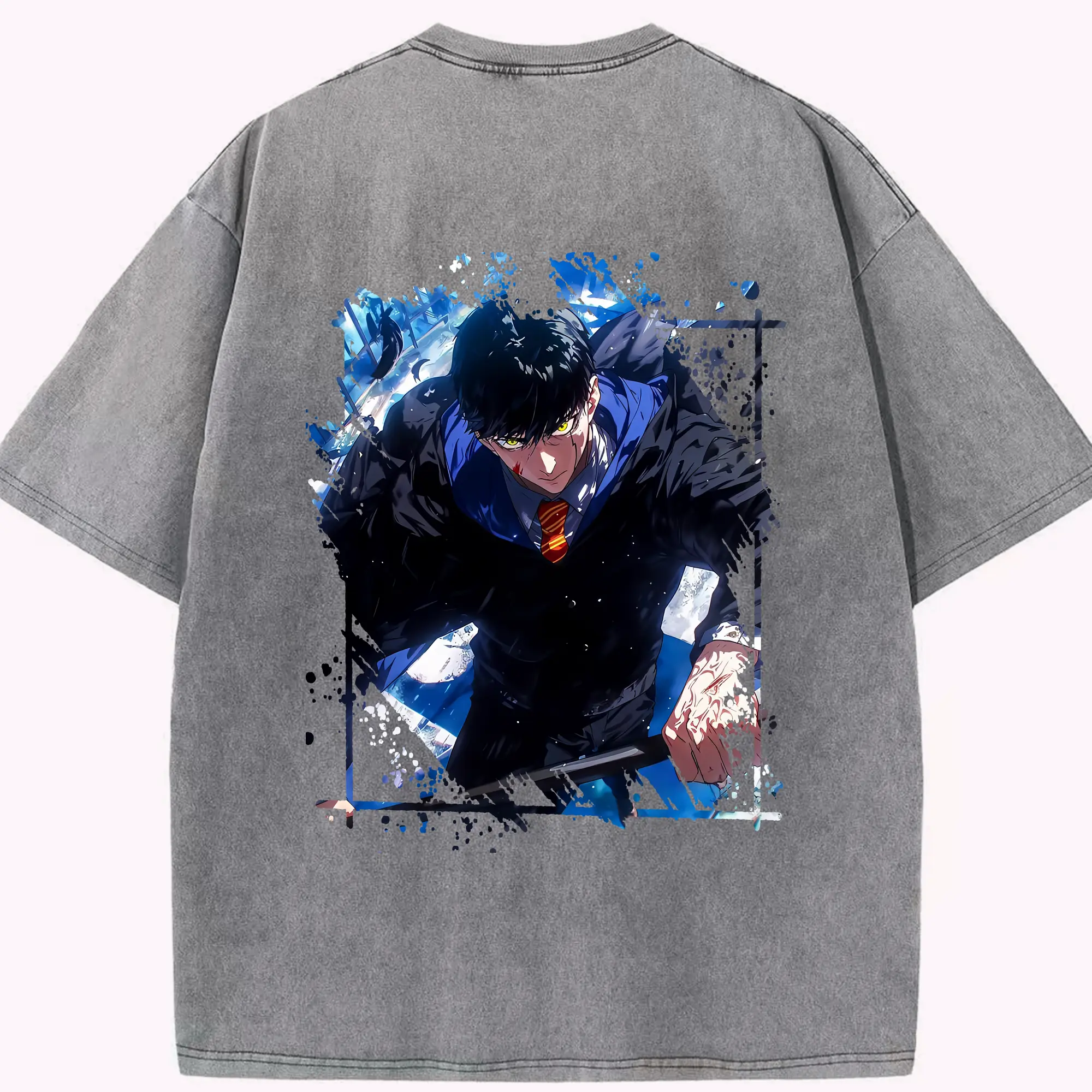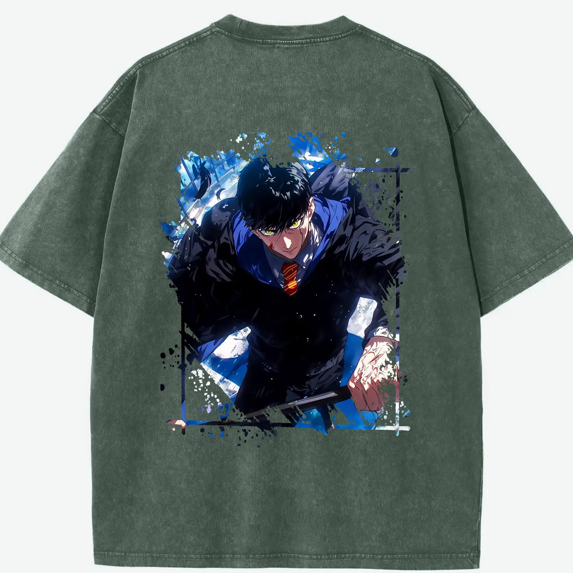 あんさん ぶる グッズ UNDEAD 羽風薫 - 綿100% ヴィンテージ風 半袖Tシャツ ・ 背面プリント ・ 柔らか肌触り ・ 通気性 快適 ・ スポーツ カジュアル 外出用