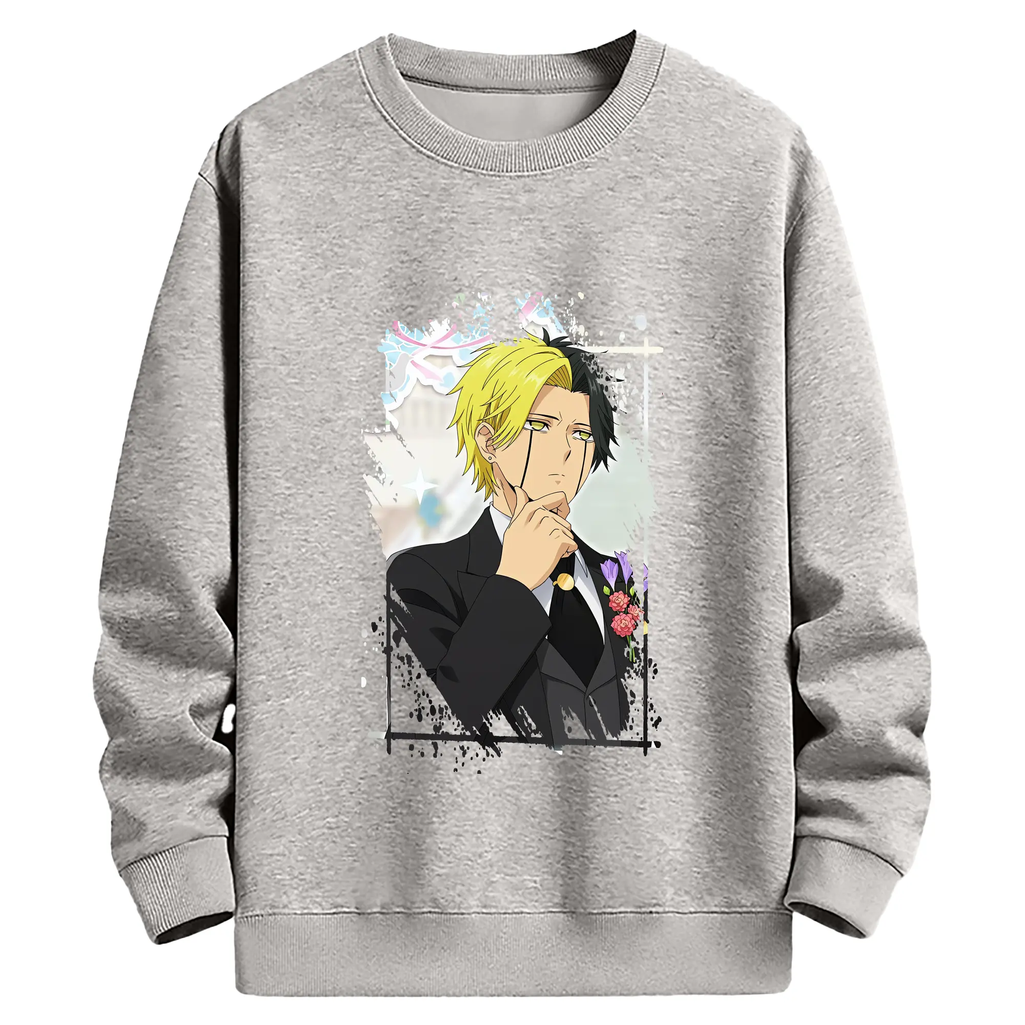 フェアリーテイル グッズ グレイ・フルバスター - 高品質 クルーネック スウェット ・ コットン59% ポリエステル41% ・ ユニセックス 長袖 トレーナー ・ カジュアル デイリー スポーツ 散歩用