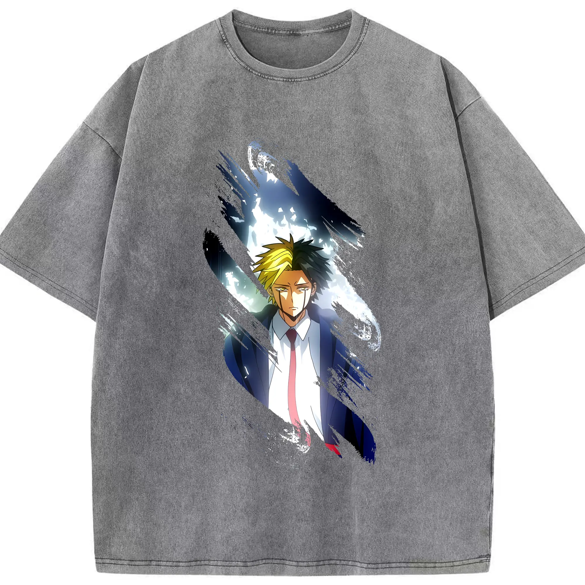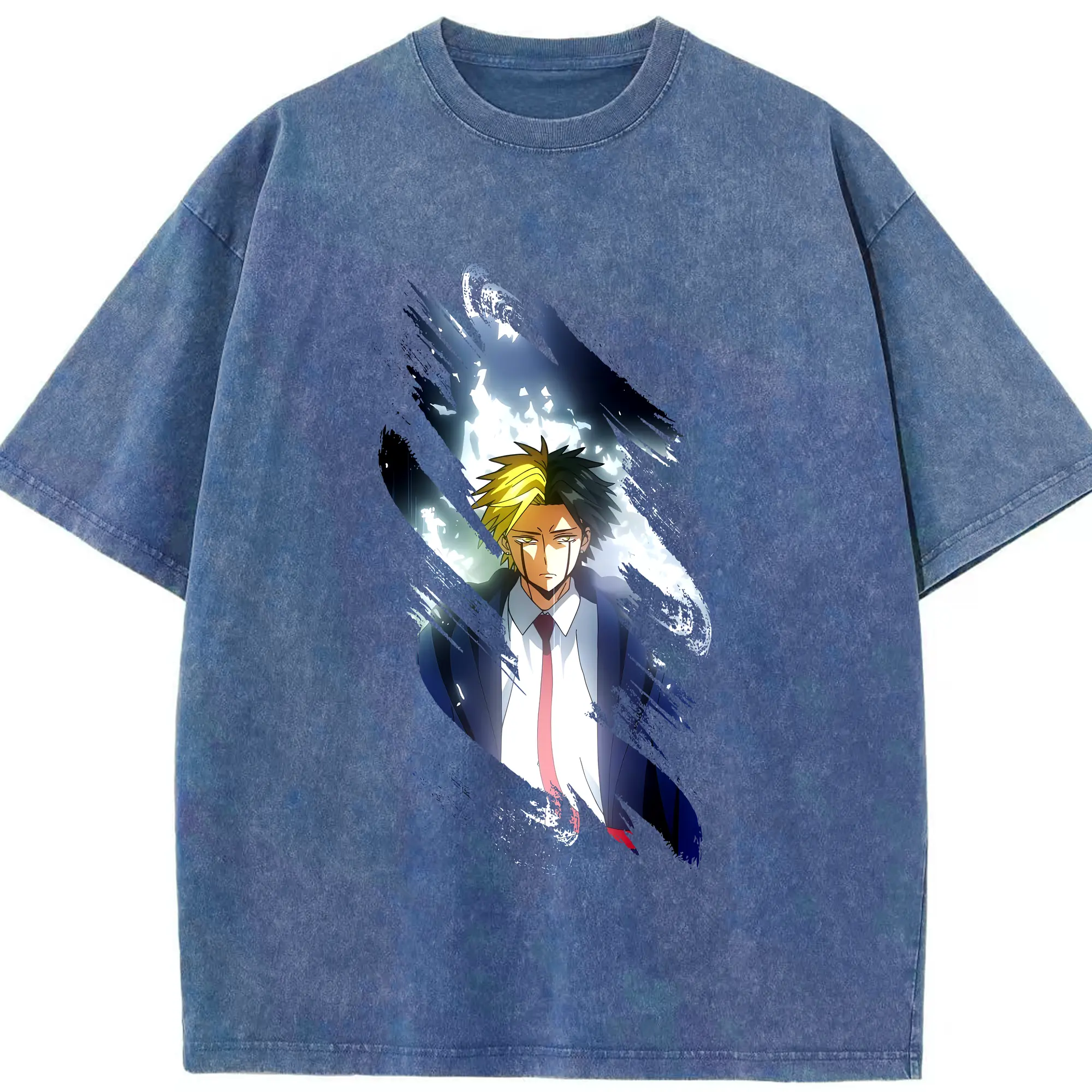 あんさん ぶる グッズ 流星隊 守沢千秋 - 綿100% ヴィンテージ風 半袖Tシャツ ・ フロントプリント ・ 柔らか肌触り ・ 通気性 快適 ・ スポーツ カジュアル 外出用
