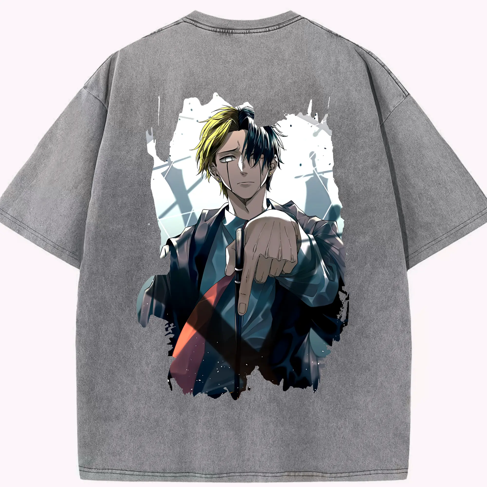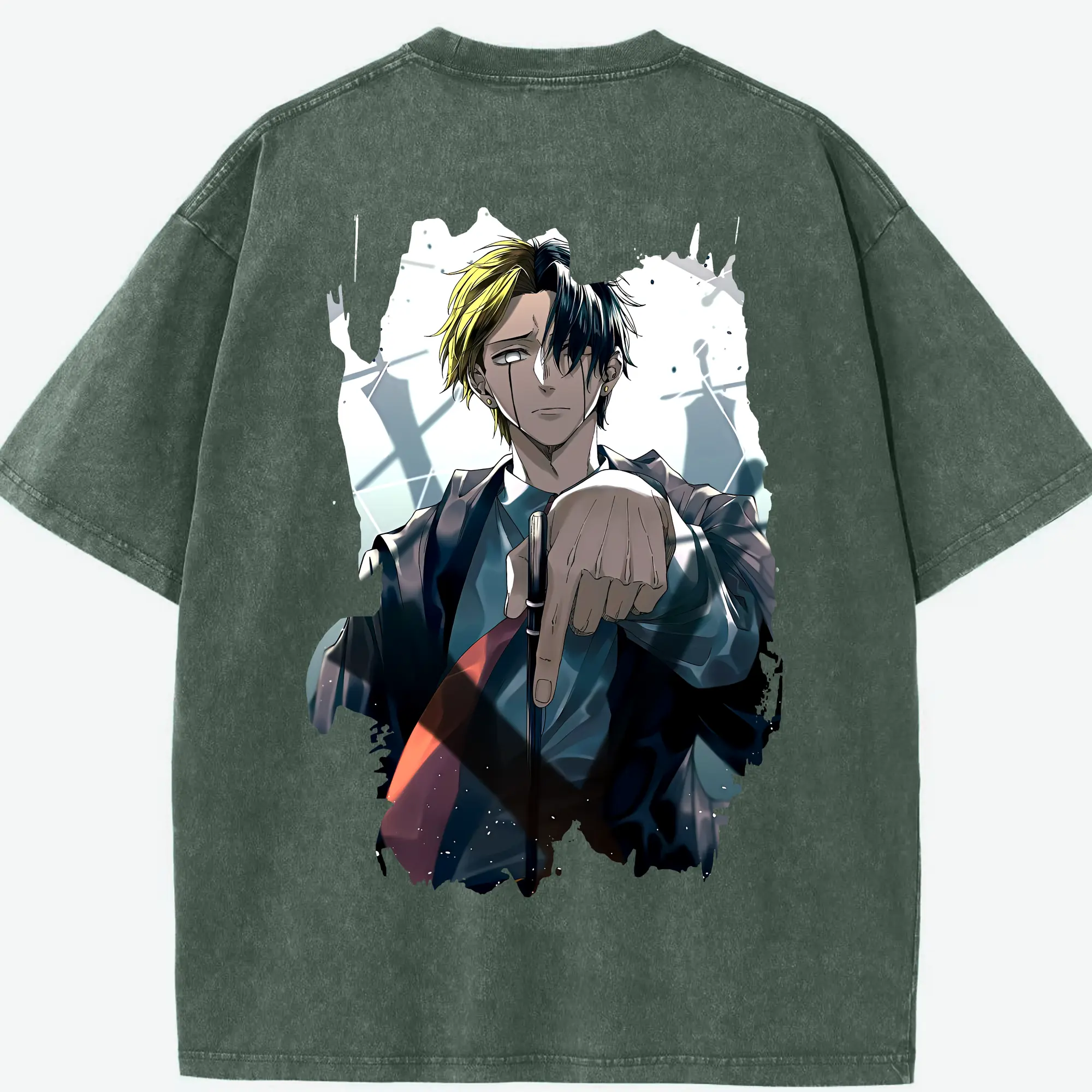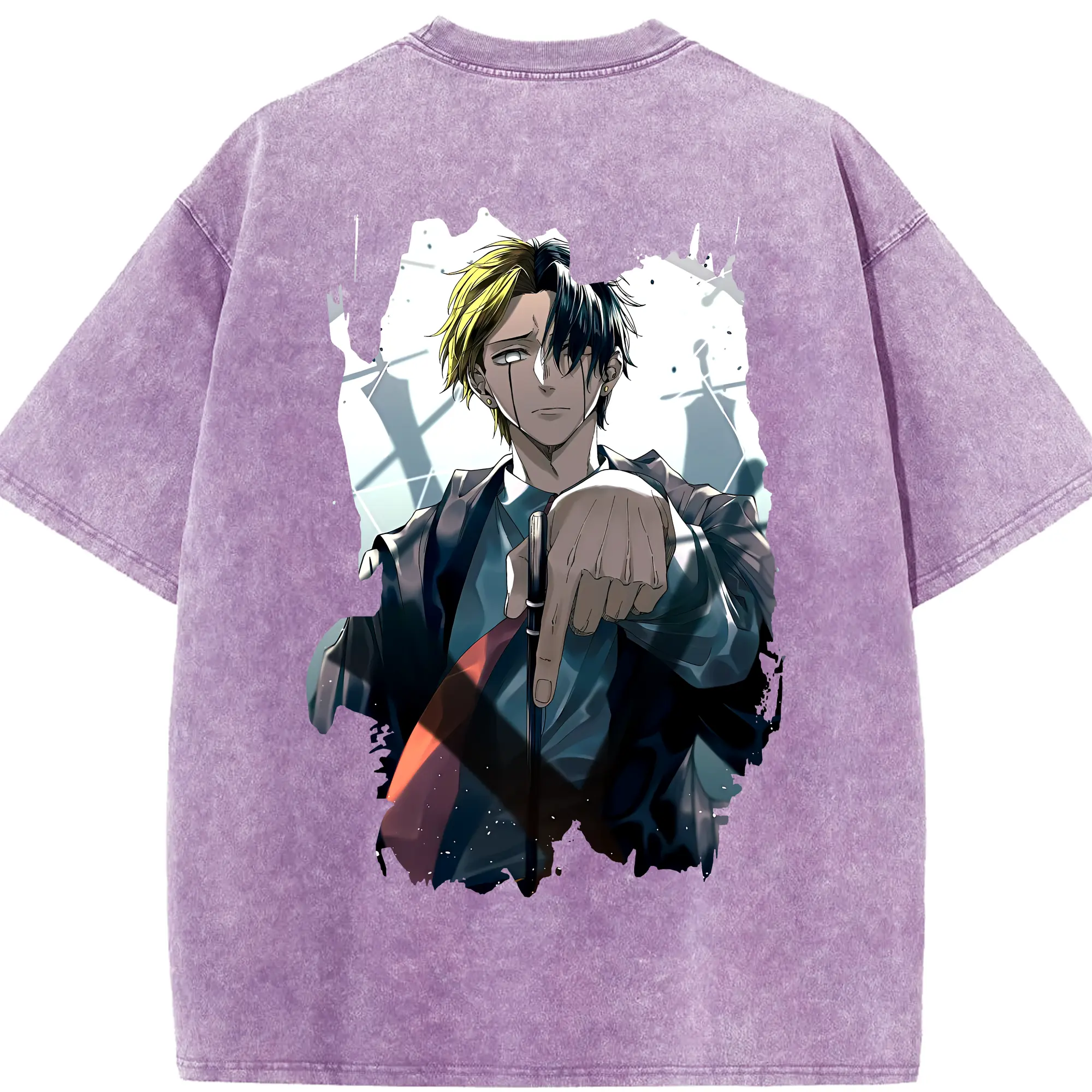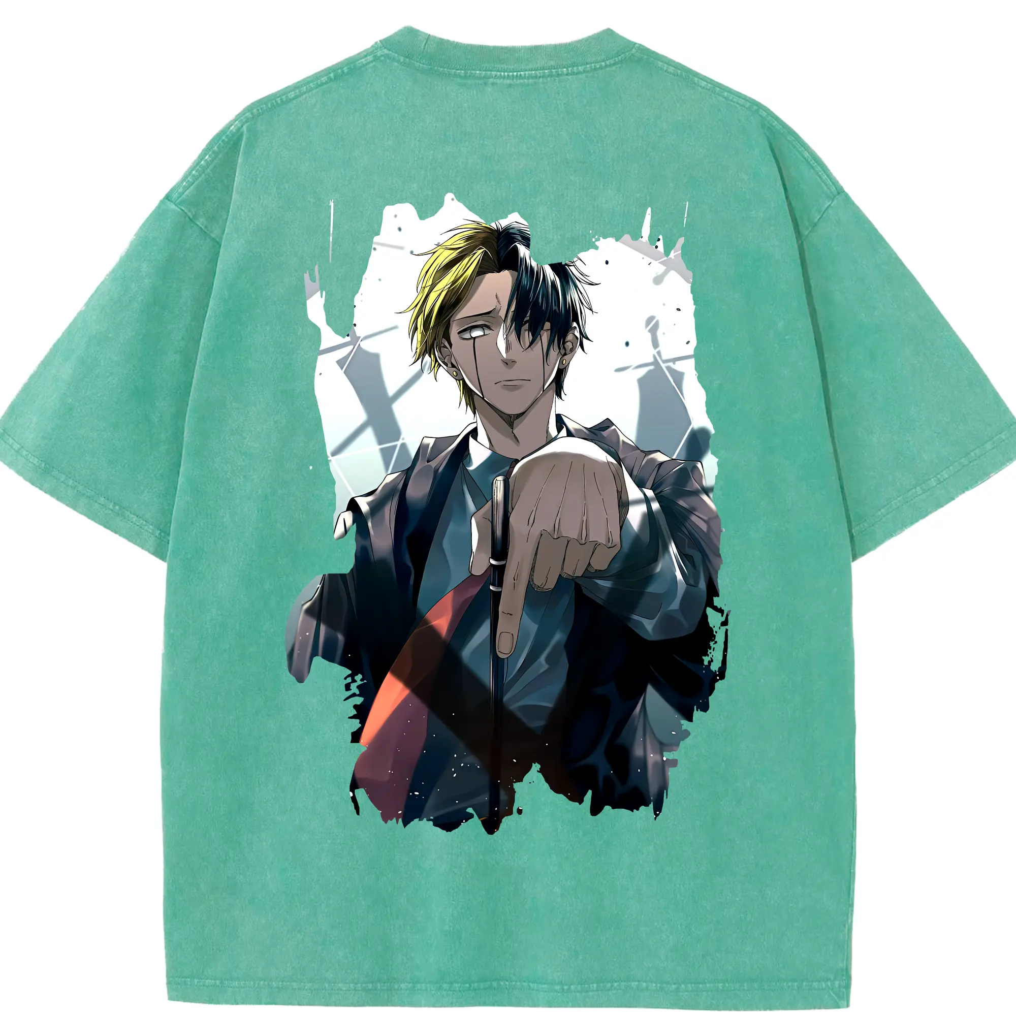 チェンソーマン グッズ,マキマ - 綿100% ヴィンテージ風 半袖Tシャツ ・ 背面プリント ・ 柔らか肌触り ・ 通気性 快適 ・ スポーツ カジュアル 外出用