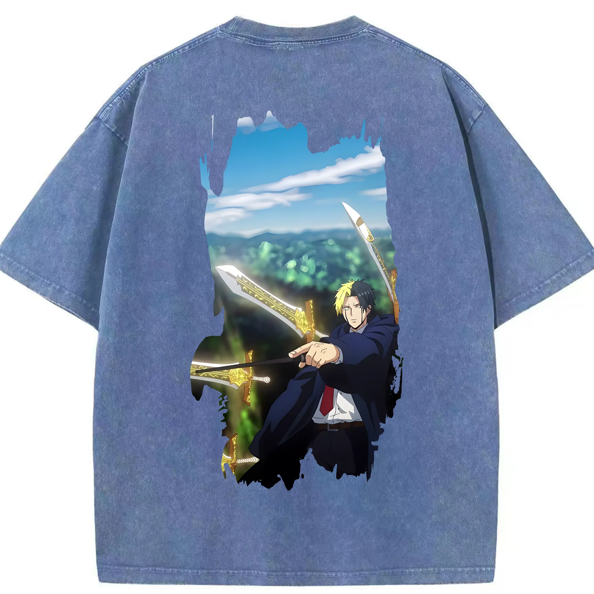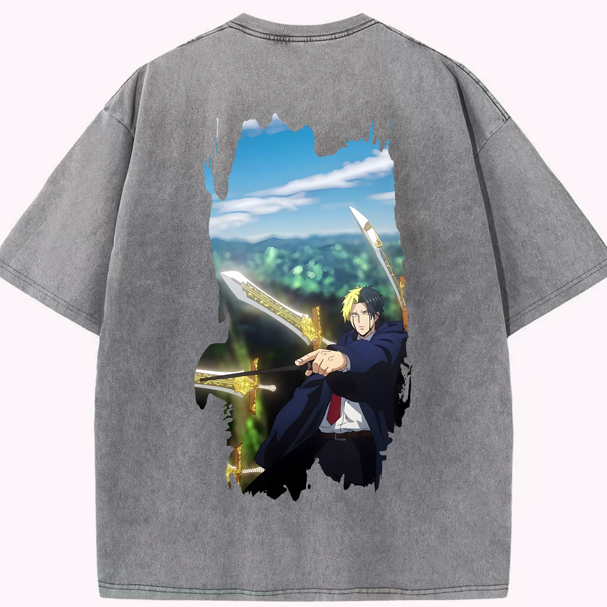 銀魂 グッズ 志村 新八 - 綿100% ヴィンテージ風 半袖Tシャツ ・ 背面プリント ・ 柔らか肌触り ・ 通気性 快適 ・ スポーツ カジュアル 外出用