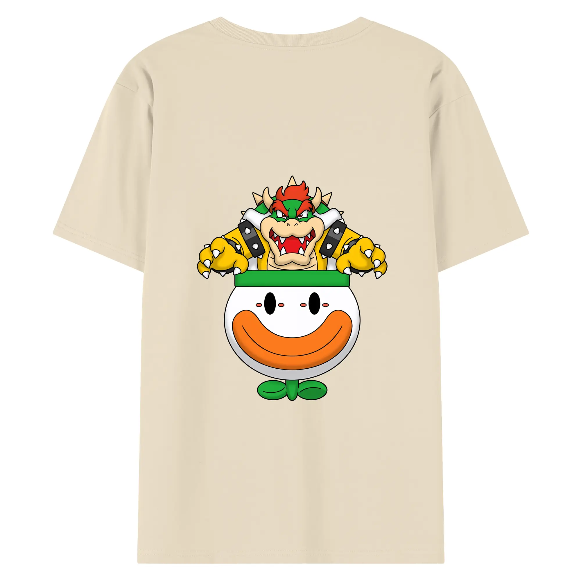 マリオ グッズ クッパ - 綿100% ヴィンテージ風 半袖Tシャツ ・ 背面プリント ・ 柔らか肌触り ・ 通気性 快適 ・ スポーツ カジュアル 外出用