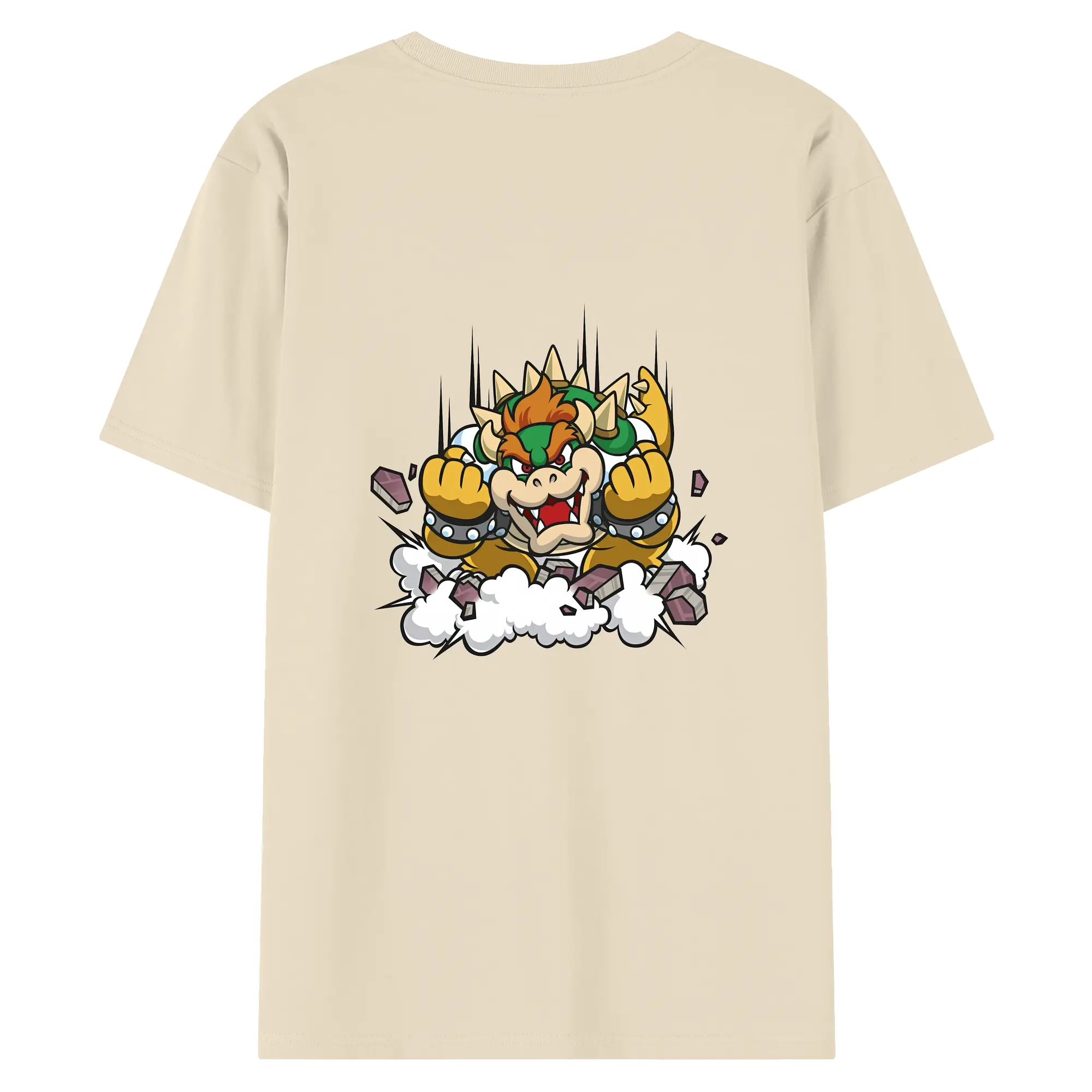 マリオ グッズ クッパ - 綿100% ヴィンテージ風 半袖Tシャツ ・ 背面プリント ・ 柔らか肌触り ・ 通気性 快適 ・ スポーツ カジュアル 外出用