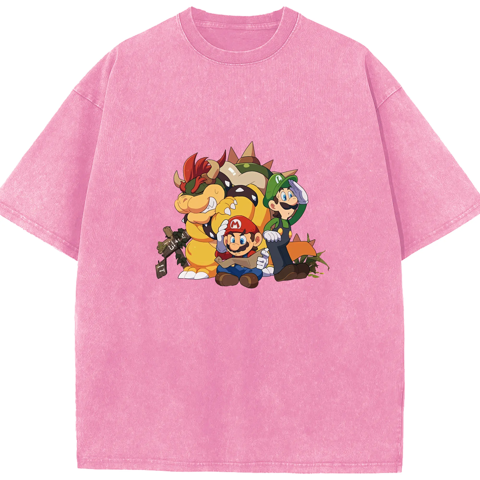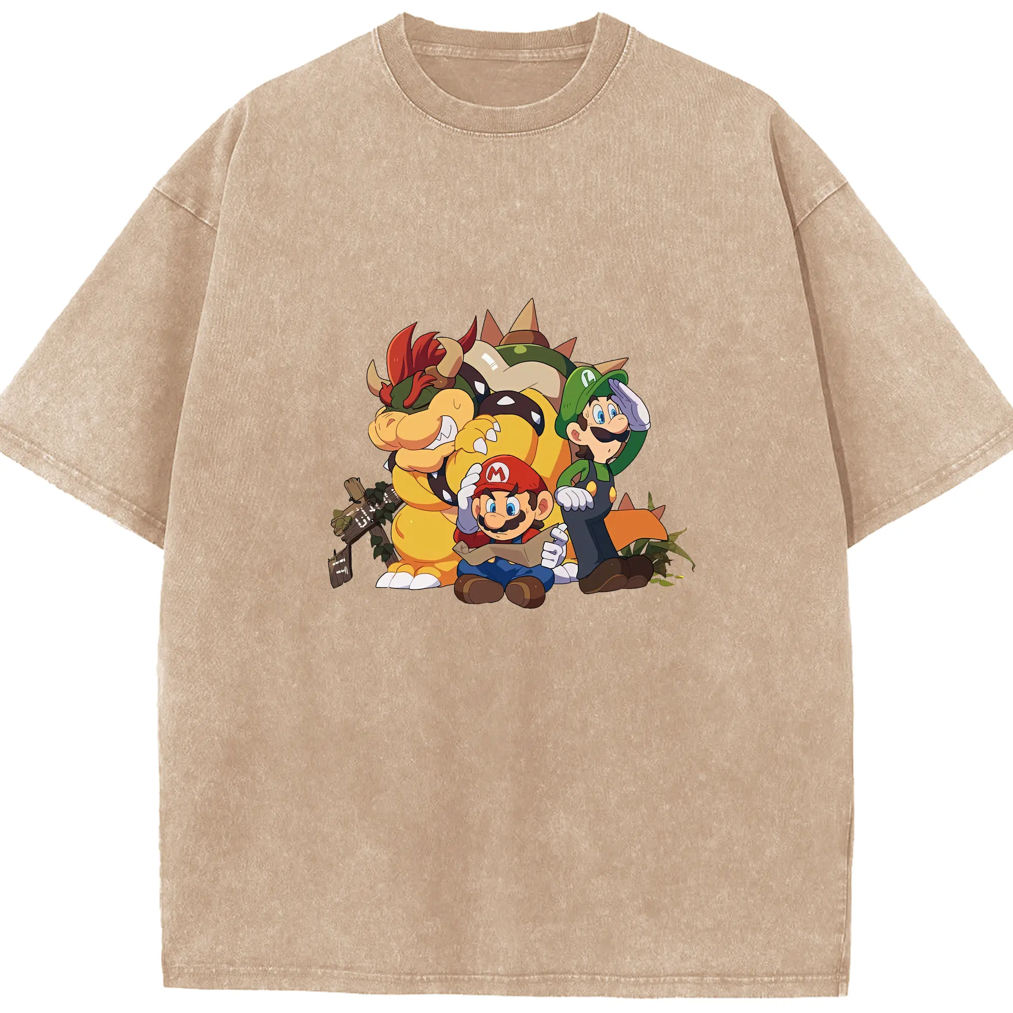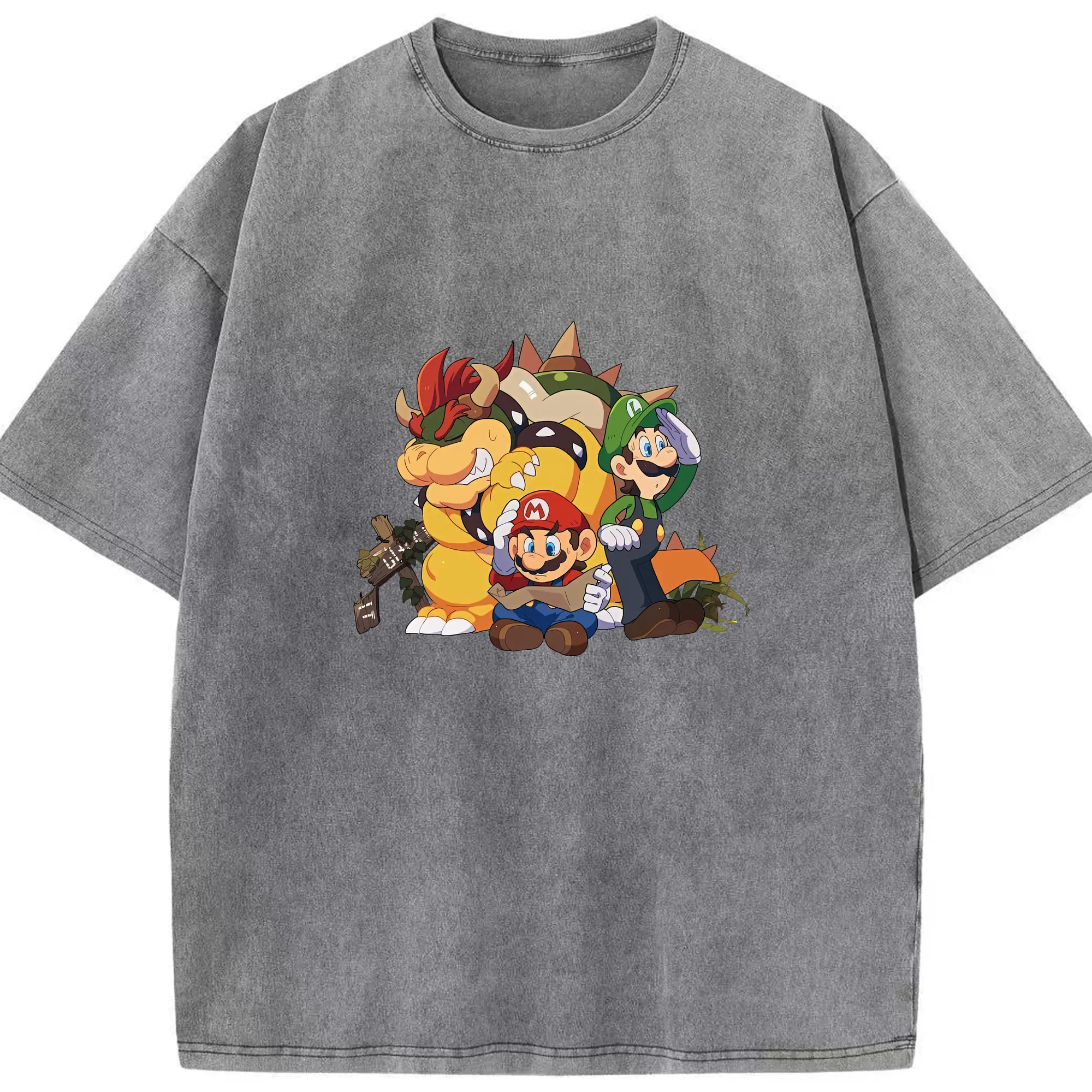 マリオ グッズ クッパ - 綿100% ヴィンテージ風 半袖Tシャツ ・ 背面プリント ・ 柔らか肌触り ・ 通気性 快適 ・ スポーツ カジュアル 外出用