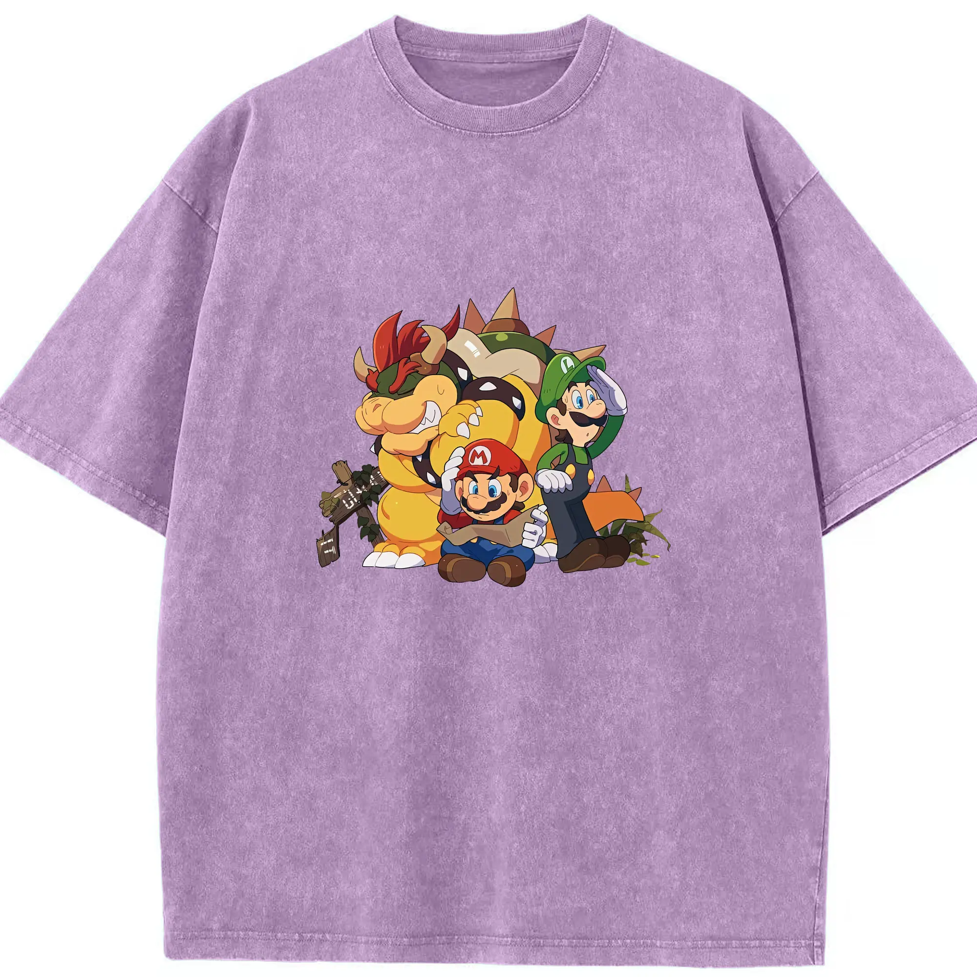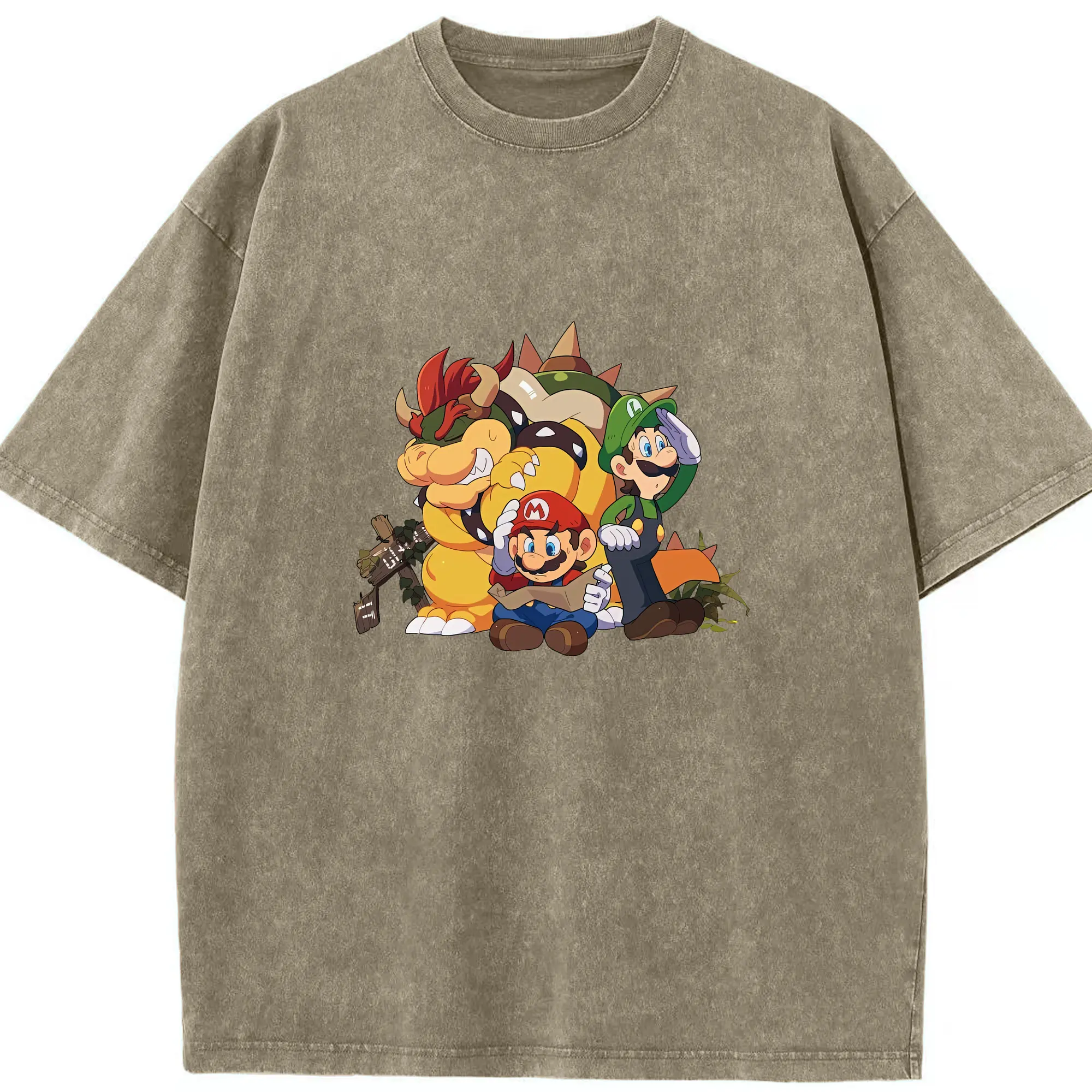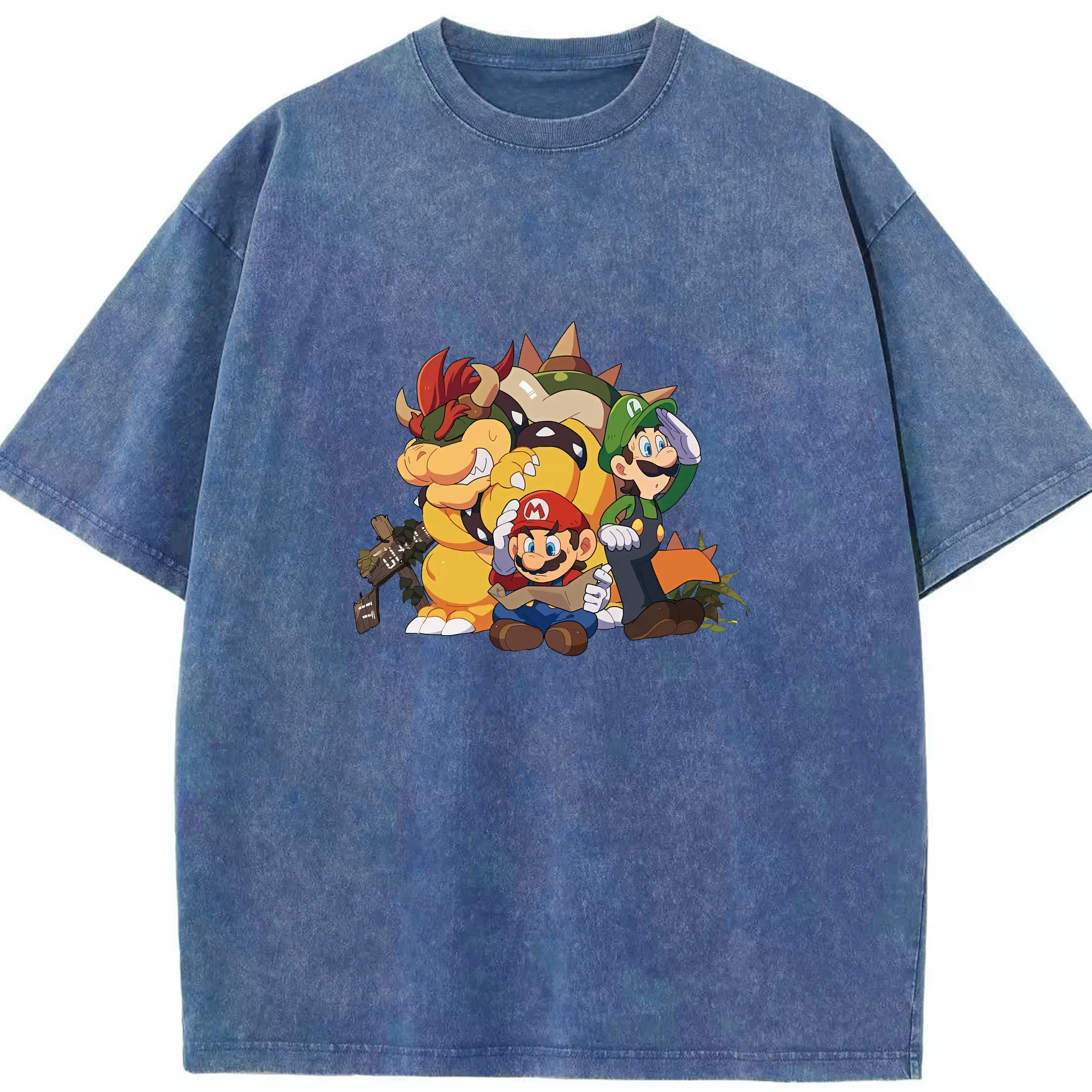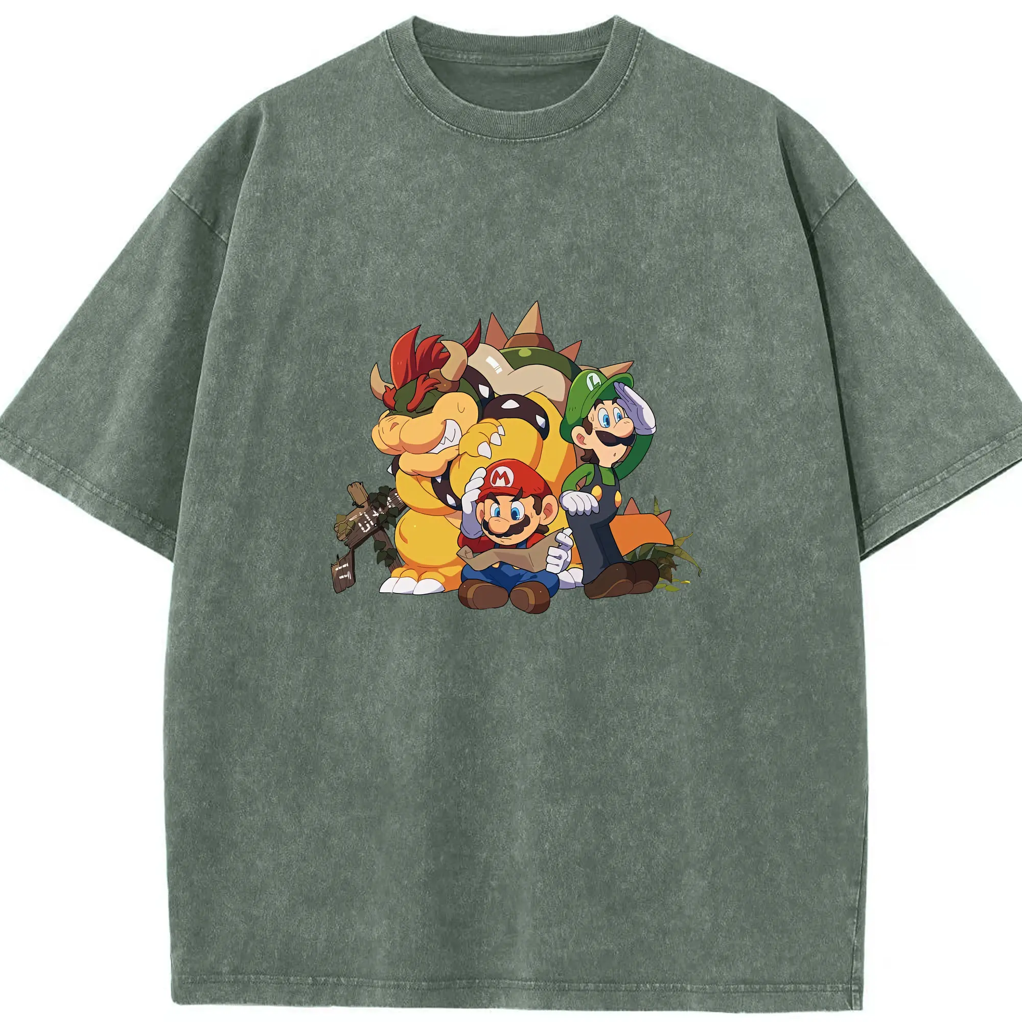 マリオ グッズ クッパ - 綿100% ヴィンテージ風 半袖Tシャツ ・ 背面プリント ・ 柔らか肌触り ・ 通気性 快適 ・ スポーツ カジュアル 外出用