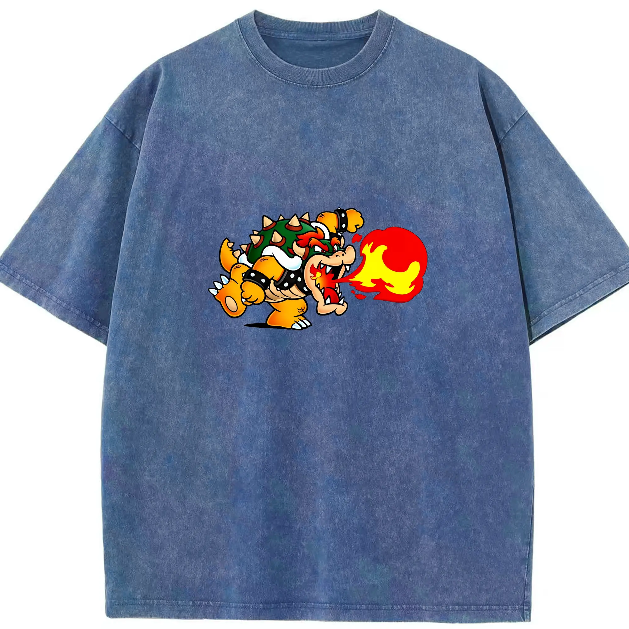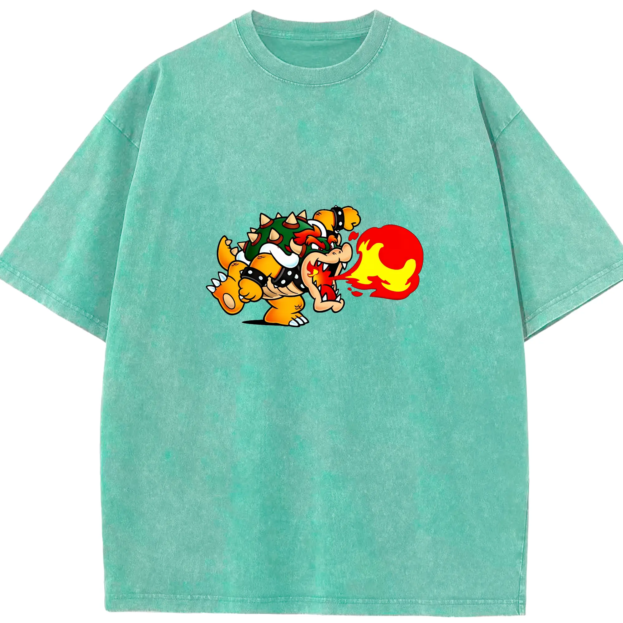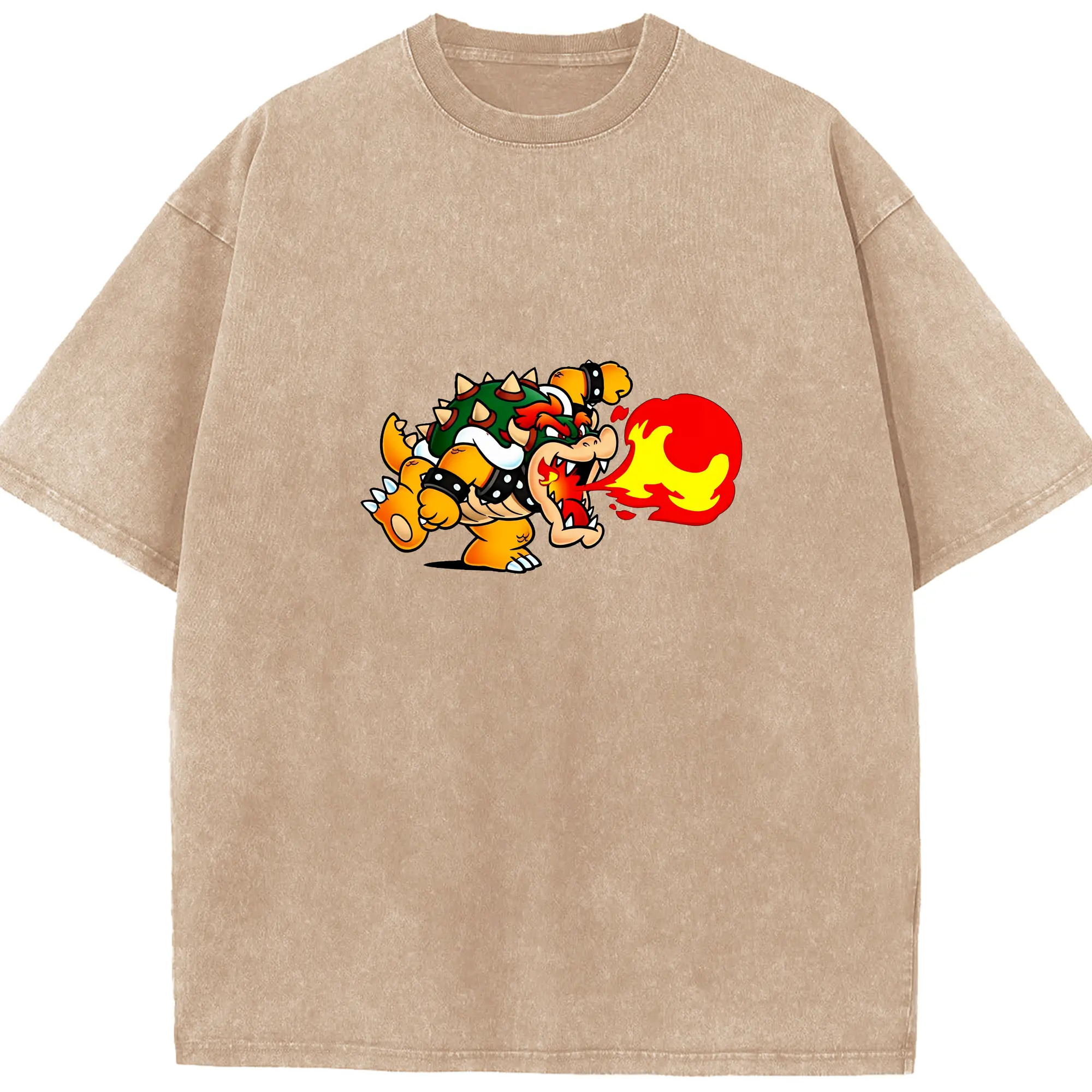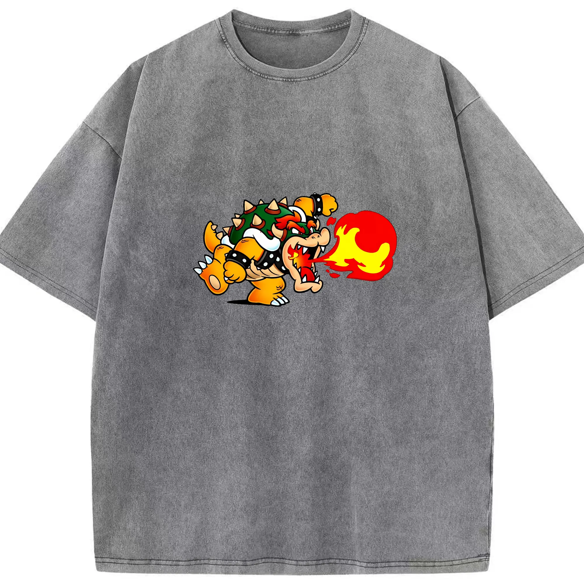 マリオ グッズ クッパ - 綿100% ヴィンテージ風 半袖Tシャツ ・ 背面プリント ・ 柔らか肌触り ・ 通気性 快適 ・ スポーツ カジュアル 外出用