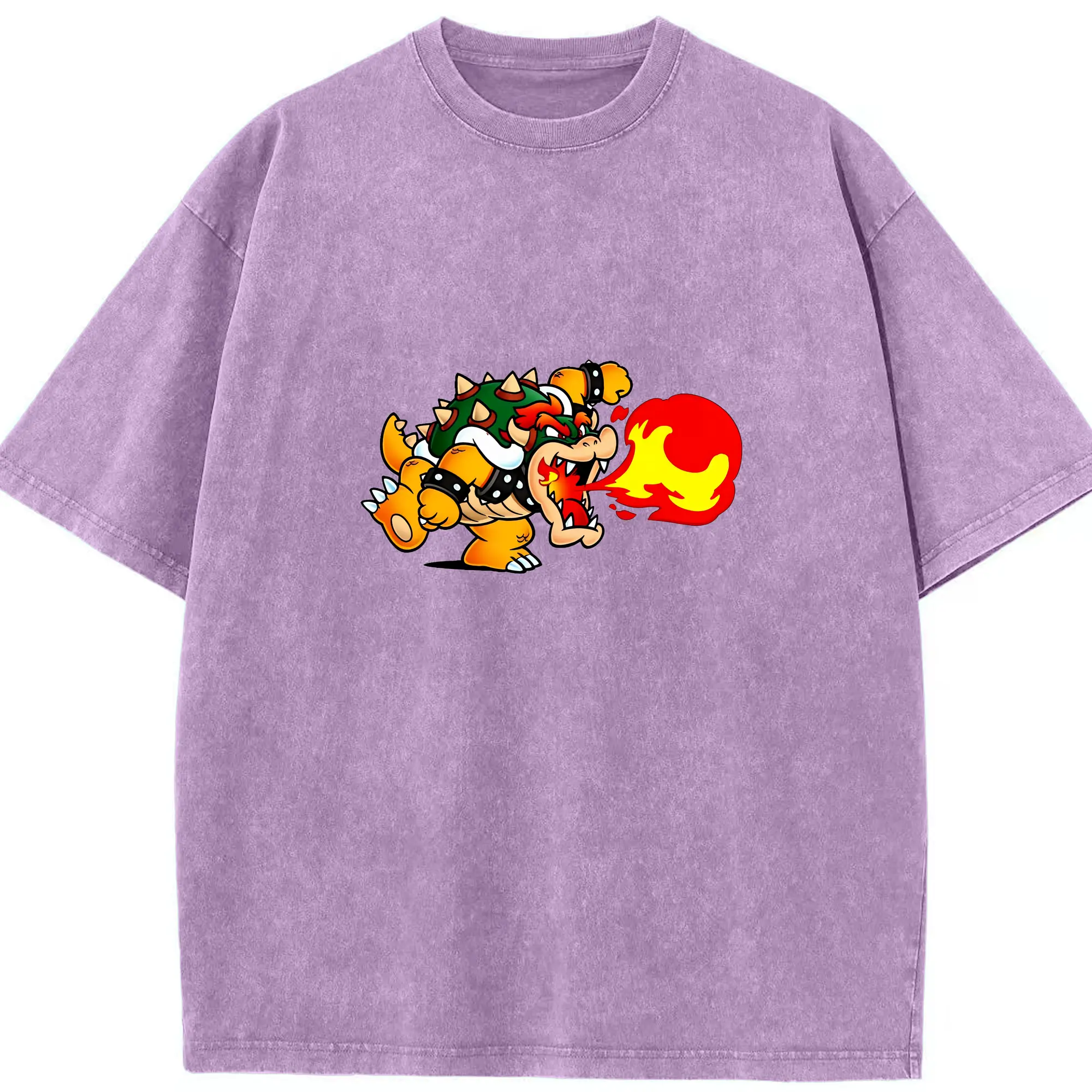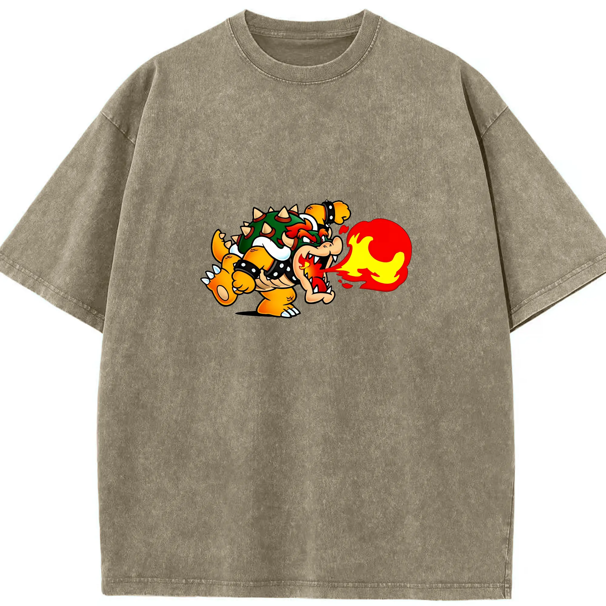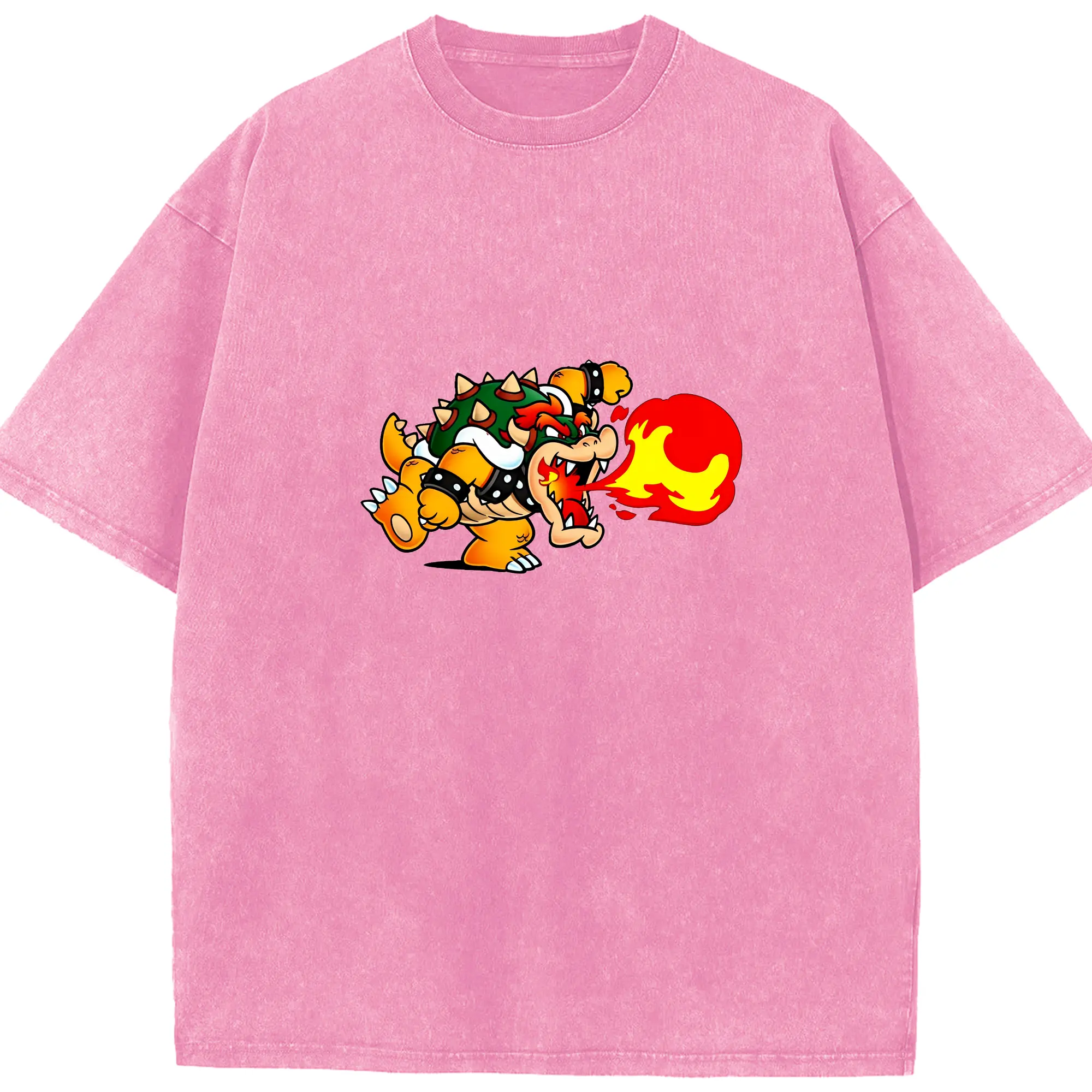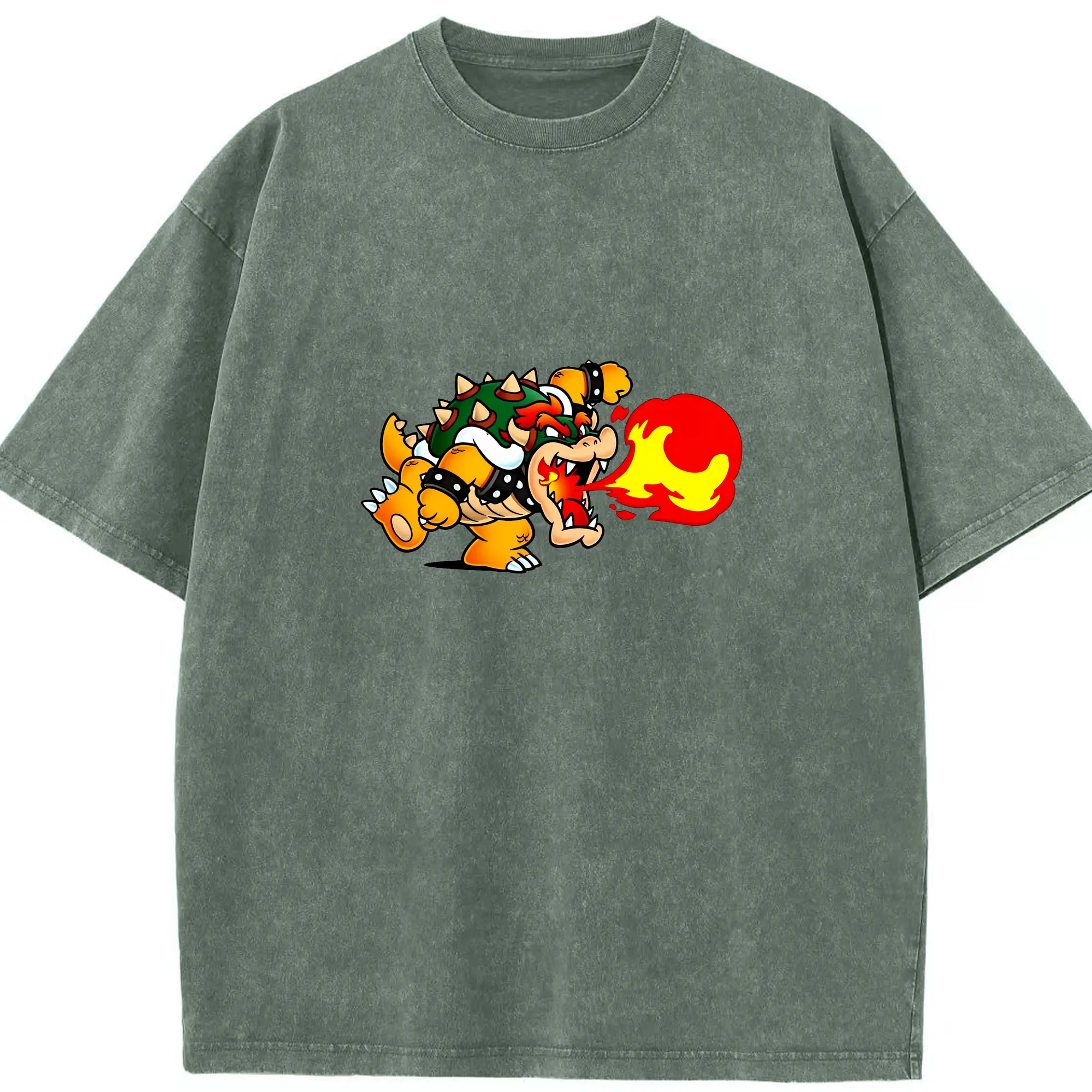マリオ グッズ クッパ - 綿100% ヴィンテージ風 半袖Tシャツ ・ 背面プリント ・ 柔らか肌触り ・ 通気性 快適 ・ スポーツ カジュアル 外出用