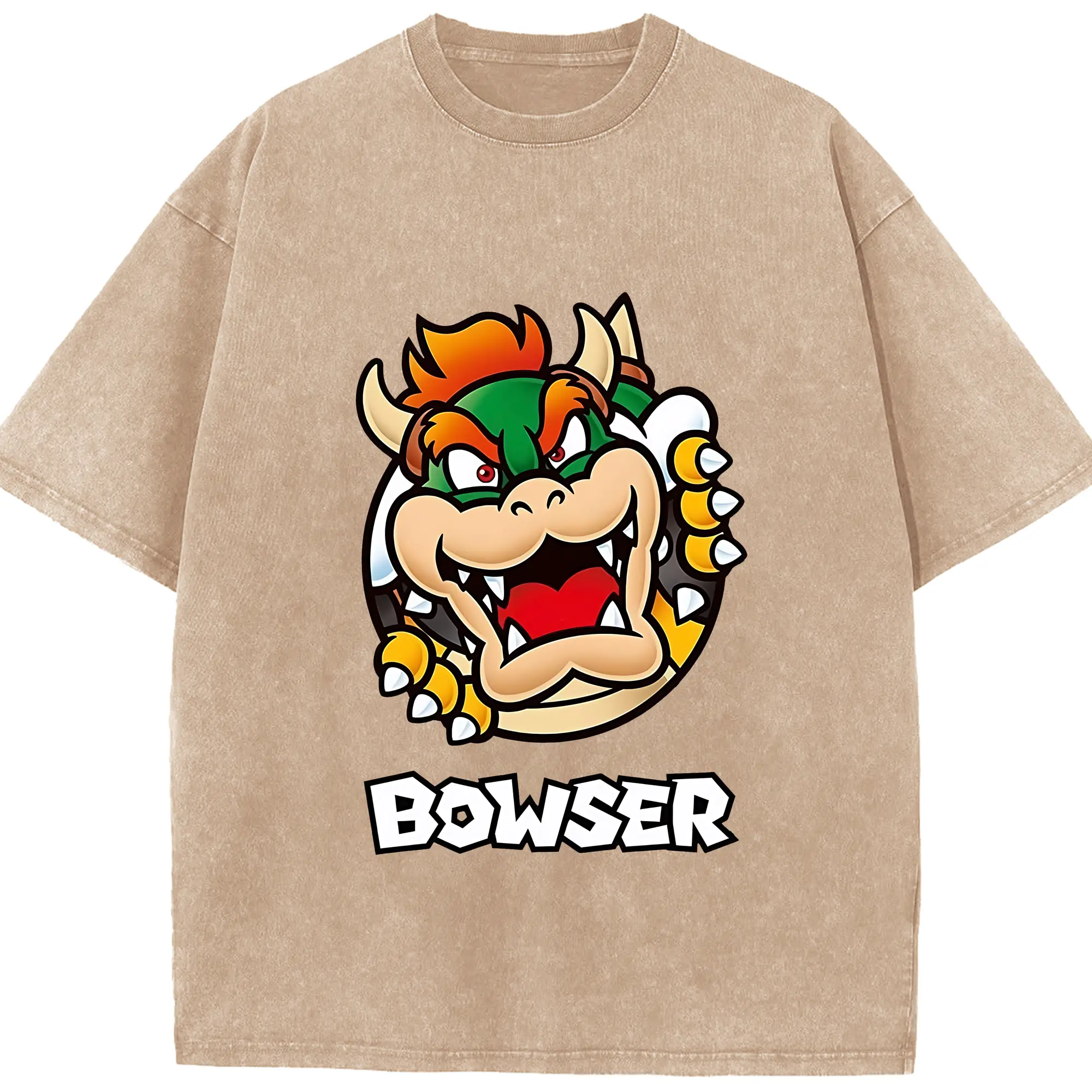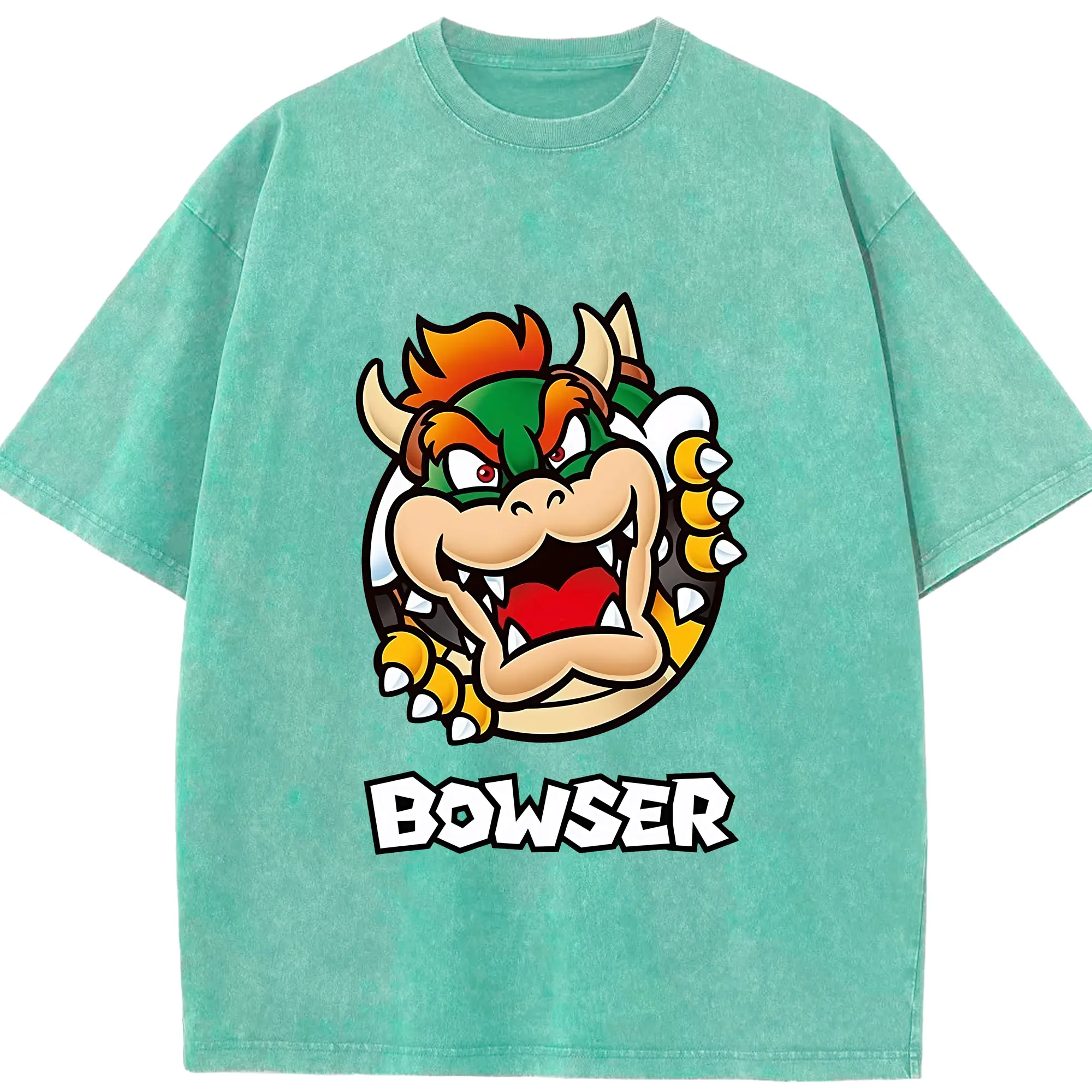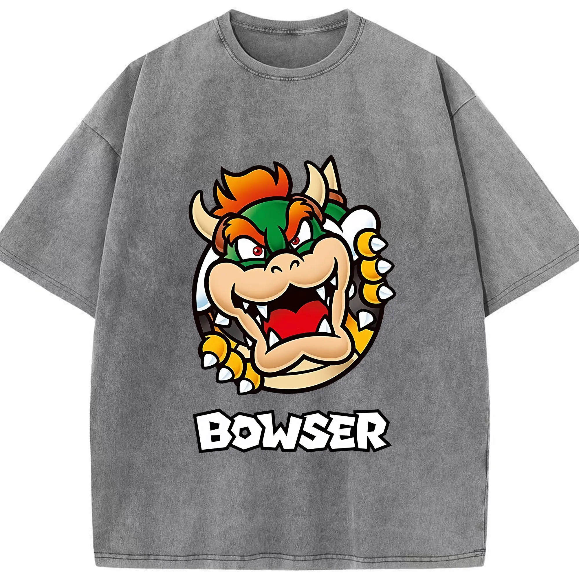 マリオ グッズ クッパ - 綿100% ヴィンテージ風 半袖Tシャツ ・ 背面プリント ・ 柔らか肌触り ・ 通気性 快適 ・ スポーツ カジュアル 外出用