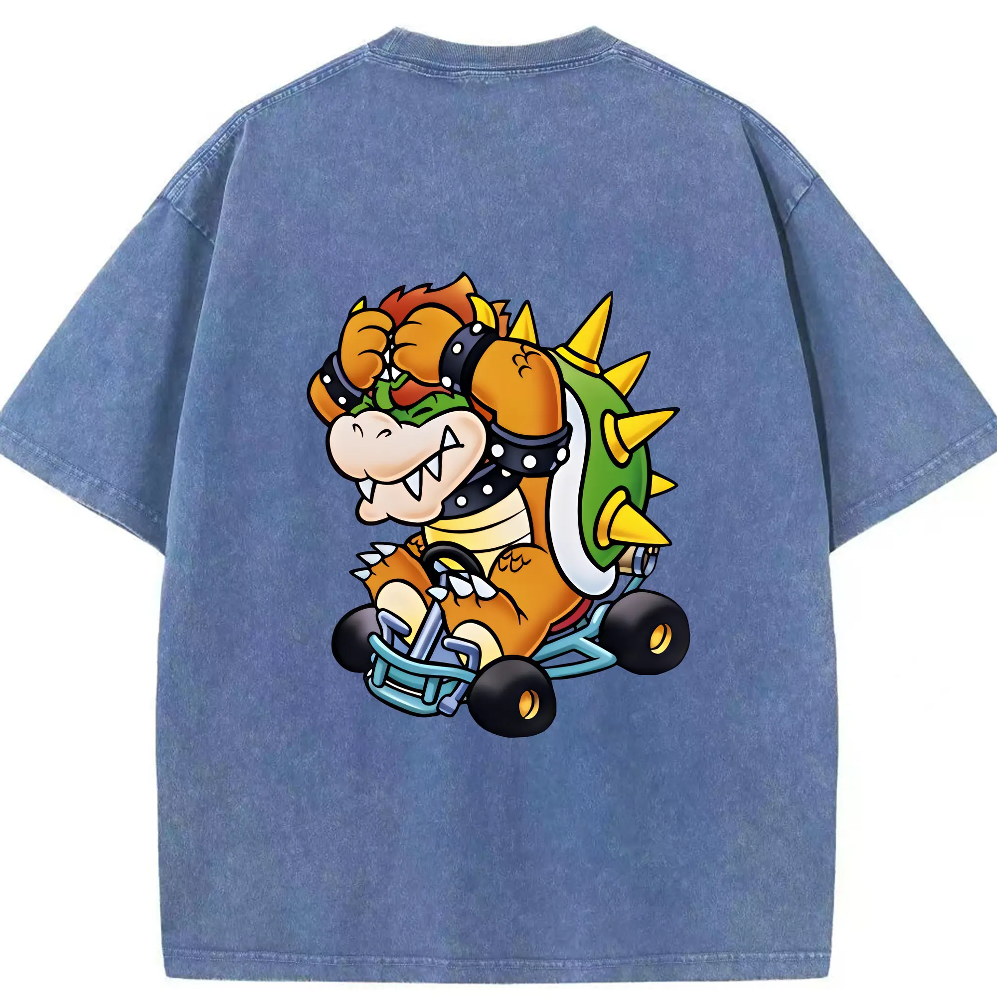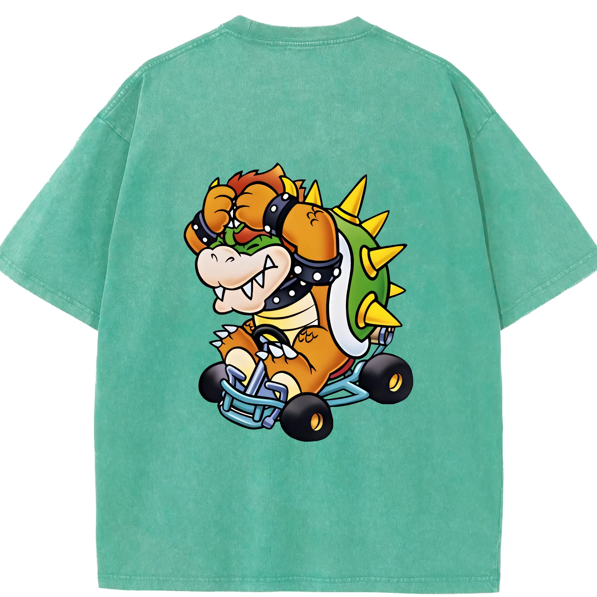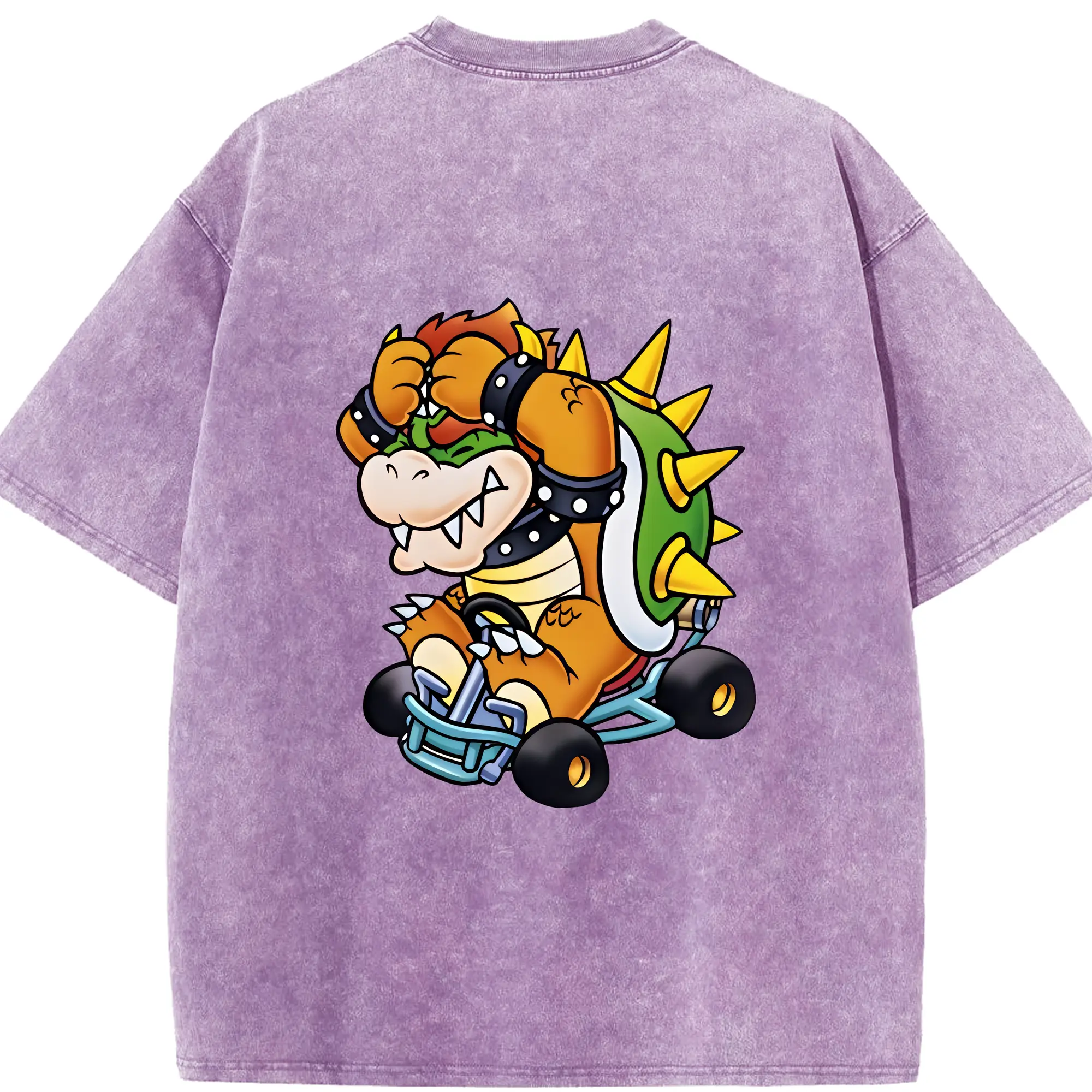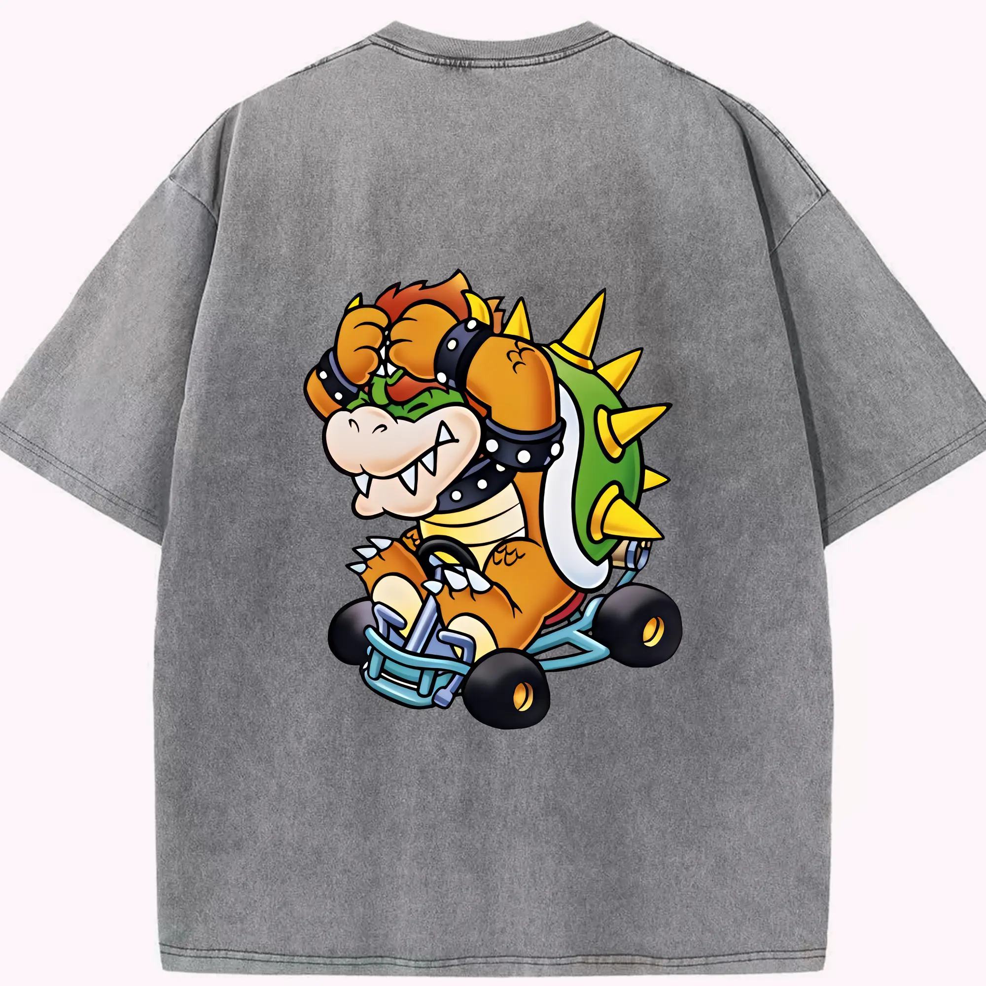 マリオ グッズ クッパ - 綿100% ヴィンテージ風 半袖Tシャツ ・ フロントプリント ・ 柔らか肌触り ・ 通気性 快適 ・ スポーツ カジュアル 外出用