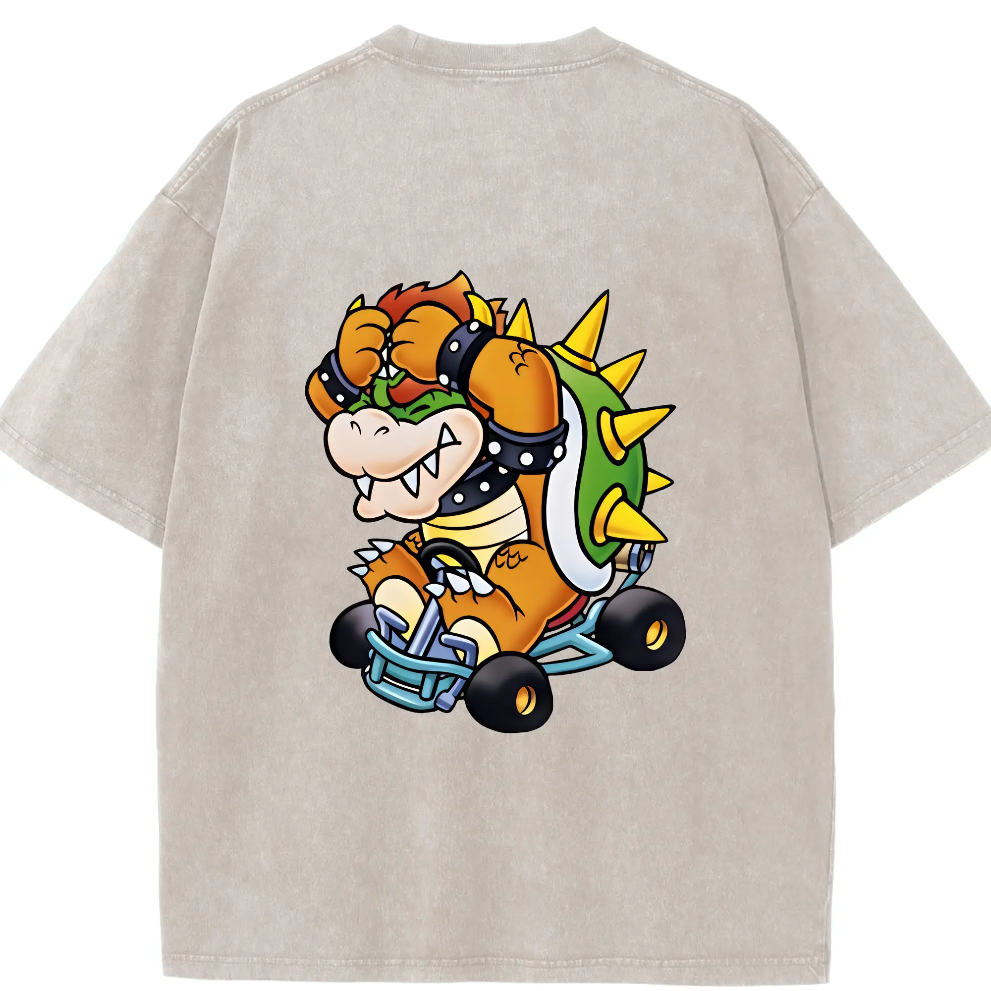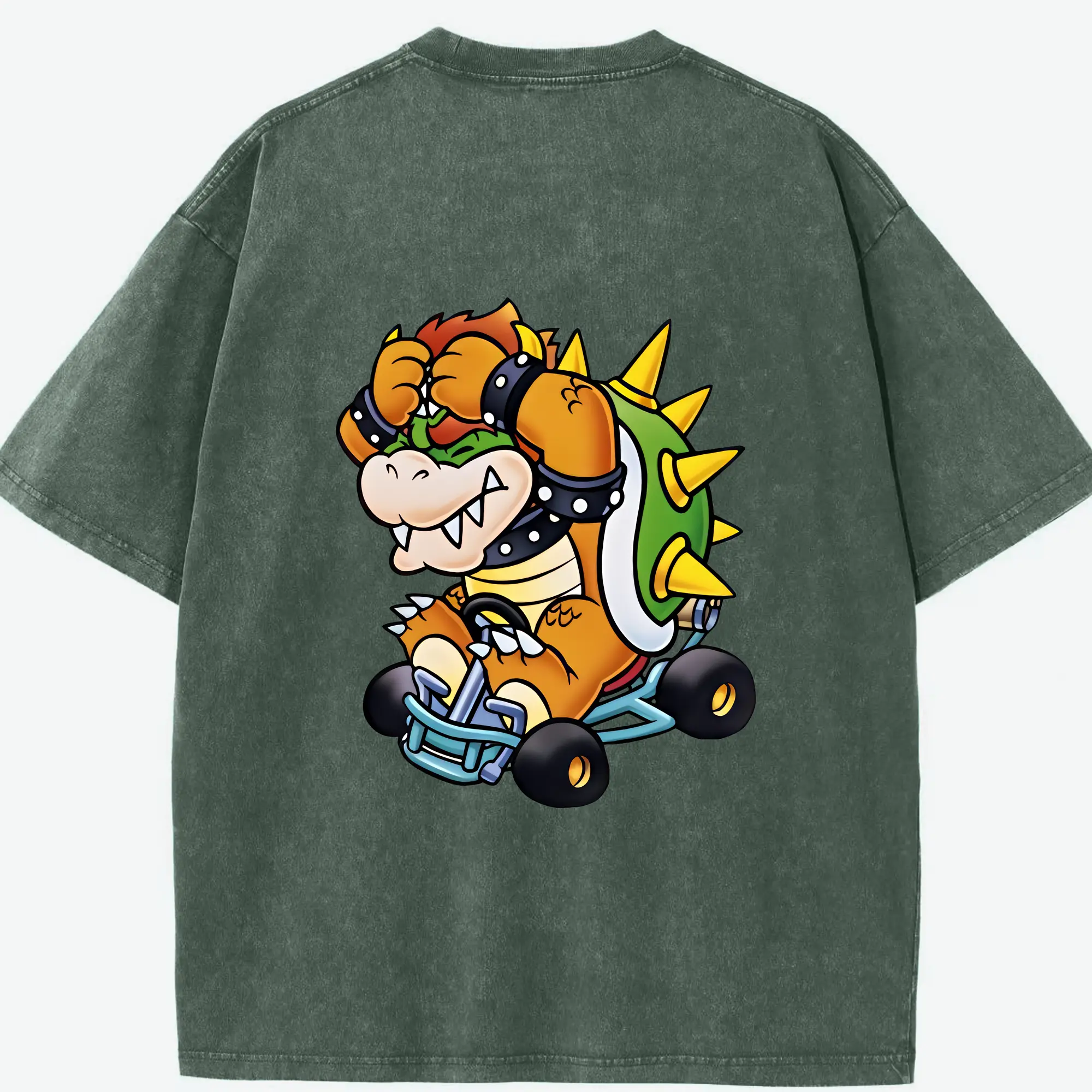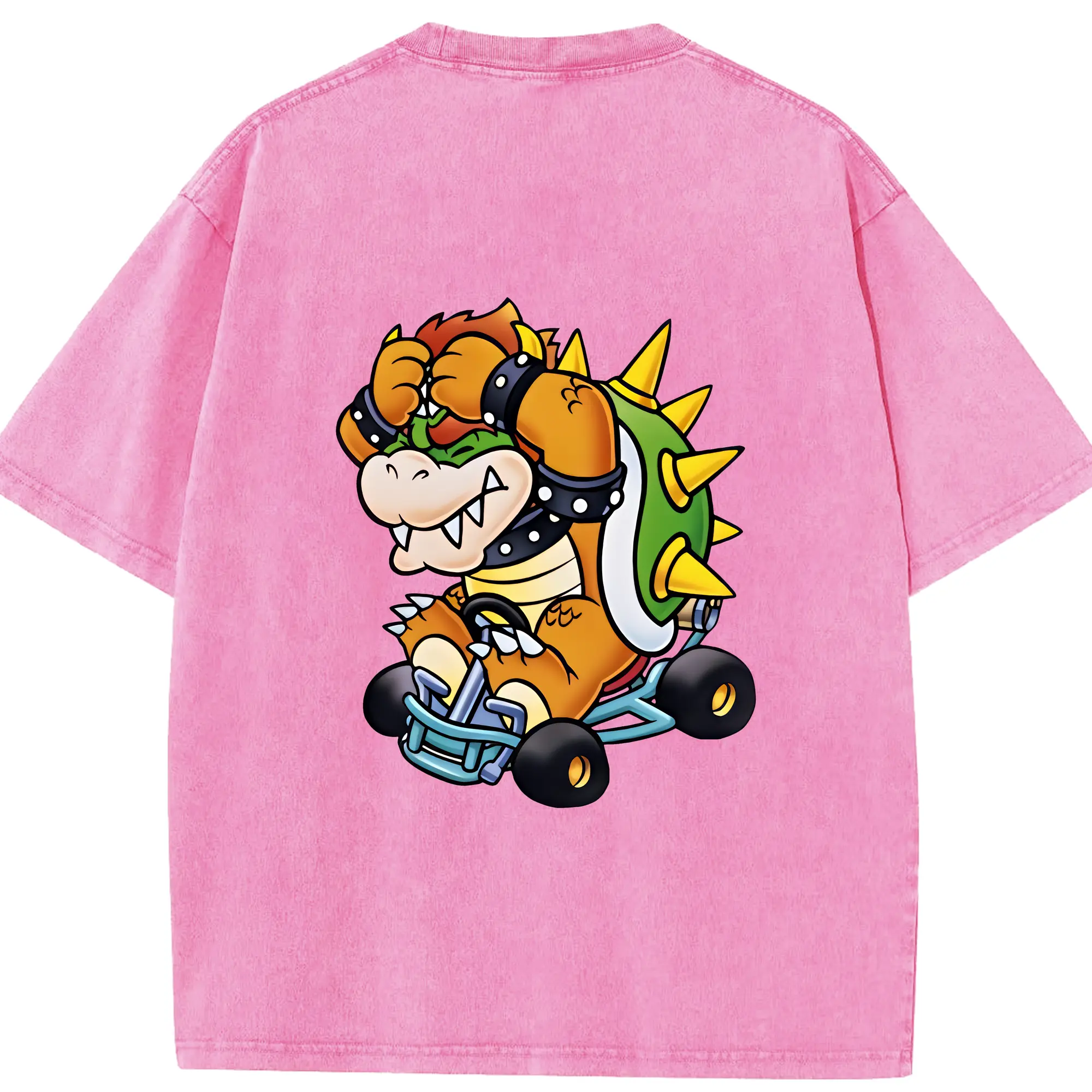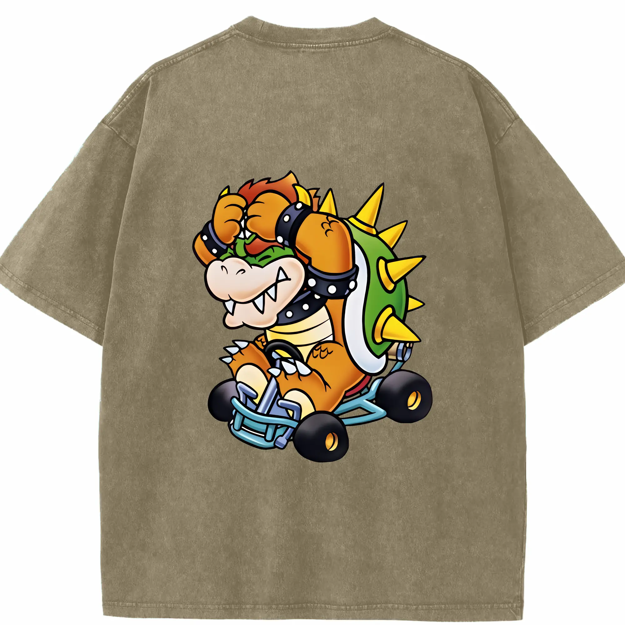 マリオ グッズ クッパ - 綿100% ヴィンテージ風 半袖Tシャツ ・ フロントプリント ・ 柔らか肌触り ・ 通気性 快適 ・ スポーツ カジュアル 外出用